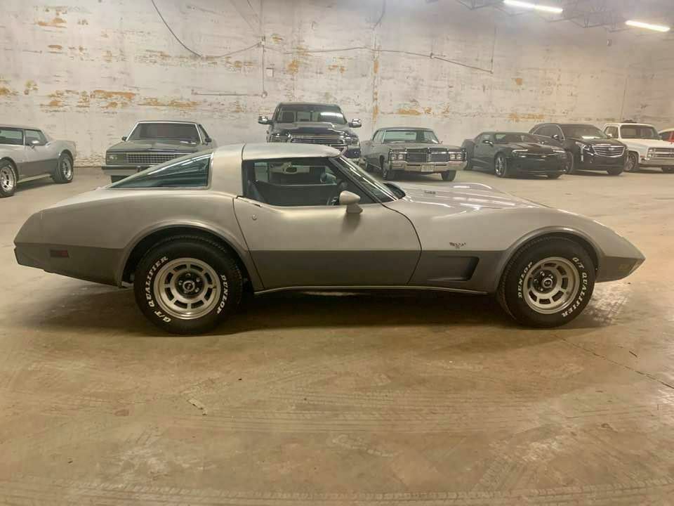 1978 Chevrolet Corvette Silver Anniversary Edition L82 VIN: 1Z8748S435243. 350 V8 engine (believed to be original but block has been decked, so cannot verify) automatic transmission. Power steering / power, 4 wheel disc brakes. Air-conditioning, power windows, power door locks, tilt-telescopic steering wheel, rear defogger, removable t-tops. Special, code 13U/07M, Silver Anniversary Edition, 2-tone silver / gray paint (needs a paint job). Code 192, black leather interior is very presentable, but does need work. Original aluminum wheels. 5 digit odometer reads 29,432 miles (actual mileage cannot be verified). Solid car from California. Runs and drives fine but does need some repairs (headlights, turn signals, A/C). This should be considered a "running / driving project" and is priced accordingly. The 5th digit of VIN (4) verifies this as an original L82 Corvette. The paint code (13U/07M) on the trim plate verifies this as a unique Silver Anniversary edition. Clean / clear California title in hand.Before clicking BUY IT NOW, please call us to discuss all detailsPhone 903-416-9191Main Street Classic CarsDenison, TexasPhone 903-416-9191Financing is available with good credit! You may apply at www.lightstream.comWe accept trades! Please text or email your trade information (We will need PHOTOS, DETAILS and the PRICE you're looking to get).We can arrange shipping! Contact us for a quote.Texas buyers are subject to sales tax, $50 document fee and registration fees. Non-Texas buyers are subject to 0.002% inventory tax and a $50 document fee.