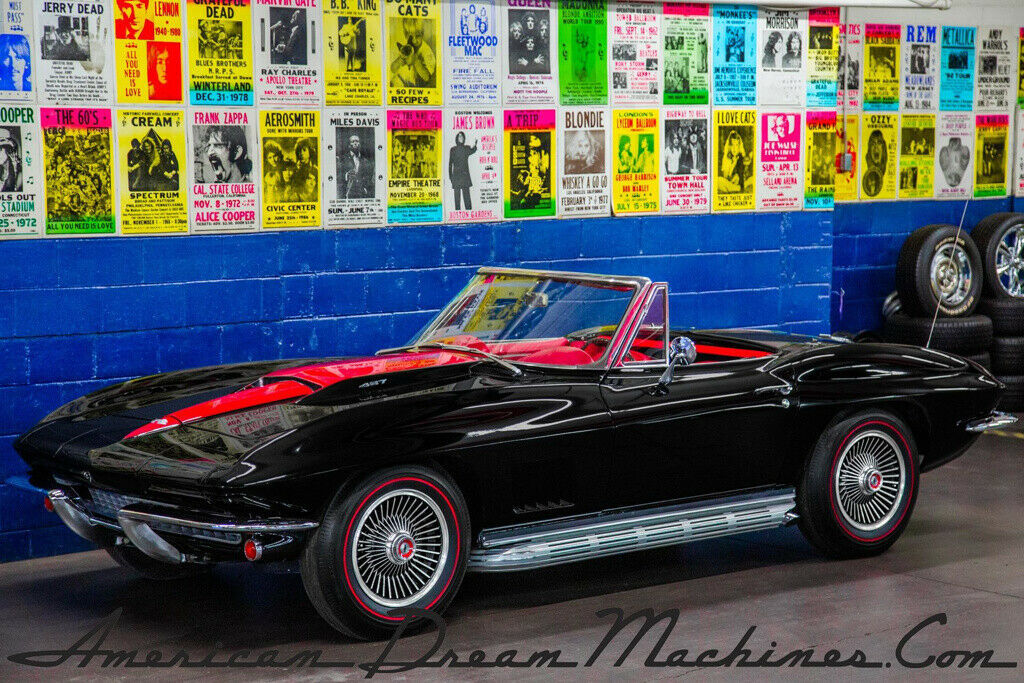 Black 1967 big block Corvette convertible. Fresh out of the body shop with a Jet Black mirror finish paint job, topped off with a red stinger hood and new black top. Gorgeous stingray with great body lines and panel fit nicely optioned with side exhaust and bolt on rims. Correct (code 408) red leather interior with very nice dash and instrumentation with clear crisp gauges with higher horsepower 6500 redline tachometer. Under the hood is performance built 454 big block engine that looks like a factory original 427 topped off with the correct ignition shielding and 427/390hp badging. Backed up by an easy shifting three speed automatic transmission and heavy duty rear end and suspension and ready to put the rubber to the road. Ready for the road with side exhaust to enhance that big block rumble and turbine style bolt on Corvette wheels and with redline tires that match perfectly. EXTERIOR: bulleted textINTERIOR: bulleted textMECHANICS: bulleted textUNDERCARRIAGE: bulleted textAmerican Dream MachinesAt American Dream Machines, we typically have over 100 quality classic cars and trucks in stock and for sale. We have everything from Corvettes to Cadillacs, Camaros, Mustangs, Mopars, GTOs, Chevelles, Bel Airs, Blazers and exotic sports cars. Our classics and muscle cars range from the 1950s to the 1970s. Our inventory is diverse and continuously changing and always growing! Our #1 Goal is to make you, our customer happy with the American classic and muscle cars we offer. We highly recommend that ALL CUSTOMERS call our knowledgeable, experienced staff and with Midwest values and have very detailed discussions regarding overall condition of any of our classics that you are considering getting in the drivers seat of. Our phone number is (515)-245-9100 and we are centrally located in the heartland of America, in Des Moines Iowa. American Dream Machines occupies the historic 41,000 square foot Packard Dealership. We are one of the largest full service classic car dealerships in the Midwest. We have over 10 active Mechanic hoists, a body shop and detail bays that are used by our technicians to inspect, repair, upgrade and detail our cars so that they are ready to be delivered to your driveway. Please give us a call and we will be happy to help get your dream car to almost any location worldwide! ALL OF OUR PICTURES AND VIDEOS ARE REAL, ALL THE WAY AROUND! We photograph our cars in our professional photo studio for the best possible image accuracy and representation of the cars. We do this because of our commitment to the authenticity and quality of the cars that we sell and the commitment to our customers. |