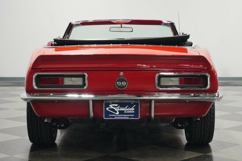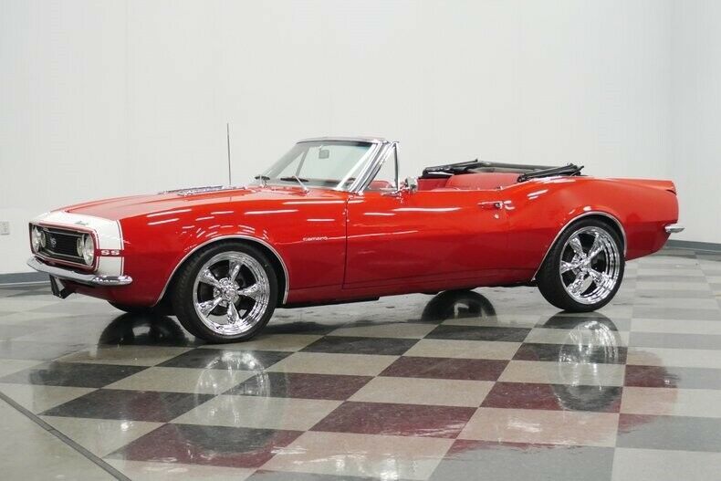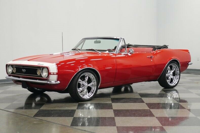 Check out the upgraded fuel-injected small block power, four-on-the-floor, and a hot full red package of this 1967 Chevrolet Camaro SS tribute convertible. And the more you look at this total package, the more you see it's a classic built for those who both love to drive and get noticed. A classic convertible in red is always desirable. And the modern sleek shine on this one sets off an attitude that tells the world this is an early Camaro that's a bit cleaner and meaner. The luster catches your eye nicely as the sunlight highlights the straightness of the body panels. The white SS bumblebee stripe was expertly applied at the front, and it draws added focus on the SS grille. This upgraded Super Sport aggression is further heightened by the velocity stack trim on the hood, SS badging, and full-width rear spoiler. Plus, the American wheels are staggered 18/20 inches front/rear for a great stance. Plus, they also have high-polish shine to go with the chrome bumpers and trim. The black vinyl roof looks tasteful against the red, but for true distinction you'll always want to take it down. After all, there's something both sophisticated and sporty about a red convertible with a red interior. The upholstery, carpeting, door panels, and dash pad all have the look of quality. And it's a true red package, all the way down to the steering wheel! And speaking of the wheel, it's a three-spoke sports unit that's part of a great driver's package. You also have front bucket seats, a desirable center console, and floor shifter. And while all of this looks vintage, that Sniper EFI controller is an unmistakably modern piece that tells you there's something nice under the hood. The engine bay has a stock appearance, but it's also so tidy that you know it's the product of a solid investment. So we love the look of the classic bold Chevy orange block, correct decals, and overall clean look. The valve covers not only have a nice shine, but their center bolt design also indicates a later small block. In fact, this 350 cubic-inch unit is believed to be a later crate V8 making 330 horsepower. And that was before the addition of the Holley Sniper electronic fuel injection system that allows you to dial in added power and consistency. So it should be no surprise that this Camaro is a strong-running machine, and the four-speed manual transmission puts you in the center of the action. Plus, power steering, power brakes, front discs, and modern/grippy ZR-rater tires make this extra-quick Camaro an all-around fun driver. This is the classic Camaro SS tribute convertible that has an extra sleek look and extra V8 power behind it. So don't let this great deal pass you by. Call today!!! |