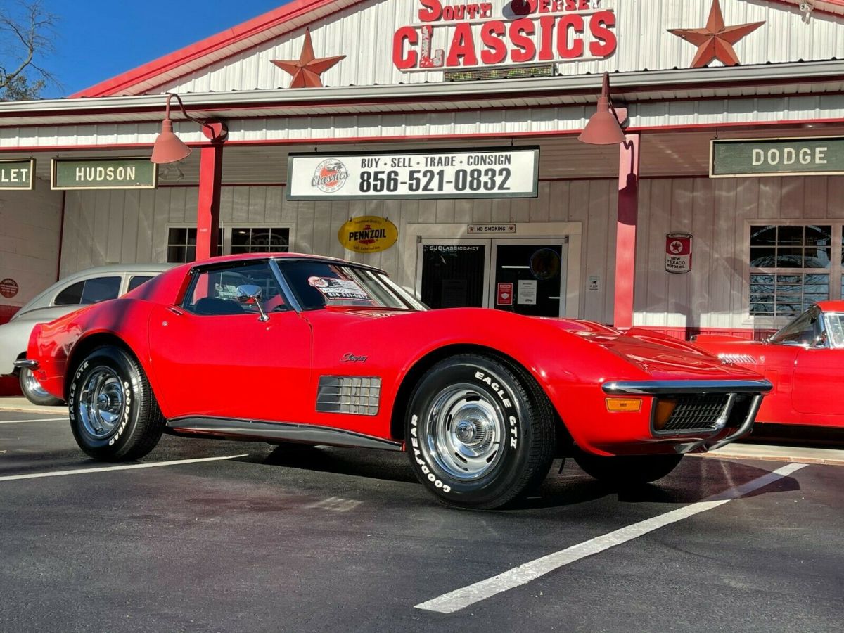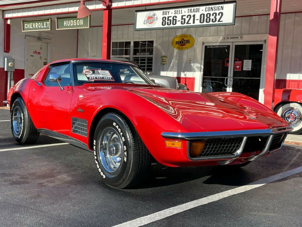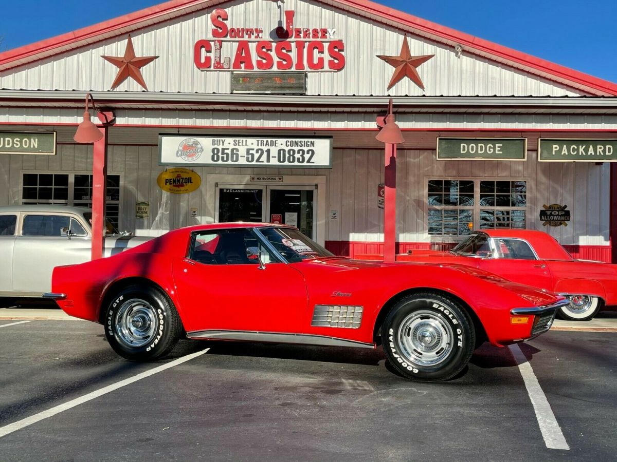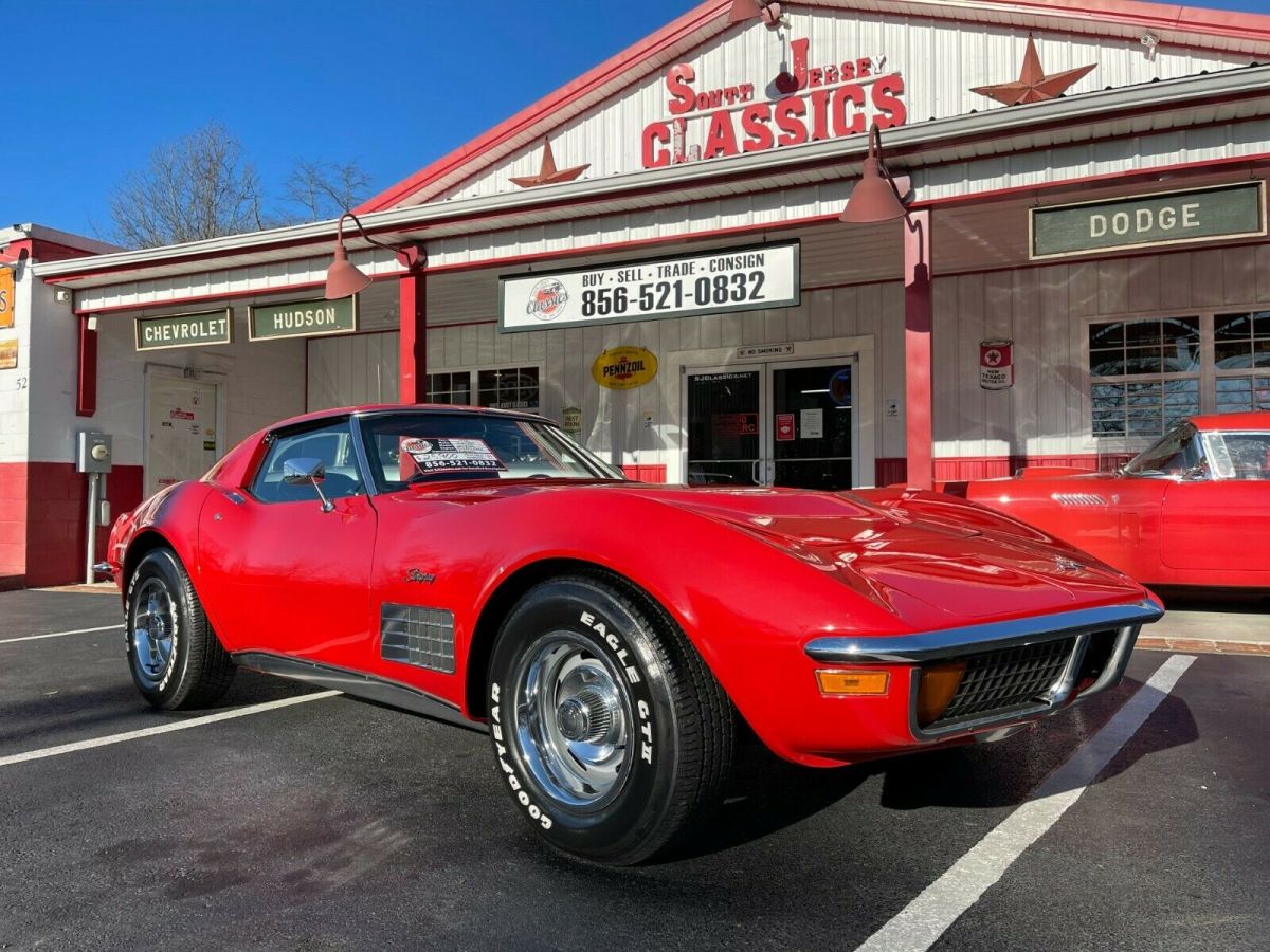 1972 Chevrolet Corvette 350 V8 #'s Matching K 225hp - Automatic T-Top Coupe Factory AC Power Steering & Brakes Big Block Hood Aluminum Radiator 1972 Chevrolet Corvette VIN: 1Z37K2S502769. Original, matching numbers, 350 V8 engine. 3-spd automatic transmission. Power steering, power disc brakes. Factory A/C. Factory Red exterior / Black interior. Factory T-tops. Bucket seats / Center Console and power windows. Runs and drives great. Exterior: • Great body with code: "973" Mille Miglia Red paint (Nice paint). Minor ImperfectionsSee Photo's • Solid frame, clean underside. • Original 15x8 Rally wheels with 225/60-15 and 255/60-15 tires. • Factory T-Tops. Interior: • Factory code, "412" Black interior - presents very well. Overall Very Clean - Power Windows Mechanical: • Original, 350ci engine (number matching) 225hp. • 3 speed automatic transmission. • Manifolds / Dual exhaust / Turbo muffler. • Power steering / Power brakes (4 wheel discs). • Factory A/C Needs Charge or Conversion Wiper Door Is Not Working - Wipers Are Working Miscellaneous: • The odometer reads 84,842 miles (actual mileage cannot be verified). • Runs and drives great. Clean NJ Title *Financing Available * South Jersey Classics 52 Harding Hwy NewfieldNJ 08344 Open Mon-Sat 9-5pm Office 856-521-0832 Cell 856-625-2226 www.SJClassics.net https://youtu.be/rvQ39TTqloI |
