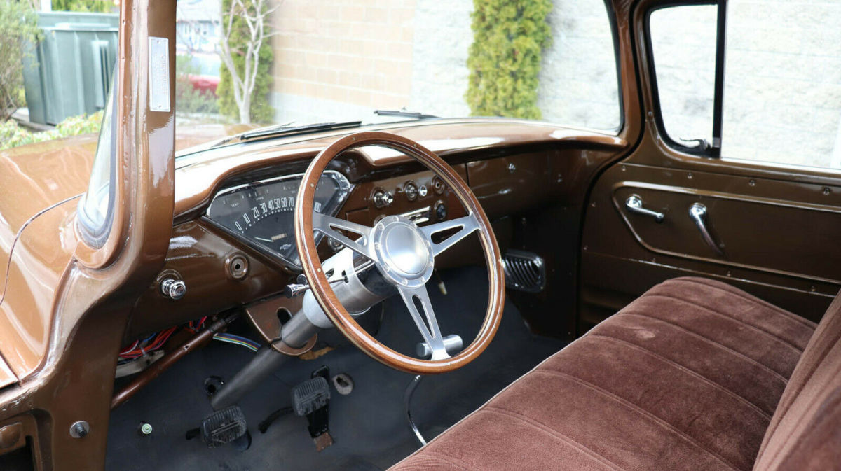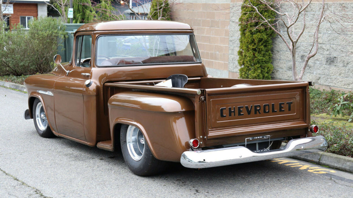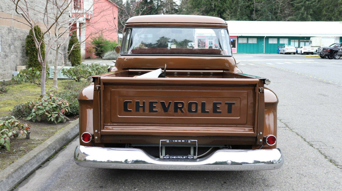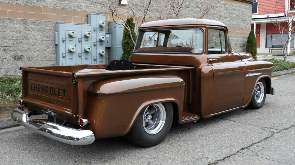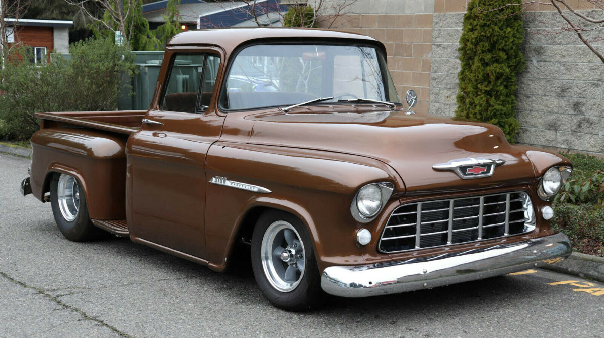 Description: 1955 Chevrolet 3100 1/2 Ton Short Box "Big back window", "slammed", raised bed floor 427 c.i., Weiand street blower, approx. 450 h.p. Holley dual feed, big headers, 4-core aluminum radiator Auxiliary fan, tubular a-arms, adjustable coil-overs Vented drilled disc brakes, new heavy 4-speed, Hurst shifter Clutch assembly, new 9" posi with 3.25 gears, "freeway friendly" New independent front end with QA1 shocks, super solid 15x8 & 15x10 traditional Americans with 245/60 fronts 295/65 rears 3 owner truck, gas tank mounted in rear, extra room in cab Tilt column/trick billet wood wheel, fast, fun, affordable Less than 500 miles on running gear Most parts are new - not rebuilt Re-chromed front/rear bumpers & grille V.I.N. H2550004428 Stock # 25580 20,108 miles $39,950 For more info please call Louis Lamb 425-343-7079, Kent Chaplin 206-713-7844 or Adolfo Sandoval 206-683-5855