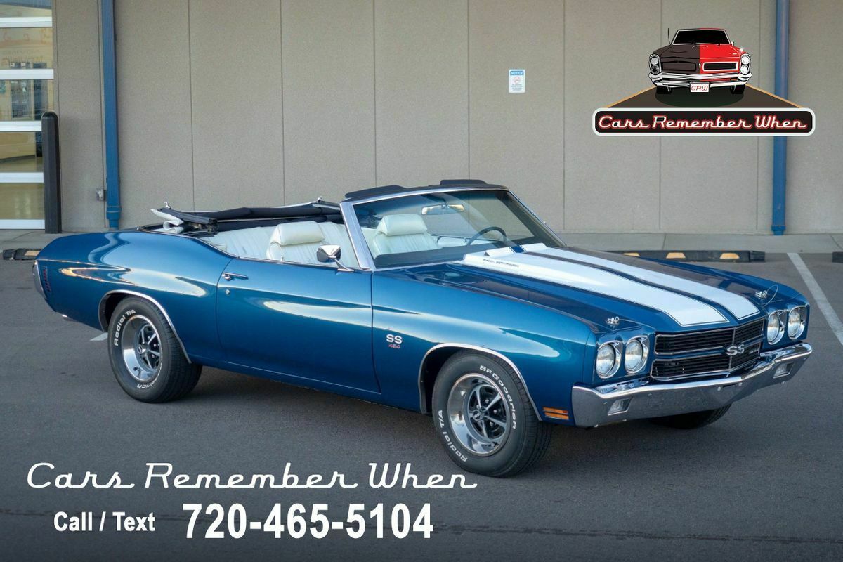 - Stunning fully restored Chevelle SS 454 Convertible - LS5 454 / 360HP V8 - Muncie 4-speed manual transmission - Code 28 Fathom Blue exterior - Code 791 Ivory bucket console interior - Power front disc brakes - Power steering - Factory A/C converted to Vintage Air - 15'' SS wheels with radial T/A tires - Retro radio - Power windows - Power convertible top This SS 454 LS5 4-speed convertible has undergone a meticulous,frame-off, rotisserie restoration. Beautiful Fathom Blue paint, body lines, and finish. No build sheet was found during the restoration so it is sold with no documentation. Please make sure to look through all the photographs as this car will speak for itself.A multitude of safety and convenience options and accessories include power steering, power disc brakes, power top, power windows,twin outside mirrors, tilt wheel,special instrumentation with needle gauges, and an Ivory bucket console interior. The factory A/C has been converted to a modern Vintage Air system. What is left of the factory A/C parts areincluded with the car. A second set of front 18'' and rear 20'' chrome Ridler wheels + Nitto tires come with the car (additional freight charges may apply). The engine suffix code appears to read 'CRT' which decodes too; '1970 CRT Chevelle 454 360hp Mt HP'Source (tech/bbsuffixcodes.html) Offered for sale by Cars Remember When Auto Sales. CALL TODAY 720-608-5242 Please visit our website to view full photo gallery and a video of the vehicle running. Do you have a car collection? Are you wanting to sell a few cars or the entire collection? We are a buyer! Please contact us about possible purchases. |