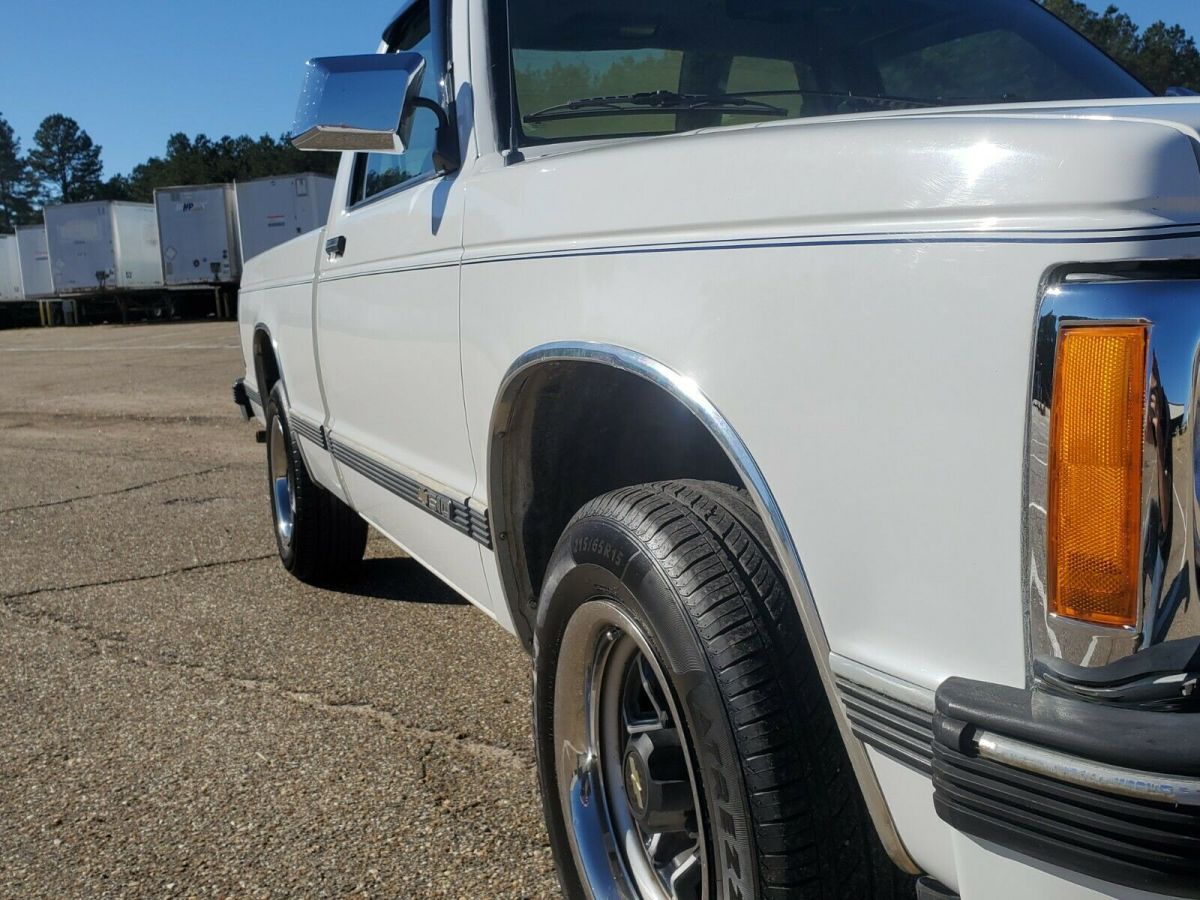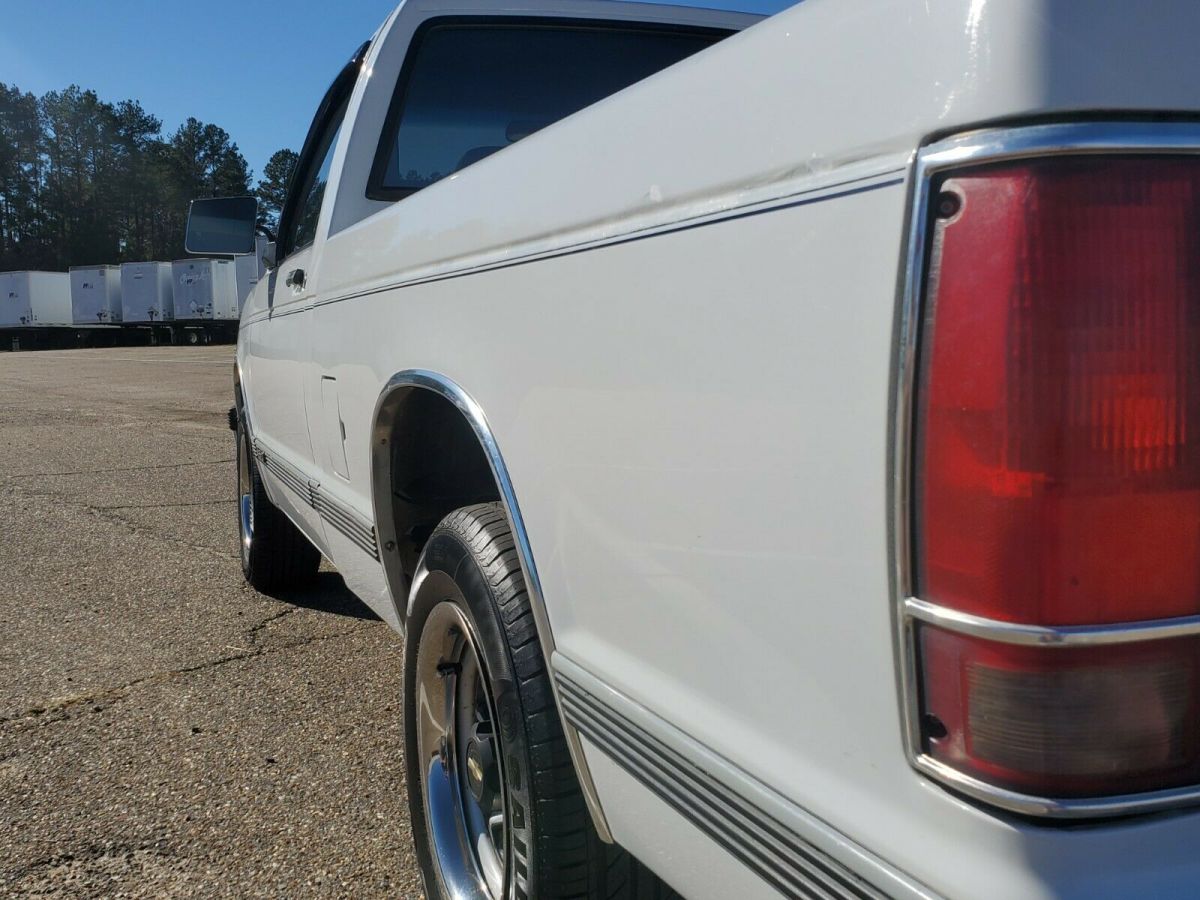 I have for sale a VERY NICE original unmolested 1993 Chevrolet S10. Very hard to find one of these 1st Gen S10's in this kind of shape. This truck is in very nice shape and I am the second owner of it, bought off an older couple. It still wears its original paint but does have some chips in the paint in a few places that have been touched up. Never been wrecked or repainted. No dents in the body anywhere and absolutely NO rust anywhere. It has the 2.8 V6 with a 5 speed manual transmission. It runs and drives great with no leaks, doesn't use any oil or smoke and shifts great. The A/C works and blows cold, been converted to 134A. Everything on this truck works including the radio. It is white with blue cloth interior. There are acouple cracks in the dash which is typical and the headliner will need to be reglued. The suspension is great on it and the truck drives like its brand new. There are no squeaks or rattles in the truck or suspension and its nice and tight. You need to drive it to really appreciate the condition of it. It has the 15" wheels with very nice tires with alot of life left in them. I have converted the gauge lights to LED and converted the headlights to HID, all plug and play, no cut wires or hacking done. Look at all the pictures and ask any questions you want to know about the truck before bidding. Clear Louisiana title in my name. I can be reached by message here or you are welcome to call or text me at 318-348-4626. I have the truck for sale locally and on other sites so I reserve the right to end the auction early. Buyer is responsible for pick up or delivery. There will be a $500.00 nonrefundable deposit due with in 24 hours of the end of auction with the remaining balance due with in 7 days of the end of auction. The truck and title will not be released until full payment has been made and cleared.