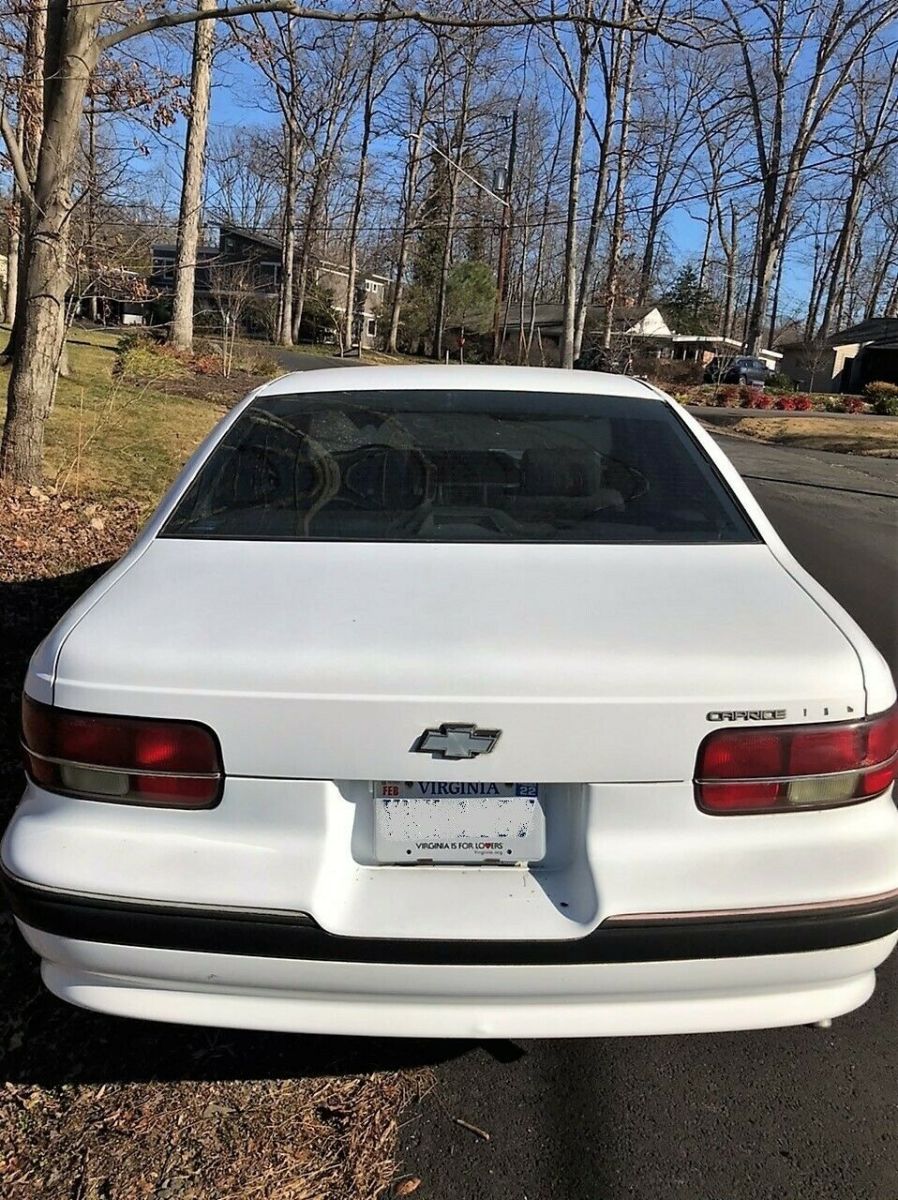 1991 Chevrolet Caprice Classic with currently 137,770 original miles. Car has always been state inspected and emissions tested. All mechanical systems operating as they should, such as power steering, brakes, lights, horn. No manifolds leaks, tight muffler system. This Caprice Classic is an eight cylinder engine with automatic transmission, and drives very comfortably and smooth without issues. Same owners for the past 17+ years with one internal family title transfer for estate planning purposes about 7 years ago, so CarFax may show the transfer. No accidents during this time, one repaint color but we didn't do the jambs, trunk or engine bay. The car has always been serviced by two state certified local repair shops both still in business. Air conditioning and heater work. Cosmetically see photos; body has dents, missing molding, trim pieces, emblem. Driver side rear quarter panel has a rust spot and inside the trunk two spots top near deck lid. Leather interior as shown. Dual power seats. Dual power mirrors, pass. side may not work fully. Some days have to pull drive door handle harder to open door, may need oil or handle cable adjustment. Arm rests fallen off, but included. Dash has cracking and missing center vent, some other plastic interior pieces may have broken off over the years. Sun visor material needs replacing. Power windows work, rear pass. side needs a helping putting up but works. Radio is aftermarket CD, sometimes it turns itself off. Original power antenna surprisingly still works. Caprice's have horn button issues, our mechanic installed an aftermarket button over the original, see pic. There are probably things not listed here, so please feel free to come over and inspect the car. There is no warranty and this is an as is sale. Undercarriage looks better than most newer cars on the road today. This is a rare great running vehicle that gets lots of attention. It has also been very dependable.