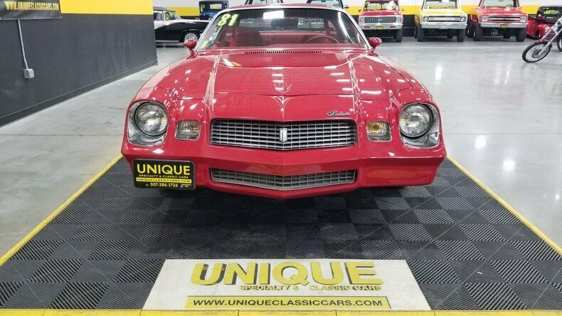1981 Chevrolet Camaro Berlinetta finished in Red paint with removable CC-1 code glass t-tops. Paint is in nice shape and has a good shine to it. This is a one owner, California car. the rebuilt 306 V8 that is paired with a TH350 automatic transmission. The engine has about 20,000 miles on it since the revamp. Power steering, power brakes, and air conditioning. A/C has been converted, does not blow cold. Riding on the correct wheel covers with white wall tires. Comes with tool for removing wheel covers. Door protectors have also been replaced. Interior has had the carpeting, headliner, dash, and seat covers, seat covers replaced and are all in great shape. Comes with receipts. Power windows. Red cloth bucket seat interior with center console and automatic shifter on the floor. 118,000 miles on this car, all work done approximately at 98,000 miles. Factory cassette stereo works. Nice sounding Berlinetta! Give us a call at 507-386-1726 or email "sales@uniquemankato.com" to inquire about this vehicle. This particular vehicle IS ELIGIBLE for an extended warranty! Ask us for more details! MN residents are responsible for tax, license and title procurement fees. Out of state buyers will only have a $125 Title Procurement fee, no tax or other fees charged. |