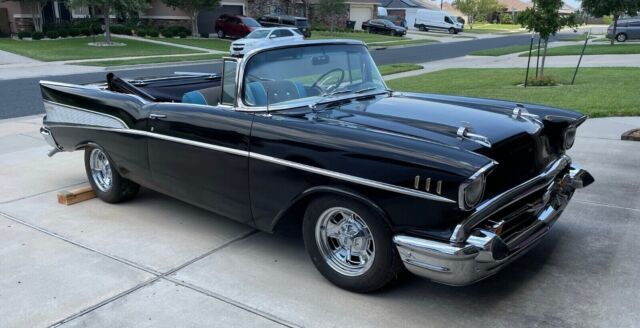 1957 Chevrolet Bel Air Resto-Mod. Needs interior. I have all the garnish moulding. Car was originally a hardtop. All that is left from the original HT is the dash, A-pillars and frame. Frame has been modified to convertible x-frame. Has 4-speed. Saginaw transmission. Transmission and differential are rebuilt with 343 gears. Engine rebuilt, bored .030 over. Has:Cragar Mags2-inch dropDisc brakes in frontPower brakesPower steeringACBF Goodrich tiresTubular A-armsAll new window regulatorsAll new glassAll new chrome and stainless steelCherry Bomb mufflers Two-speed wipersLED tail lights, brake lights and turn signalsNew topNew top motor and hydraulics.Rear seat springs are powder coated.All sheet metal new, except front fenders.Front fenders are original GM.Frame-off restoration.