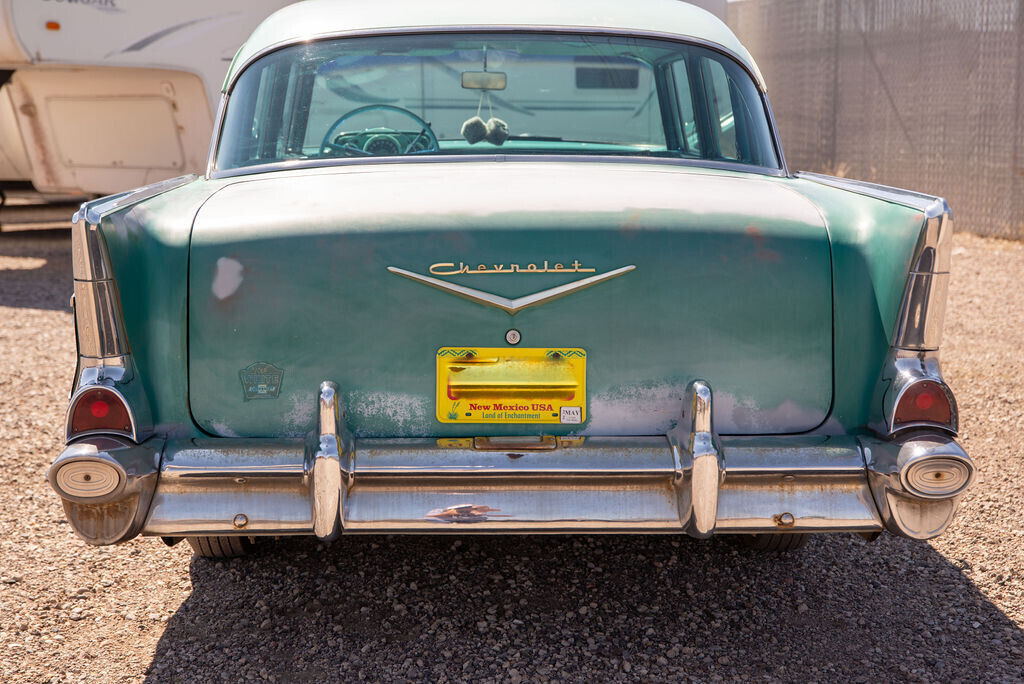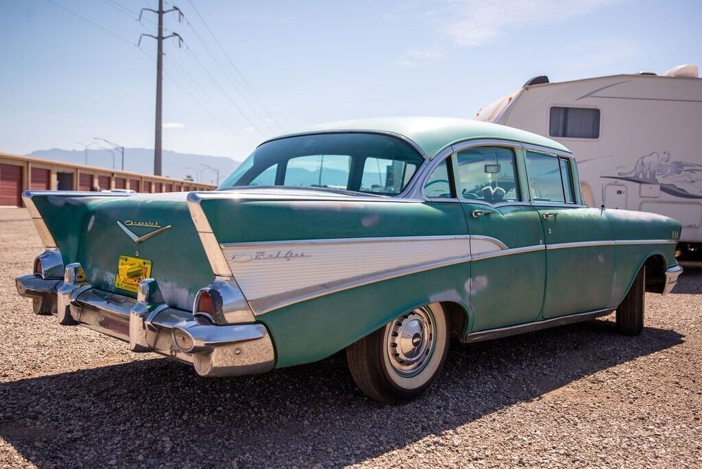 Original unrestored 1957 Chevrolet Bel Air 4-door Sedan for sale by private party For past 25 years, this American classic has been stored inside a New Mexico garage awaiting restoration, but plans changed. I recently hired a local classic car shop to replace the fuel system. This Bel Air sedan now purrs like a kitten and can be driven, but will require new tires. Video of driveability available upon request. This car was originally purchased in Denver, Colorado in 1957. During its early life, the car was subjected to some road salt in the winter, but has little rust. I purchased this car from the original owner's daughter and drove it during the 1980's and early 90's. Since then it has been in storage in Colorado and New Mexico. That's why it's in such nice shape. This rare, well cared-for Bel Air would make an affordable restoration project for any '57 Chevy enthusiast! What makes this car special: