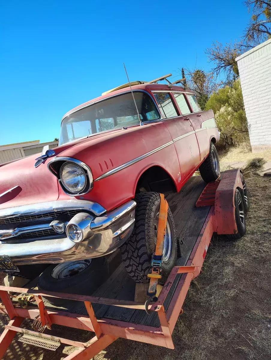 This 1957 Chevrolet 210 is a modified vehicle with updates to the drivetrain. The owner has had it for 3 years. The vehicle is drivable and is mainly used for weekend drives. Vehicle Details 1957 Chevrolet 4 doors station wagon. Engine is a 350 married to a 3 speed standard transmission. This wagon was modified by the previous owner to a 4x4 vehicle. He used a 1955 4x4 Jeep Uplander . Front differential, transfer case, transmission and rear differential. The steering components are like a Mustang II . Original frame stills support the wagon body. It will need a new wiring. |