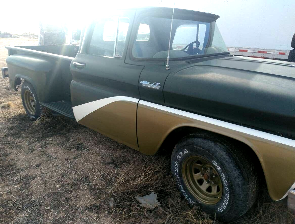 Bad to the bone 1961 Chevy Stepside Shortbed pickup that needs a seat and carpeting to be much nicer! This Big Block pickup was redone a few years back and was given to my Uncle's grandson. He drove it and loved it for a couple years and then he ended up getting a newer truck and thios one was parked.It has been sitting for about 18 months but will definitely start and drive with a little servicing. It is a solid truck that can easily be taken to the next level.Tilt wheel, Mag wheels, raised white letter radials, automatic transmission, 455-V8 engine and all the potential you could ever want! Frame is solid as is the truck. Always been in New Mexico. Clean clear title! Don't miss it! Call 3//05///9//2//2//34//32