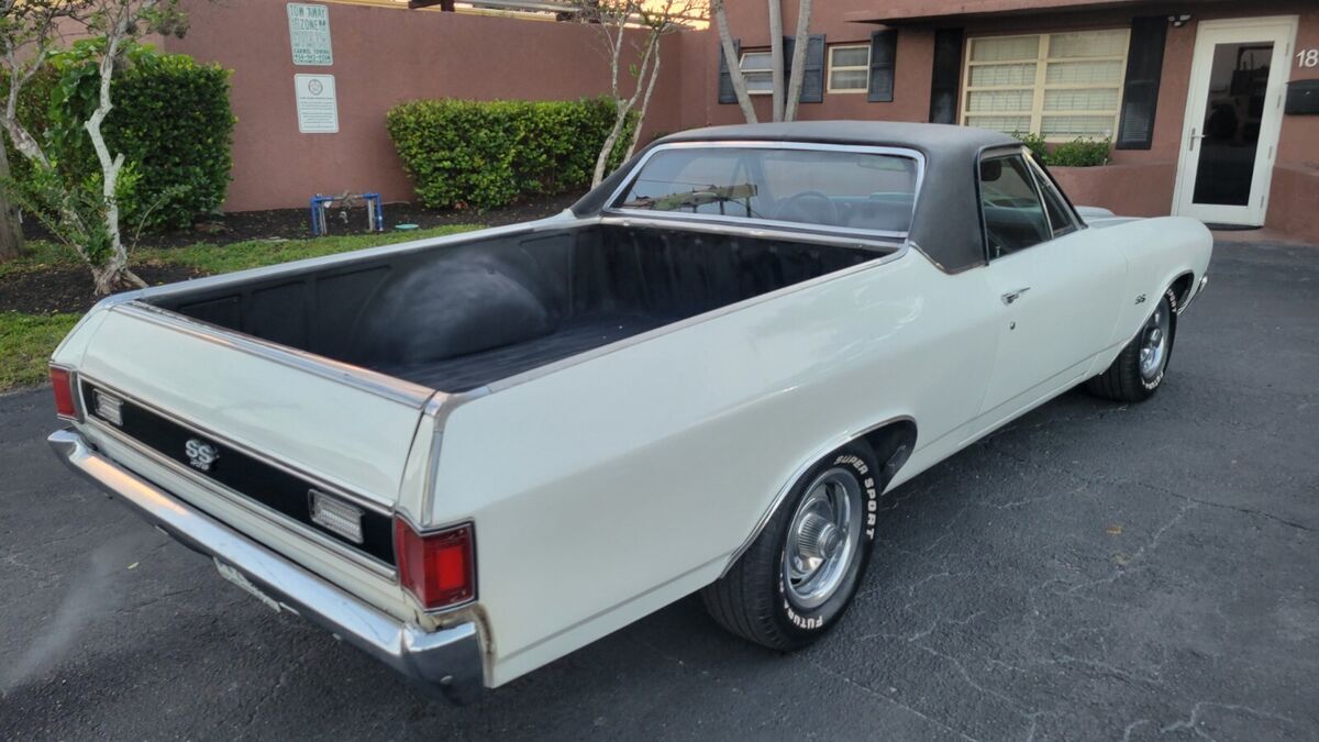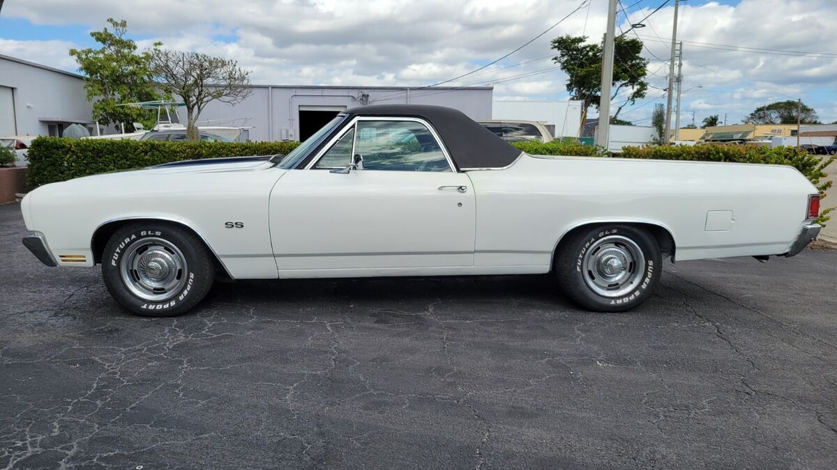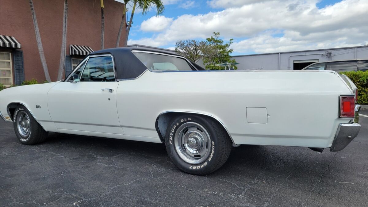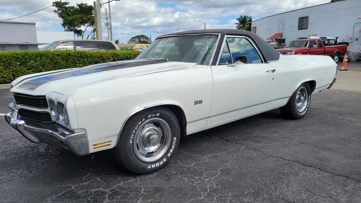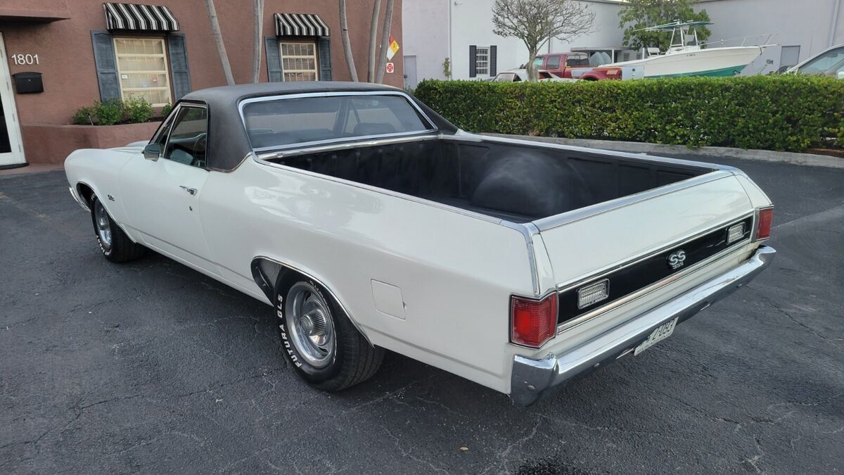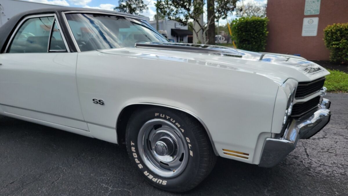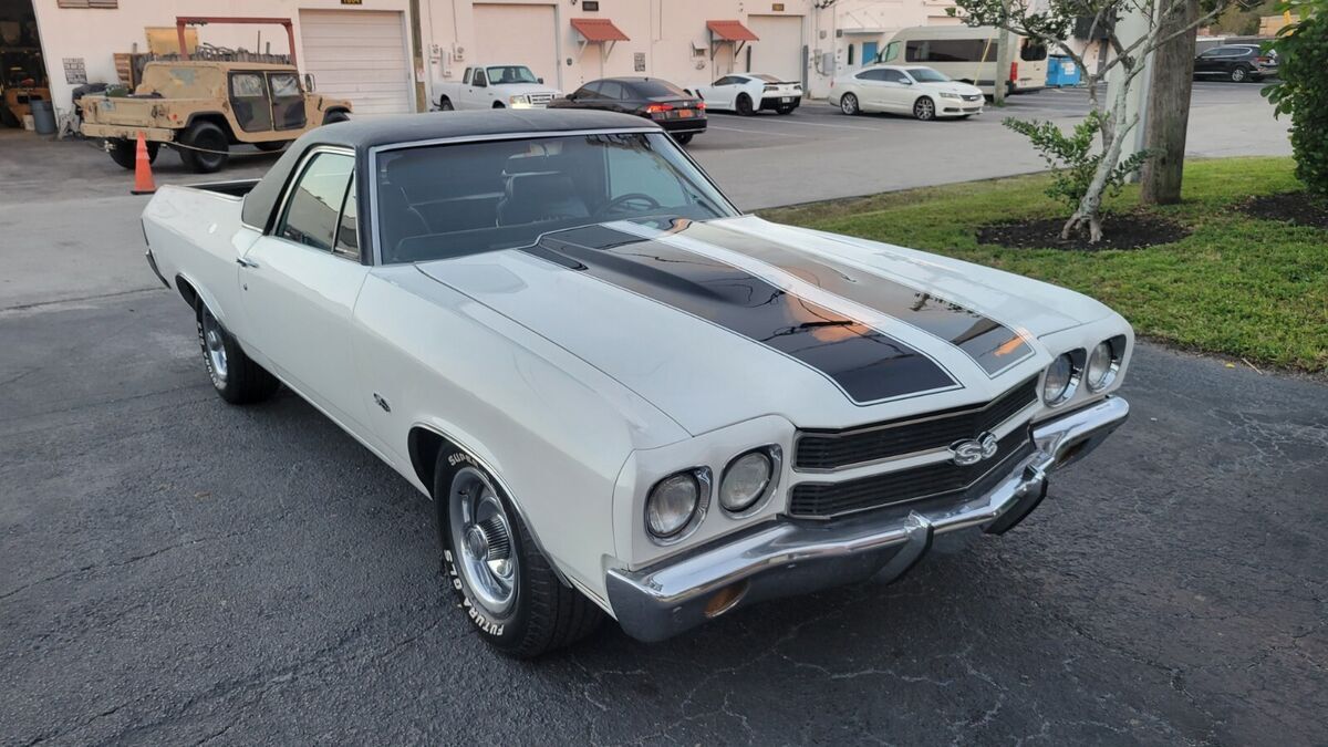 1970 EL CAMINO 396BB A TRUE SS CAR WHITE PAINT BLACK INTERIOR BUCKET SEATS CONSOLE OEM WHEEL STOCK 396 V-8 ENGINE DUAL EXHAUST AUTO TRANS POWER STEERING POWER BRAKES VERY GOOD BUMPERS AND CHROME/STAINLESS SOLID TRUNK FLOOR AND UNDER CARRIAGE CORRECT SS RALLY WHEELS RUNS AND DRIVES INTERIOR BUCKET SEATS CONSOLE AM RADIO ENGINE AUTO TRANS AIR CONDITIONING CAR (ALL THERE), POWER STEERING POWER DISC BRAKES MANUAL WINDOWS AND LOCKS RALLY WHEELS SOLID TRUNK BED FLOOR AND UNDER CARRIAGE WE OFFER COLLECTOR AUTO LOANS AND WORLD WIDE TRANSPORTFREE SHIPPING ONLY WITH BUY IT NOW OPTION AND WITHIN THE CONTINENTAL USA ONLY FOR FULL PRICE NO BEST OFFER.Matching numbers 396 CI V-8 engine (no build sheet) buyer must check infoHydramatic transmissionPower steeringFront disc brakesSoft Ray tinted windshieldRally II wheelsDual Flow-master exhaustCenter console and horseshoe shifter is there but needs to be installed/connectedSPECIFICATIONSENGINEV-8TRANSMISSION:Automatic EXTERIOR COLOR WHITE INTERIOR COLOR BLACK IN BLACK MAKE CHEVROLET MODEL EL CAMINO BODY STYLE SS COUPE HIGHLIGHTS DRIVER QUALLITY Matching numbers 396 CI V-8 engine Hydramatic transmission Power steering Front disc brakes Soft Ray windshield Rally wheels Dual Flowmaster exhaust PHOTOSADDITIONAL VEHICLE DETAILSrecon engine and transmission*Automatic*Power Steering *Power Brakes DISCLOSURE*Cosmetic: paint good driver's quallity (See detailed pictures).*Mechanical: Sound.*This vehicle is being sold mileage exempt due to age. Mileage advertised reflects current odometer reading. Video link:https://www.youtube.com/watch?v=E3IdWkam_ZkAttachments areaPreview YouTube video 1970 Chevy ElCamino 396 bb1970 Chevy ElCamino 396 bbAttachments areaNOTE: Sold as seen in pictures. Customers please note every computer shows colors differently. All measurements are approximate. Hardware and instruction/ installation manual not included. Product have some stains, dents, scratches and/or scuffs from use and handling.TERMS /CONDITIONS: These Goods are offered subject to prior sale, withdrawal, without notice. Buyer has right to inspect said Goods prior to final bid. Acceptance of bid shall constitute a binding contract. This sale is "as is, where is," in Ft. Lauderdale, Florida USA, with no warranties express or implied as to condition, quality, or fitness for a particular purpose. Seller shall not be liable under any circumstances for any defects patent, latent, or otherwise. The Buyer acknowledges that no guarantees or warranties were expressed or implied by the Seller or his agent regarding the condition, quality or fitness for any purpose of the Goods.DISCLAIMER: Descriptions of these Goods are offered in good faith but Seller cannot guarantee or warrant the accuracy of this information nor warrant the condition of the Goods. The buyer acknowledges their responsibility to conduct such inspections and inquiries as they deem appropriate Following all the guidance and terms upon the company policy.JURISDICTION/VENUE: By placing your bid on this auction for these Goods you agree and accept that the rights and obligations of the parties hereunder shall be determined, in accordance with Florida law without regard to choice of law doctrines. The parties agree to submit to personal jurisdiction of Florida courts for any action relating to or arising under the terms, conditions, disclaimer as set forth above. Venue for any action arising under or relating to this transaction shall be in the court of appropriate jurisdiction for Broward County, Florida. If any proceeding is brought to enforce a parties right under this agreement, the losing party shall pay all costs and attorneys' fees of the prevailing party.these terms are not negotiable.A $200.00 non-refundable deposit is due within the end of the auction close to cover publication and advertisement fee, and the remainder is due within 5 days AFTER THE END OF THE AUCTION, WE ACCEPT money order, cashier’s check, cash, or bank transfer are acceptable forms of payment. The buyer is responsible for the pick up/shipment of this vehicle, after has been fully paid.WE CAN HELP YOU SHIPPING IT ANYWHERE AT YOUR OWN COST. The car need to be picked up within 10 days after the auction ends, unless and extension has been requested previously and has been granted/agreed and approved by the seller or Storage fees charges will be accumulated thereafter. Please ask questions before biding, and bid to buy, not to come and see if you want the car. AS IS - NO Warranty As-Is No Warranty This vehicle is being sold as is, where is with no warranty, expressed written or implied. The seller shall not be responsible for the correct description, authenticity, genuineness, or defects herein, and makes no warranty in connection therewith. No allowance or set aside will be made on account of any incorrectness, imperfection, defect or damage. Any descriptions or representations are for identification purposes only and are not to be construed as a warranty of any type. It is the responsibility of the buyer to have thoroughly inspected the vehicle, and to have satisfied himself or herself as to the condition and value and to bid based upon that judgment solely. The seller will make every reasonable effort to disclose any known defects associated with this vehicle at the buyer's request prior to the close of sale. Seller assumes no responsibility for any repairs regardless of any oral statements about the vehicle.ALL THE NECESSARY PAPERWORK MUST BE DONE BY THE BUYER THAT WILL GET THE CLEAN TITLE AND IS HIS ONE AND ONLY RESPONSIBILITY TO PAY ANY IN/OUT STATE TAXES AND REGISTRATION.INSPECTIONS ARE OPEN M-F FROM 1PM-4PM EST ONLY TO AUCTION WINNERS BY APPOINTMENT (AFTER THE $200 NON REFUNDABLE DEPOSIT HAS BEEN COMPLETED), NO TEST DRIVES ONLY SURVEYS AND INSPECTIONS, ENGINE TEST RUN AND MISC HAS BEEN POSTED IN THE YOUTUBE VIDEOS AND WE CAN DO ONSITE TEST RUN, THIS CAR DOESN'T HAVE INSURANCE AND OR A VALID REGISTRATION, SO PLEASE, THESE TERMS ARE NON NEGOT