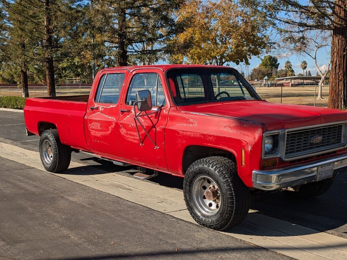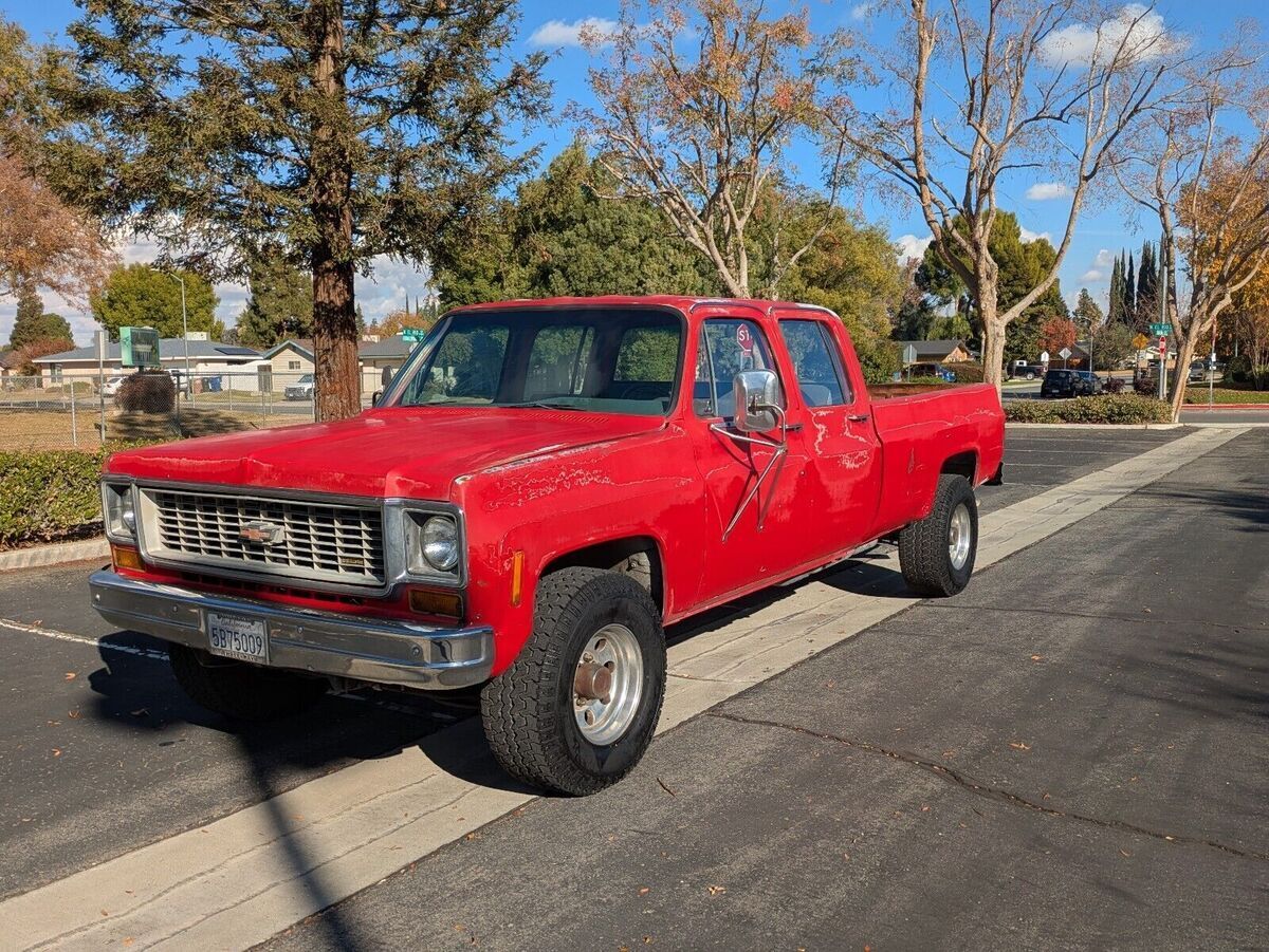 1973 2WD Chevrolet C20 Crewcab 454 CI V8 & Manual transmission. Odometer shows 13751 but has probably rolled over multiple times. Vehicle Details Rare opportunity to acquire a classic 1973 Chevy Crew Cab truck that has served as my reliable daily driver for over 20 years. Truck was repainted red some years ago and could do with redoing. It is 2WD, not 4x4. It has a 3" body lift, 33" Vortrac all terrain tires on 16.5" alloy rims, Edelbrock carburetor, headers and custom exhaust. This classic pickup runs and drives great, it does drop a little oil but that hasn't stopped it from getting me where I need to go including a cross country trip from California to North Carolina and back. If you're looking for a solid classic truck with seating for six that needs a little TLC this could be the one for you! |