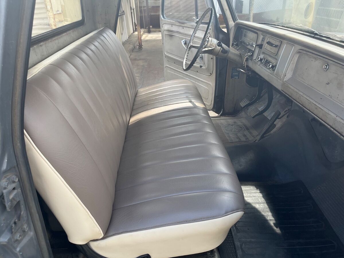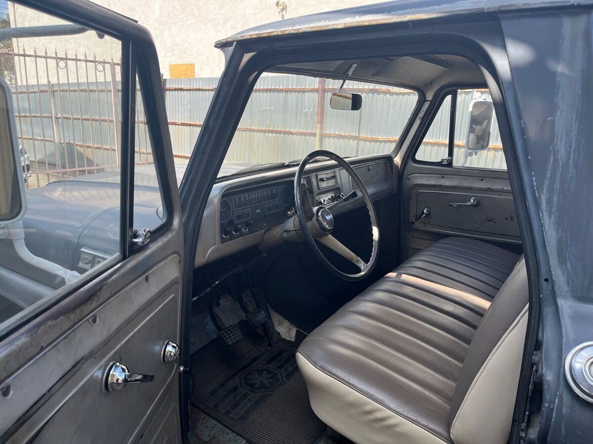 This 1965 Chevrolet C-20 (three quarter ton) long bed pick up truck, has been in the family since 1965. Except for the color changed from blue to gray, it remains entirely original, including the am radio. There are some dents, scratches and small repairs to the usual rust damage.The original “split rim” and tube tires have been stored and included. It has a six cylinder 230 engine and a “three on the tree” Manuel transmission. There are no fluid leaks. All paperwork kept. |