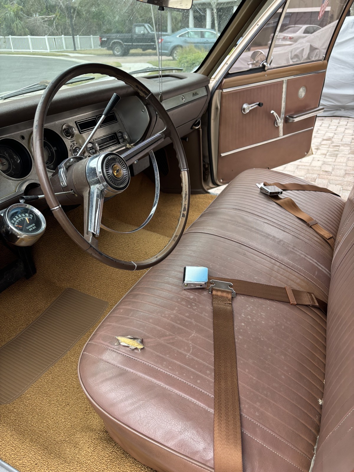 Super cool west coast station wagon! This is an original west coast wagon, starting off in CA (Los Angeles is best we could tell) before making its way to the greater Seattle area in the early 80s. That is where she stayed until I brought her to Florida in 2018. According to the gentleman I purchased her from, I am the third owner. While under his care, she was upgraded with the following:- SBC 350 with Turbo 350 transmission- Power steering- Power disc brakes up front using 69 Camaro parts. Drums are still out back- He installed Vintage Air’s first-ever AC setup. I’ve never run it, but it’s all there- One respray in mid-80s. That is also when he added his signature single, wide stripe I added:- EFI using Edelbrock's Pro-Flo4 setup- Tanks Inc 24 gal tank with in-tank fuel pump- New fuel lines (on the supply side; used the factory lines for the return)- Polyurethane body mounts- Seat belts front and rear- New carpet Recent work includes a new fuel pump, battery, and drain/flush of the fuel system. Replaced manifold gaskets on the passenger side; the driver's side was fine. And now she's running like a top. The rest of the interior is original except the dash pad. That was replaced when the car was resprayed. I would not hesitate to drive this anywhere, provided enough time is budgeted, as she does not have overdrive. So, ideal highway cruise speed is 65mph. In fact, she has made at least 2 dozen 500-mile round trips from Tampa to Miami without any hiccups at all. If you are looking for an honest, solid wagon to either drive as is, upgrade as you go, or restore, then this is a great candidate. I would love to hold on to her, but space and time are not my friends, and I need to pass her along to her next caretaker. I have tons of pics that I can share as well. The last pic in the listing is a collage of her warts. Outside of those areas, and the spare tire well, there is no rot or rust (outside surface on the frame) anywhere else on this car. Note that I never drove her in the rain and outside of those crazy trips to Miami in 2022, she has only been used for short trips a few times a week. Mileage is unknown but the odometer does work! So does the clock!! Please ask as many questions as you need to be comfortable with your purchase. I would not want a buyer to be surprised in any way so i am willing to answer as many questions as needed. No, she isn't a show car, but she is a solid and reliable driver that can be enjoyed as is or taken in whatever direction the next caretaker wishes. More than happy to assist with buyer's shipper.
