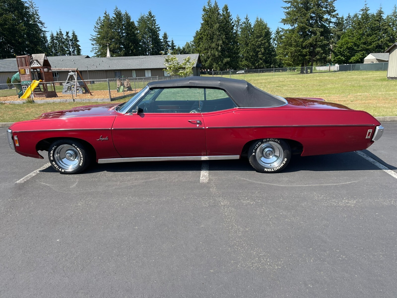 1969 Chevy Impala Convertible 327 Up for a 7 day worldwide no reserve auction is this 1969 Chevy Impala convertible. This is a super sweet car and very fun to cruise around. The engine is a 327 that runs very smooth! The auto transmission shifts good. This car runs, drives, stops and handles down the road good. Very dependable runner and always starts! Mechanically its in good reliable shape. The exterior looks great! The body is pretty straight and clean. The paint is older but still looks really good. The power convertible top goes up and down easily! The top is also in good condition. Overall the exterior presents very well and turns a lot of heads! The interior is clean but does have a tear on the driver seat. Dash is in good shape. The carpet is all intact but is sun faded. The odometer does not work along with other gauges. Overall the interior is in good shape as well! Trunk is very dry and clean! The underside is also dry and free of any rot. This car is in nice daily driver condition as is and is ready to be enjoyed! Very fun to cruise around in! This car is selling with NO RESERVE so please be prepared to purchase! I am willing to end the auction early of someone is serious! If you have anymore questions please feel free to ask The Car is Available For Inspection Or Viewing Before The Auction Ends! I Can Help Set Up A Shipping Or Get A Quote If You Are Out Of State. Selling As-Is With No Warranty. I Expect Winning Bidder To Contact Me Within 24hrs After Auction Ends. Must Be Paid In Full Within 3 Business Day After Auction Ends. I Will Accept Cash In Person, Bank Wire, Bank Transfer Or Cashiers Check Only. I WILL NOT ACCEPTCaramel Or PayPalAt This Time. I Will Overnight The Title And Bill Of Sale The Same Day The Funds Are Cleared. This Is A No Reserve Auction So Please Be Prepared To Complete The Purchase If You Win. Thank You And Good Luck!