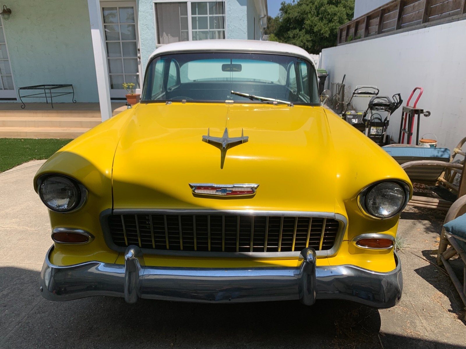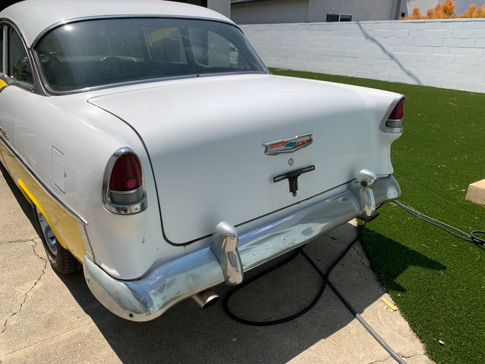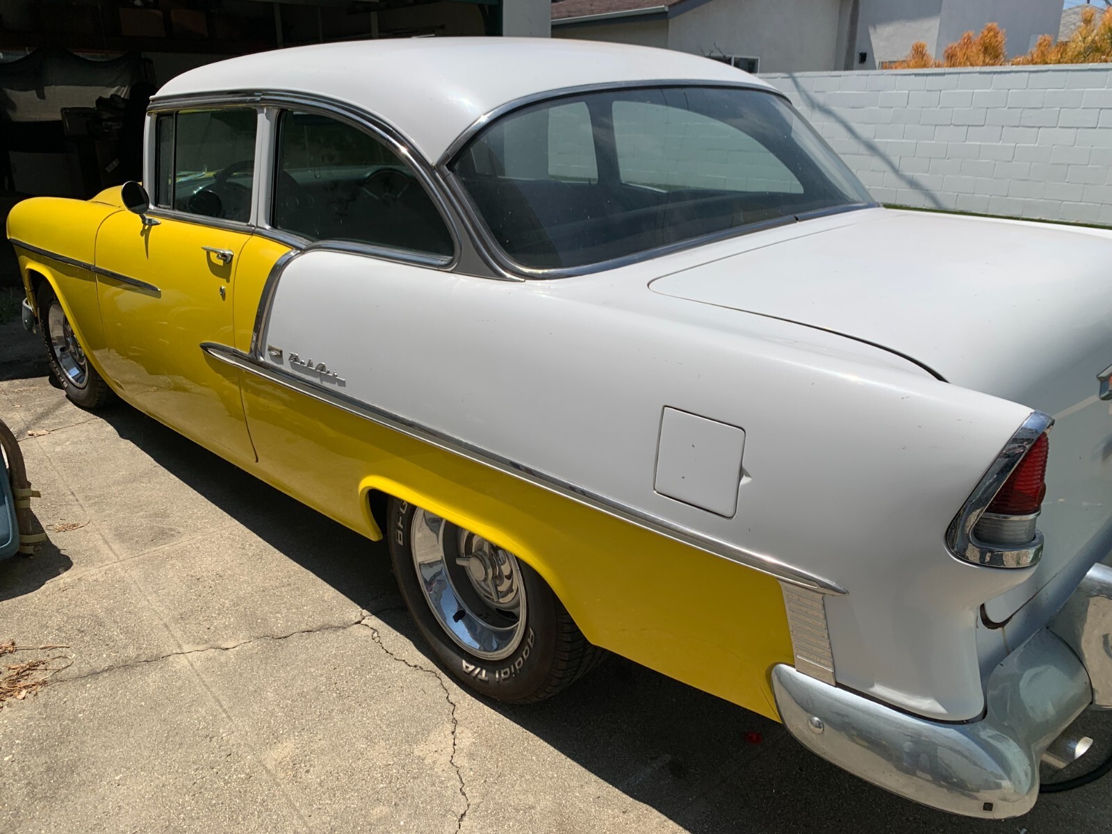 *. * This 1955 Chevy Bel Air 2-Door Post has been patiently waiting in a Los Angeles garage for over a decade on blocks and is now available as a project roller. Engine: Features a powerful 406 cubic inch V8, built from a bored-out 396 Ford truck block (FE 6.5 L), topped with a 4-barrel carburetor. Engine starts, but a complete tune-up and fluid service are essential. Odometer 822040 - New Engine - less than 5000 Drivetrain: Robust Turbo 400 3 speed transmission paired with a Ford 9-inch rear end and 3.55 gears. Modern Touches: Tilt steering, power steering, and power brakes. P225/60R15 95S in the front, P225/60R15 102S on the rear.(Two inches off the front springs gave it a nice stance, did not tub it! did the whole flip the rim thing) 2 inch exhaust, traction bars Quality Components: Hydraulic lifters, Painless Wiring electrical system, and a hidden kill switch for security, Project Condition SOLD AS-IS Engine runs but is in dire need of a tune-up and all fluids changed.(example, the heavier oil was drained and 30w was added for easier start) Front end bushings are rotted and require replacement. Long-term storage was on blocks and has a clean pink slip ("NON OPT" with DMV) and not insured. (will re-instate insurance for transport) Buyer assumes full responsibility for inspection and transport. This is a fantastic opportunity to build a truly unique Born and Raised California Bel Air. Serious inquiries only. (cassette not included)