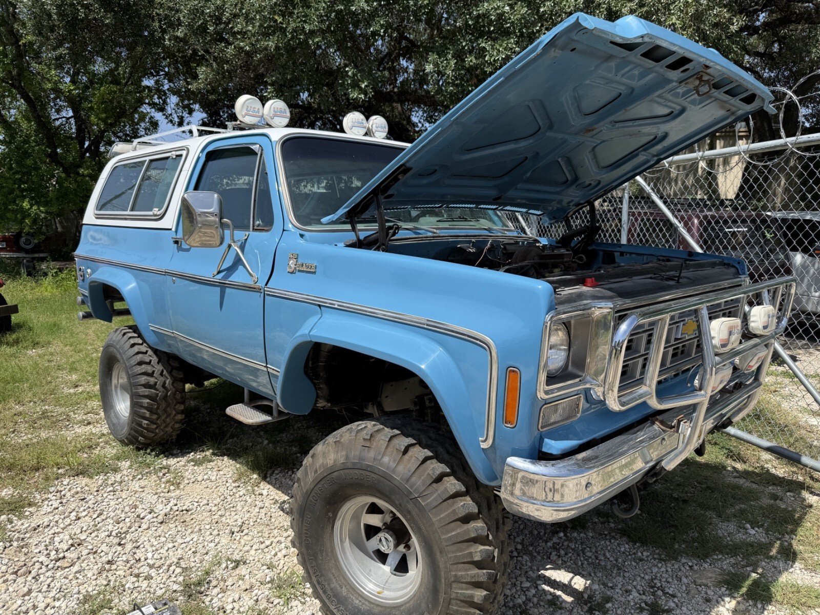 1978 CHEVY BLAZER CHEYENNE Call HAWK 210-548-1310 Howdy from San Antonio! Step back in time with this rig. This 1978 Chevy Blazer has been in dry storage for a long long time! It was said to have been mildly customized back in the late 80’s. It’s got that super cool old school look about it! The truck has a strong running 454 Big Block in it mated to a Turbo 400 automatic transmission and two-speed four wheel drive transfer case. The body and paint look great! It has grafted in fender flares that were very nicely done. It also has a “tilt down” front clip. The truck truck has the Cheyenne package so all the nice looking trim. Absolutely no rust with the exception of a little under paint bubbling on lower passenger door. Both doors are solid underneath. All the glass is good, all old style “roll-up” windows, even the back glass which does work! Floors are all solid and very original, no cuts or patches. The removable top is in super fine shape with the nice slide out glass. Note! The tires are very very old and must be replaced. But…..they sit on very rare 12inch wide old school wagon wheels. Truck comes with a clear Texas title. Thanks for looking…… IMPORTANT!!!!! Winning bidder MUST send a $1000 deposit right at auction end by Zelle, Cash App. or Wire In. The FULL balance must be received within a week by Cash in Person, or Wire-In only. No checks. Thanks!!!! Also......I'm happy to help arranging shipping for you. Cheers!!!!!!! |