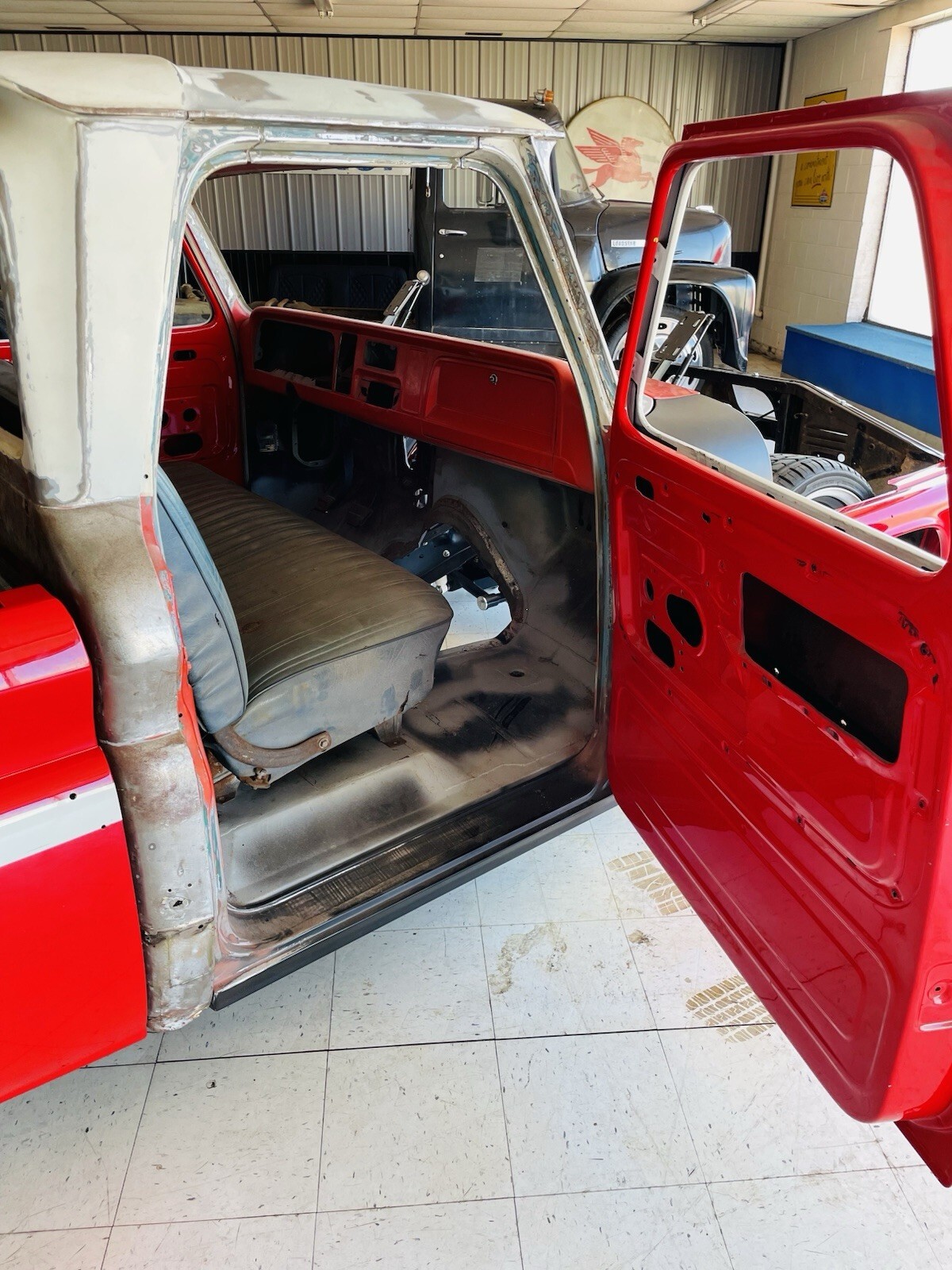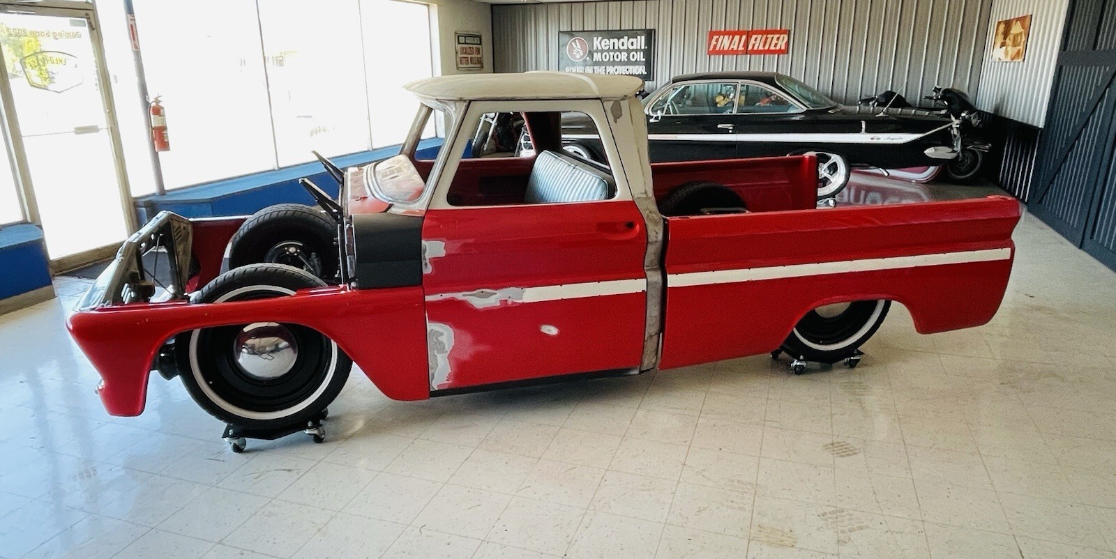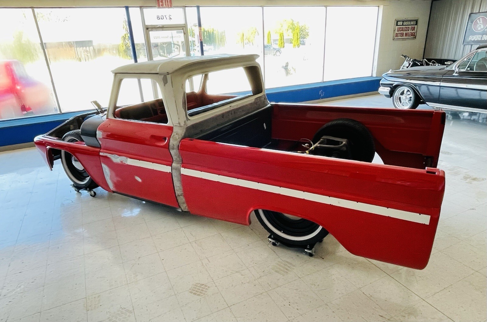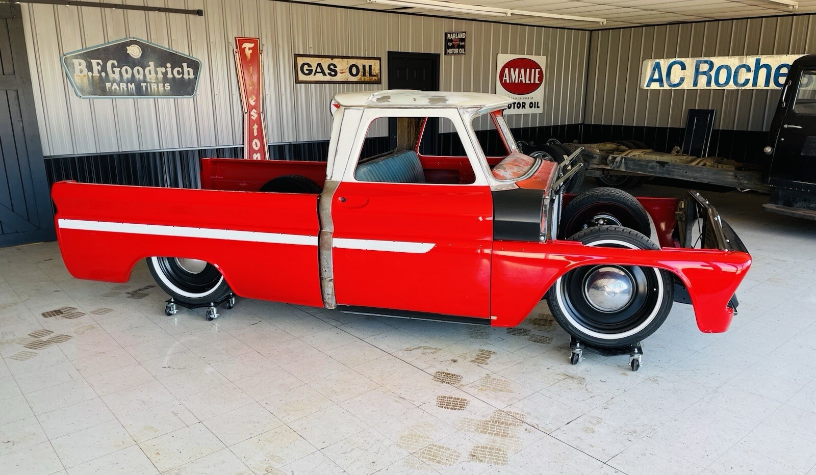 1964 Chevrolet C10 bagged project. It has a bunch of nice aftermarket parts and work already done to it. Stock chassis with Tin works fabrication frame stiffener, tube trailing arms and rear frame support. It has a CPP front disc brake conversion, Chris Alston watts link, 22” transport wheels with 265/35R22 tires, upper/lower tube a arms, front/rear shock relocator kit with shocks, bead rolled firewall, LS motor/transmission mounts, Porterbuilt hood hinges, squarebody steering box, billet tie rod adjusters, RE5 and RE6 air bags, and some other odds and ends. Comes with factory bench seat, steering column, steering wheel, gauges, door glass and vent window assembly’s and a bunch of miscellaneous parts. Clean and clear title in my name. Has a new front bulkhead for bed as well as all bed supports, red poly cab mounts, and a pair of cab corners to finish cab. All rust has been repaired on cab other then cab corners. Also included is a new windshield. Rear cab inner has been removed to convert this into a big window cab. Factory small window inner panel is included as well. This is a great project for someone to take on at this point. I have a clean title in my name for the truck. Parts I know I don’t have are bumpers, grill, inner fenders, or rear wheel tubs or tailgate. Open to possible trades for other classics. Feel free to call or text 989-five two nine- 5485 with any questions. Interested in other classic trucks and cars, LS performance parts, porcelain gas and oil signs. Buyer is responsible for any and all shipping costs. I’m willing to assist the shipper in loading and securing the truck. I can load all the parts in the cab or bed area and secure them for a trip across country. This is being sold as is with no returns!
