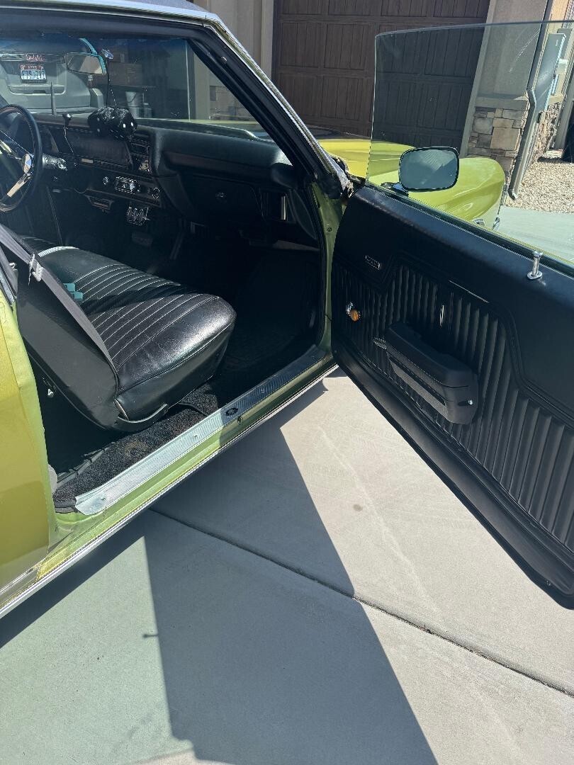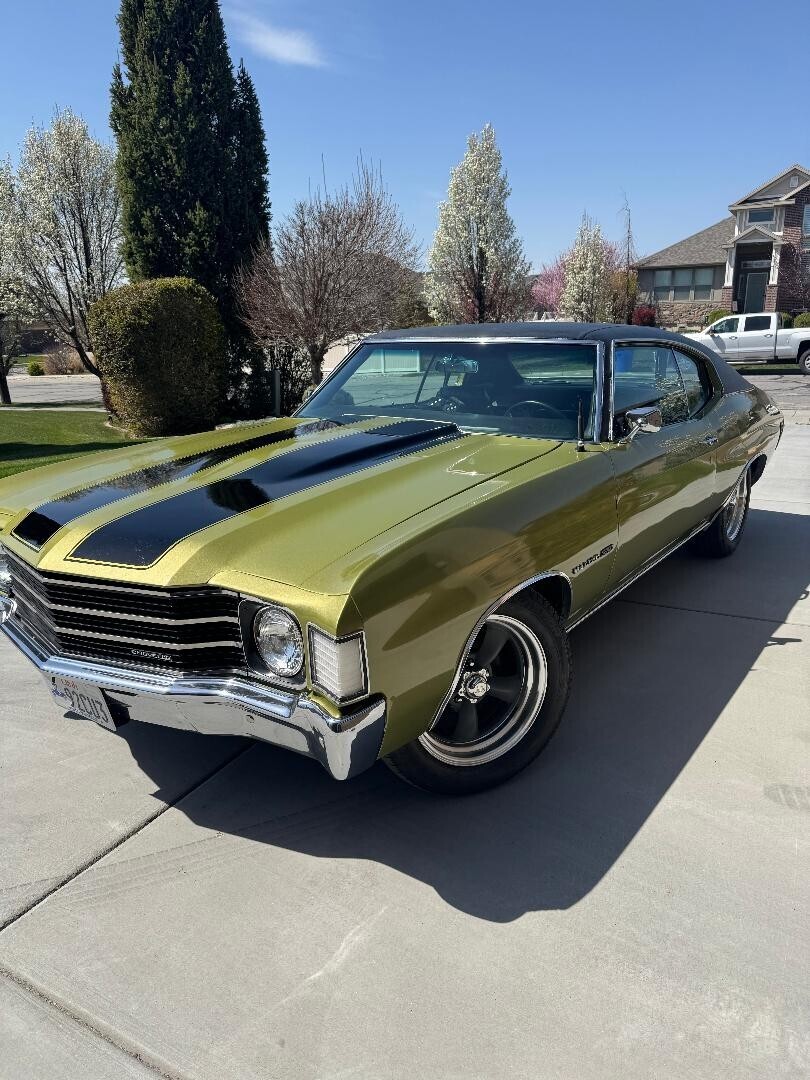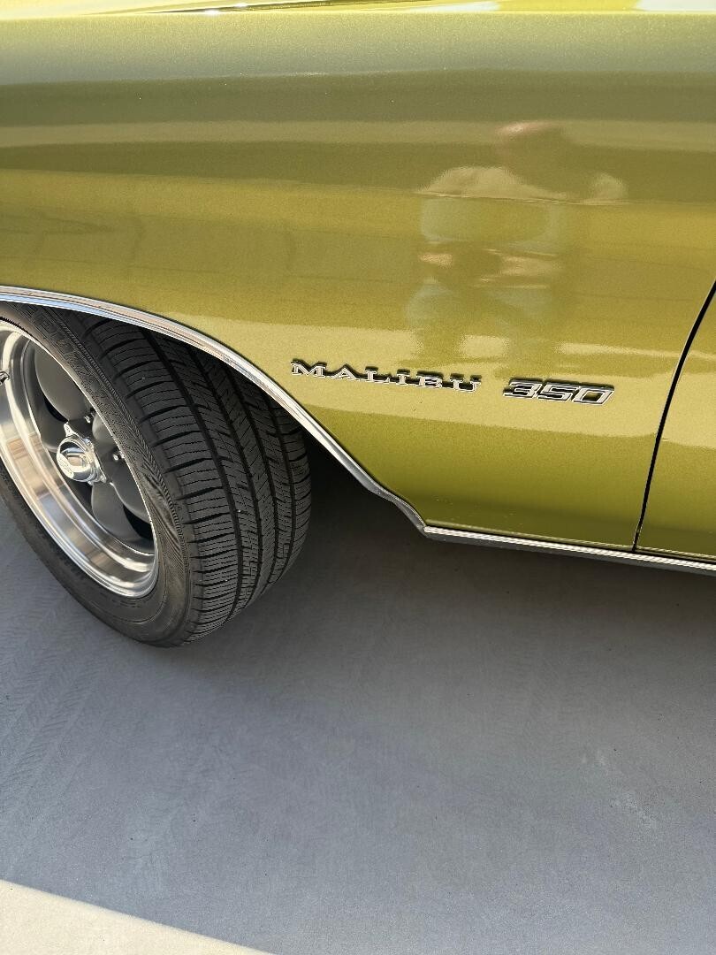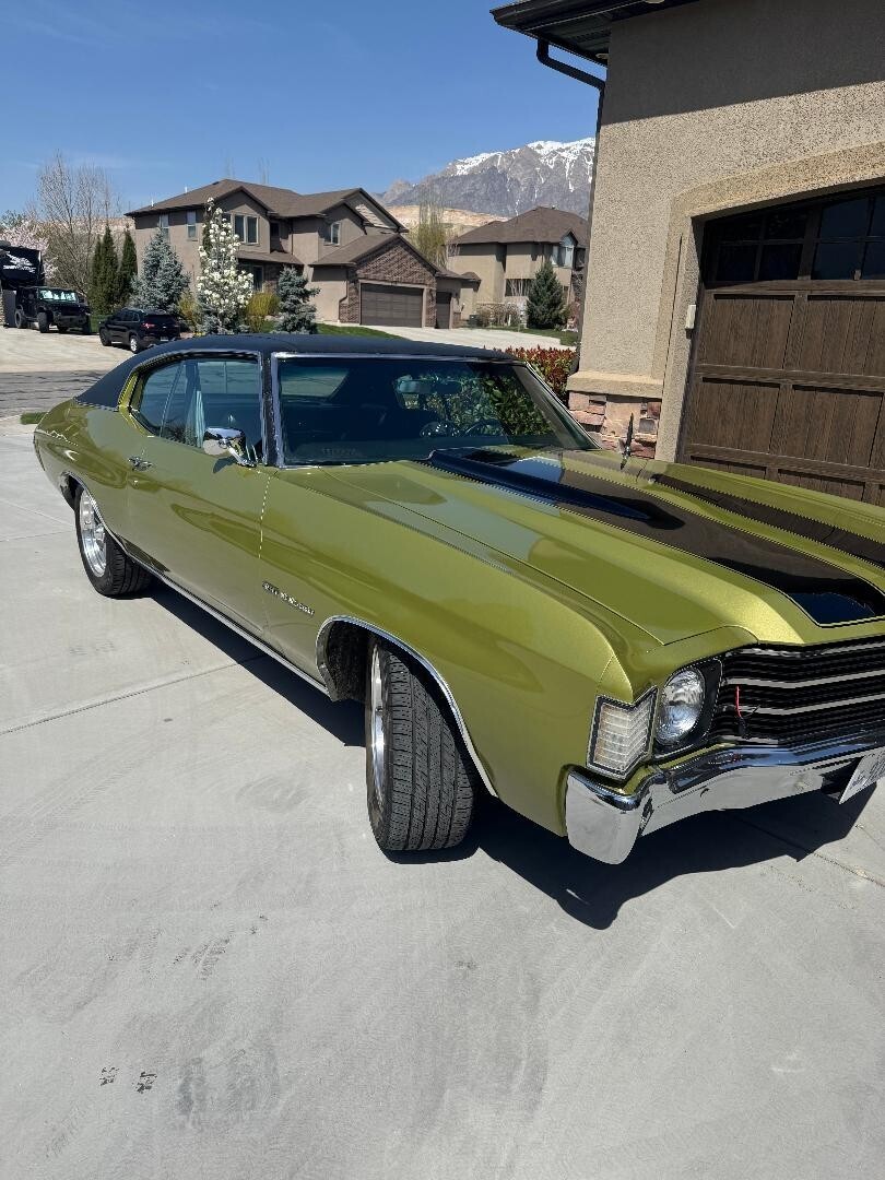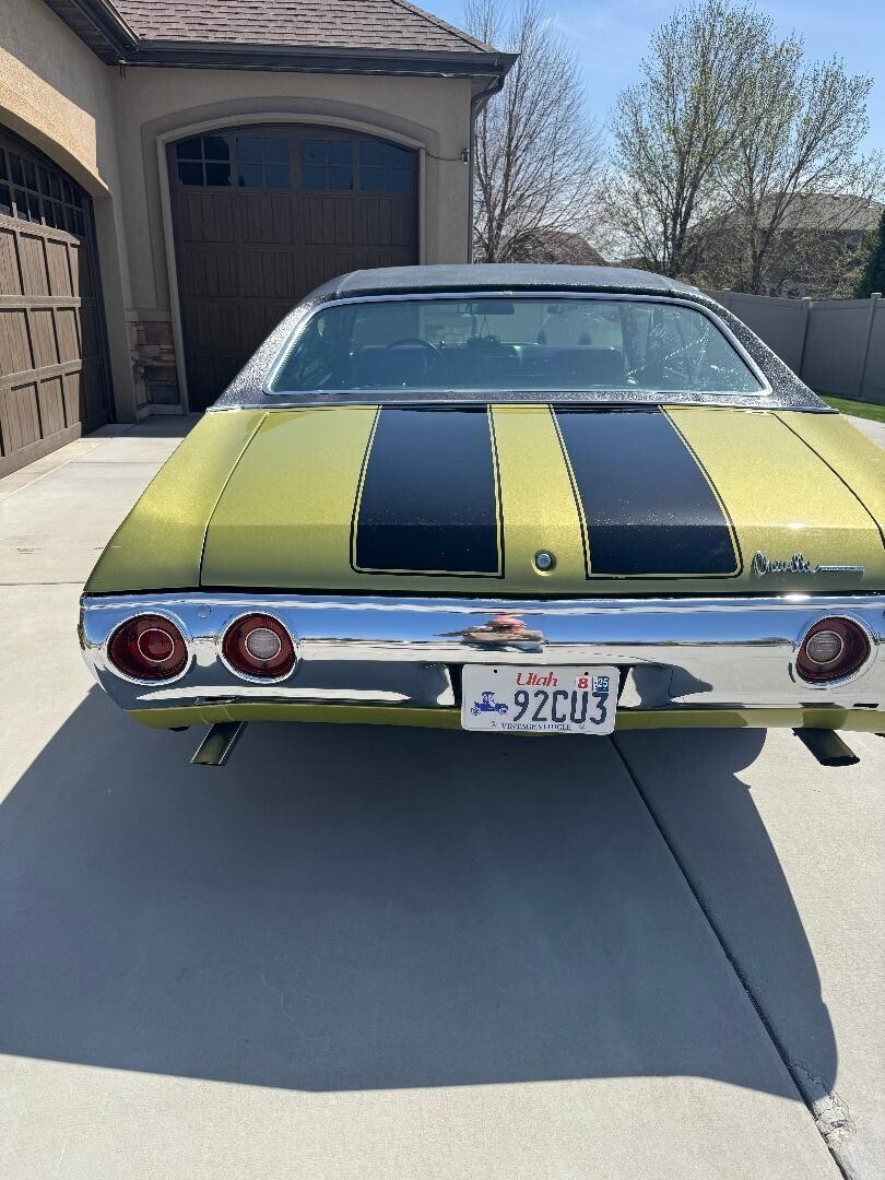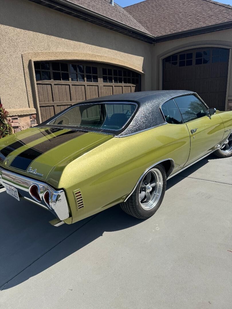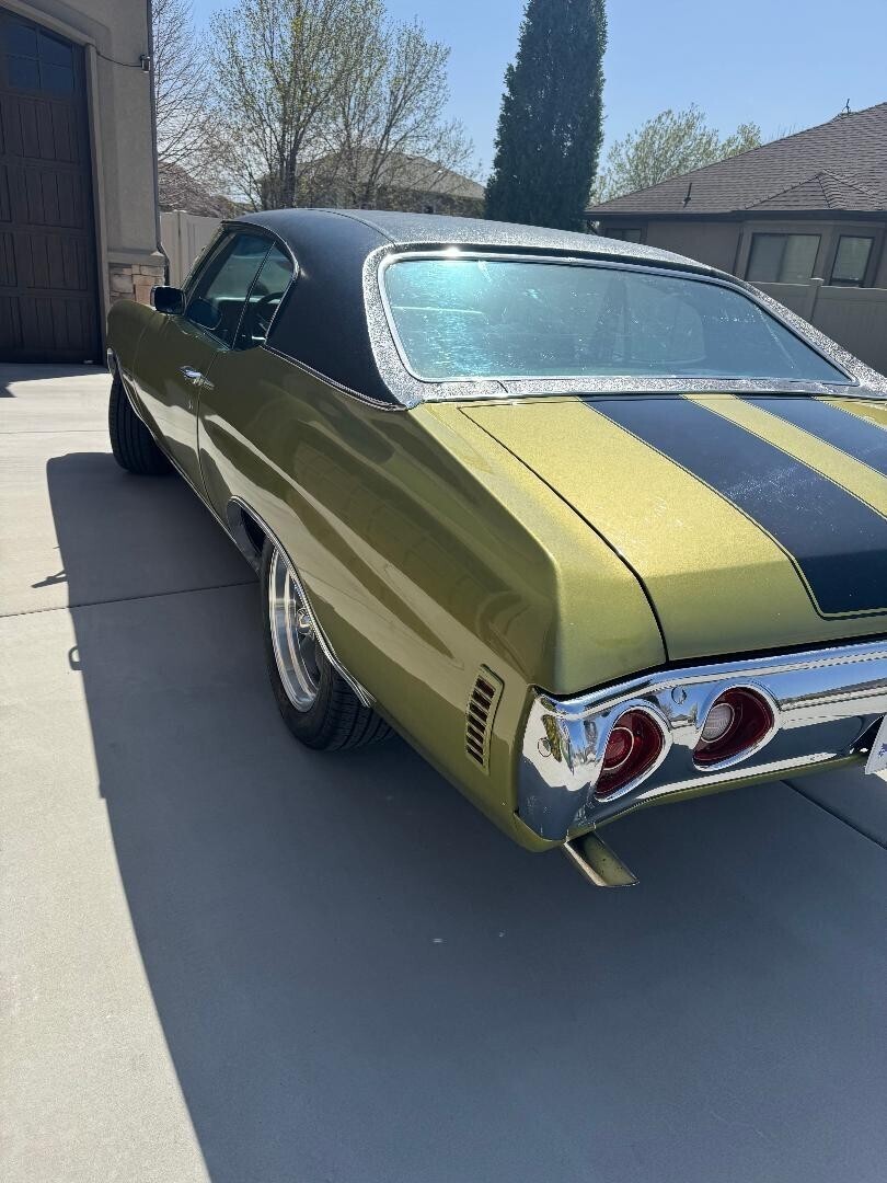 The product is a 1972 Chevy Chevelle for sale, featuring a classic green color with wide black strips and vinal roof, the original Chevelle Malibu model. This American automobile is modified / original Chevrolet vehicle, manufactured in the United States. With its vintage appeal it captures the essence of classic automobiles and Chevrolet history, making it a desirable collectible for car enthusiasts and collectors alike.102,209 miles, 350 V8 with 4 barrel carburetor up graded from stock 2 barrel in 2021 along with new distributor. Functioning AC and heater. All gages working properly except dashboard clock. Radio is a digital upgrade, speakers in front foot well and back window. Doors are upgraded with electric locks security alarm& 2 fobs. Seatbelts in the front seat are upgraded to shoulder/lap belts (I have the original lap belts but car came missing the shoulder straps and ceiling retainers). Car was painted in 2020. Head linnet material is in great shape. Door panels are in good shape. Weatherteck floor mats. Tries and rims are new in 2021 with less than 1000 miles on them. Full size stock spare with original jack in trunk. Clean title and no accidents according to beenverified.com vin #1D37H2R540031.