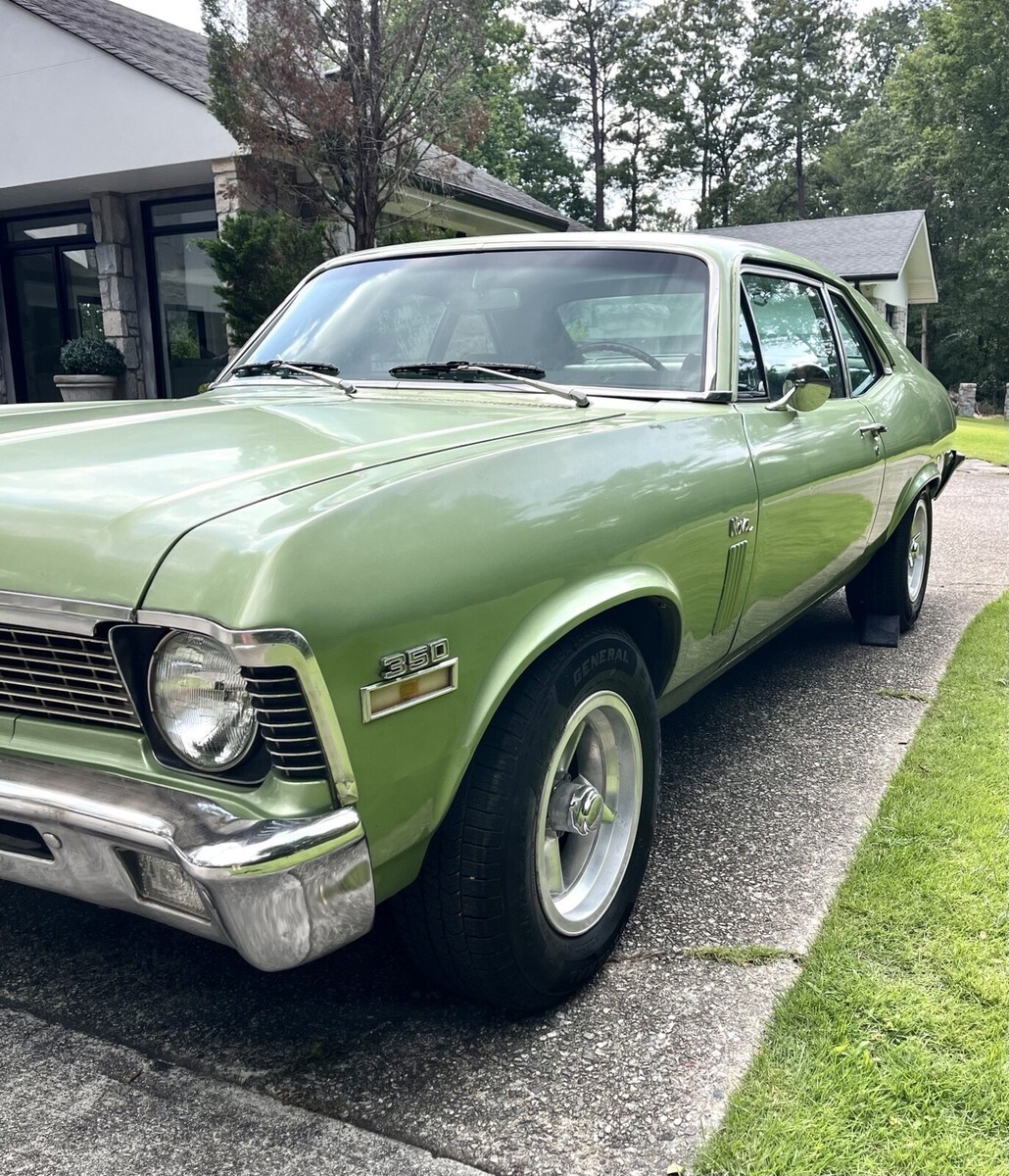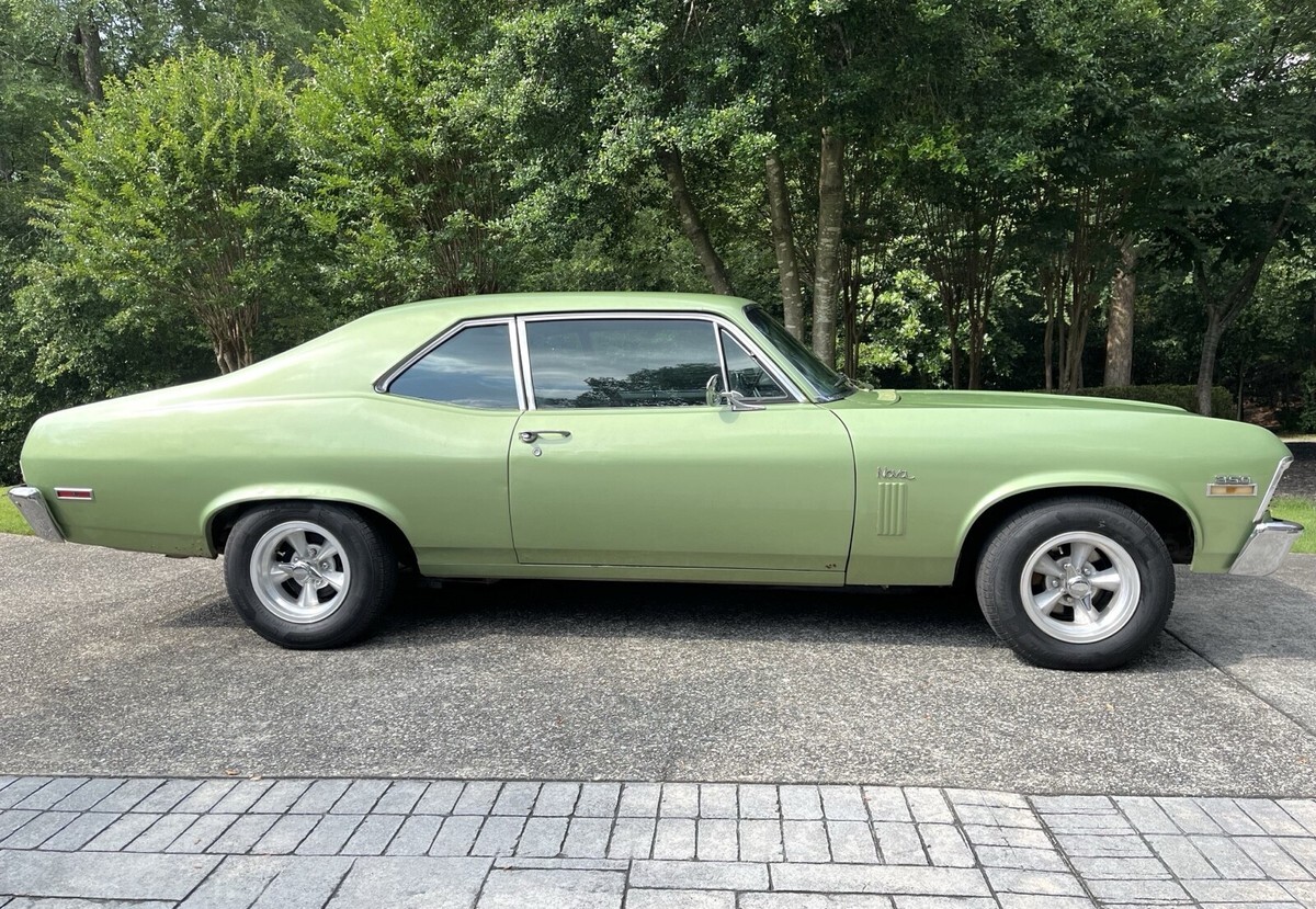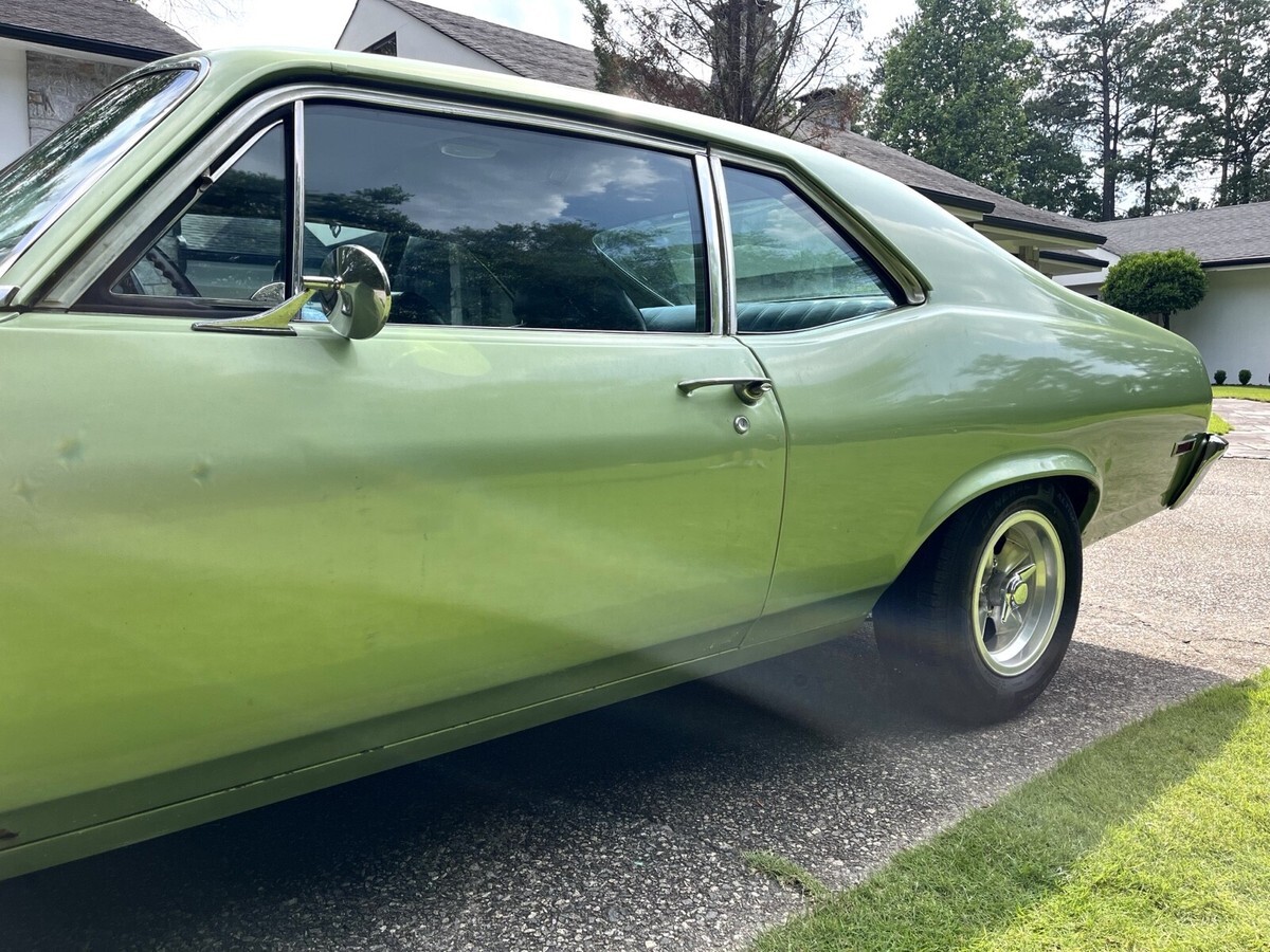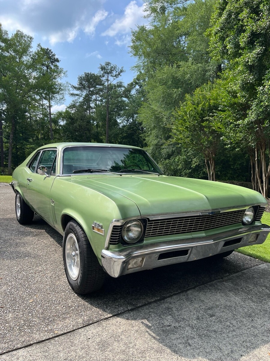 1970 Chevrolet Nova 2 door coupe. Factory V8 car! Now has a 400 ci small block with a streetable cam. Factory color green mist paint, air conditioning, power steering, bench seat, power brakes, front converted to disc. New tires, master cylinder, brake booster, rebuilt carburetor, wheel cylinders, brake hoses, shocks, front floor pans, carpet, headliner, rebuilt matching numbers automatic transmission turbo 350, aluminum radiator, belts, and hoses. Rust in door corners, lower quarter panels, and trunk edge. AC hasn't been converted to R134A so the belt is off of the compressor. Everything is there to make the conversion and recharge the system. Also included: NOS side moldings, new headlight brow moldings, new window felts, AC/Heater control face and chrome knobs, rear door panels, Super Sport grille, and misc stainless trim pieces. Clean Georgia title. Vehicle Details All mechanical work has been done to make this car reliable. This is not a show car but has lots of potential once body repairs have been made. |