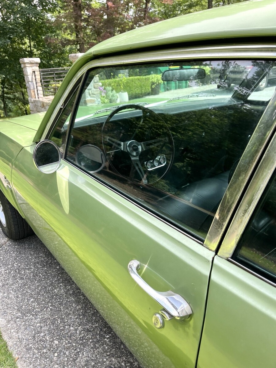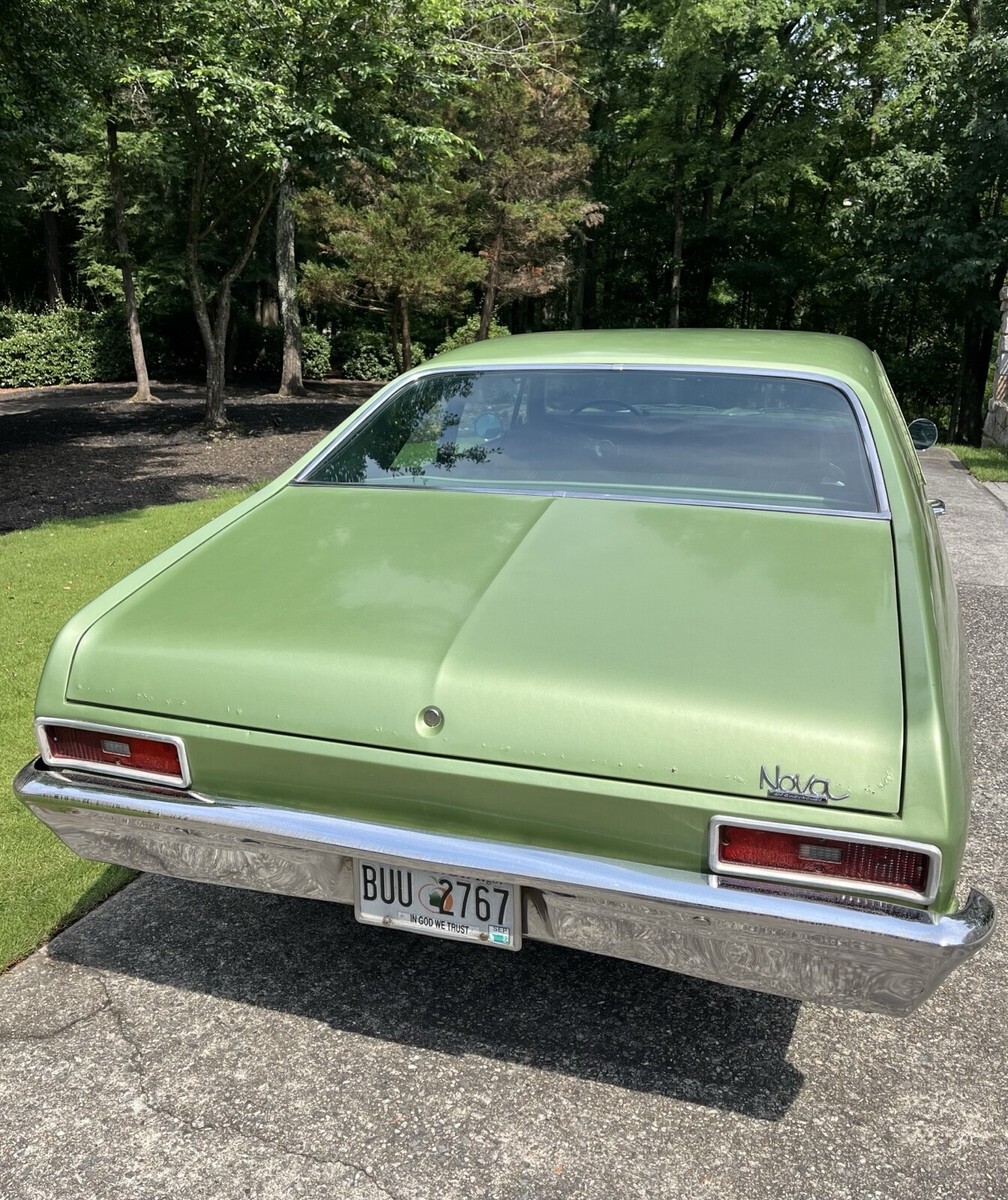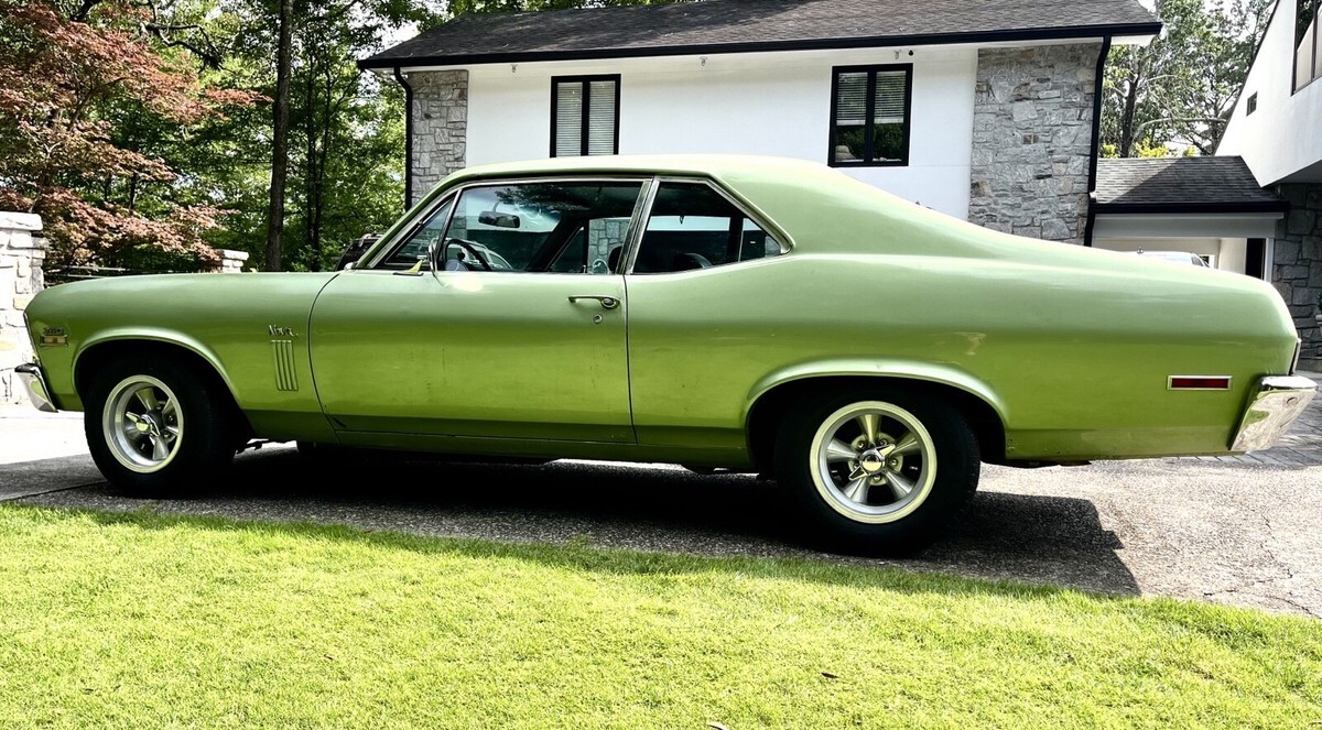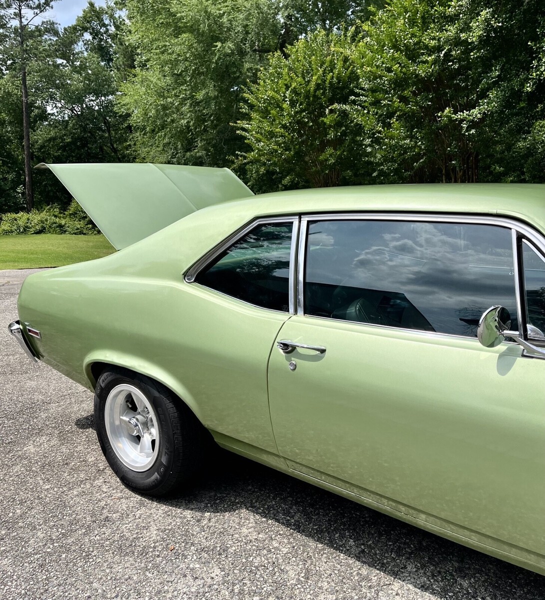 1970 Chevrolet Nova 2 door coupe. Factory V8 car! Now has a 400 ci small block with a streetable cam. Factory color green mist paint, air conditioning, power steering, bench seat, power brakes, front converted to disc. New tires, master cylinder, brake booster, rebuilt carburetor, wheel cylinders, brake hoses, shocks, front floor pans, carpet, headliner, rebuilt matching numbers automatic transmission turbo 350, aluminum radiator, belts, and hoses. Rust in door corners, lower quarter panels, and trunk edge. AC hasn't been converted to R134A so the belt is off of the compressor. Everything is there to make the conversion and recharge the system. Also included: NOS side moldings, new headlight brow moldings, new window felts, AC/Heater control face and chrome knobs, rear door panels, Super Sport grille, and misc stainless trim pieces. Clean Georgia title. Vehicle Details All mechanical work has been done to make this car reliable. This is not a show car but has lots of potential once body repairs have been made. |