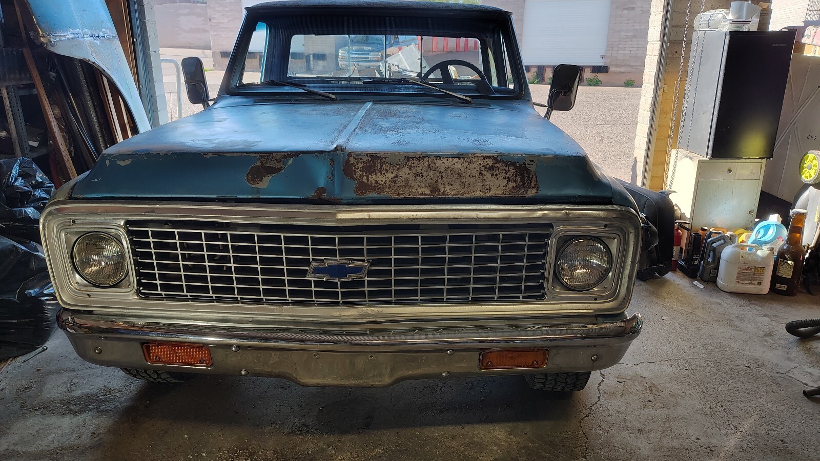 The 1972 Chevrolet C20/is a classic project vehicle that has been owned by the current owner for 3 years. This blue-colored truck is drivable but is not regularly driven, making it a perfect candidate for a restoration project. With only 17,809 miles on the odometer, (rolled over numbers). This vehicle has a clean title and is sure to be a great addition to any collection of vintage Chevy trucks. Vehicle Details Chevrolet C20 Camper Special. Not a K. 8 ft bed 3/4 ton. 400 big block engine with the automatic Turbo Hydra-matic 400. PS, PB, A/C cab (not working). Tires are in decent shape. ✔️ check out the Service parts ID decal located in the Glove box. All original and matching numbers. The drive train and chassis are in perfect condition . It's a 3/4 ton and ready for a camper shell or something else you prefer to do with it . I have done a lot to this truck but it still needs more TLC. Remember, this is a unfinished project. 1.-New Electronic ignition distributor. 2.-New spark plug wires. 3.-New spark plugs. 4.-New Fuel pump. 5.-New water pump. 6.-New Fuel tank sending unit. (it works). 7.-New door panels arm rest. 8.-New doors weather stripping. Including restoration of the vent windows. 9.-New doors key locks. 10.-New Fuses 11.-New grill insert. 12.-New grill Chevrolet bow tie emblem. 13.-New license plate and registration. 14.-New re upholstered bench seat. 15.-New battery. 16.-New alternator. 17.-Driver's side rocker was just replaced with new metal. Passenger side is next. I just got the parts. 18.-Chrome front bumper was replaced with an OEM piece. Arizona title under my name. . I'm still working on some repairs. The factory back sliding window is missing a glass piece. More and better pictures will be available upon request or as I make progress. Short video too. |