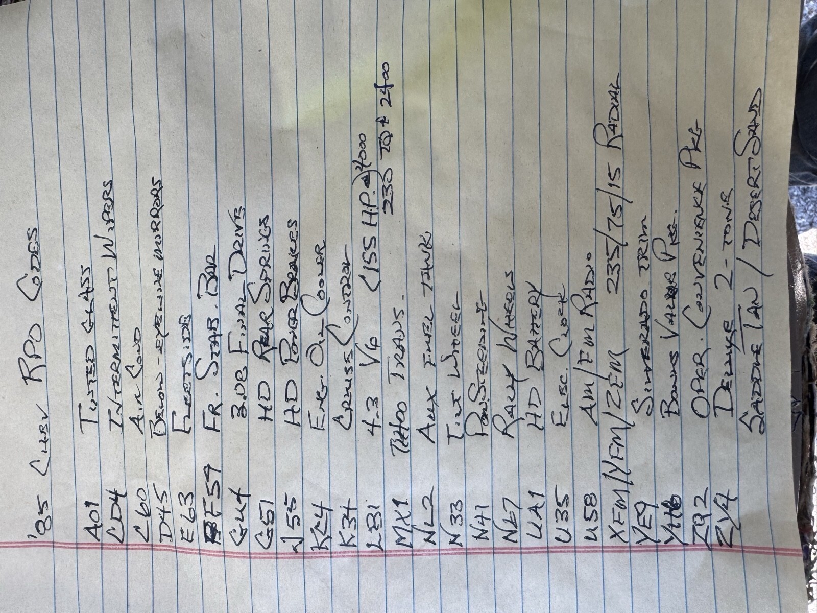 This 1985 Chevrolet C10 is an original. The owner has had it for 5+ years. The vehicle is drivable and is used as a daily driver. Vehicle Details Up for your consideration is a 1985 Chevrolet C10 long bed with Silverado package. Owned since 2007. 132,000 original miles. Has the 4.3 V6 ( first year) combined with heavier TH400 auto transmission. Kind of an odd combination but I believe it is because the vehicle was ordered with the Heavy-duty Suspension package. It also has a carrier-bearing two-piece driveshaft and stabilizer bars that were part of this package. It has a Curt receiver hitch and a rear bumper from a Suburban. The bed interior is free from rust. It shows signs of having a topper previous to my ownership. Rust at cab corners and behind rear wheels. Underbody and chassis are clean. Has the original rally wheels, trim rings and center caps, along with new Gorilla lug nuts. The clock works. Drivers side window switch needs replacement or repair. Catalytic has been removed and a glass pack installed. Certain other original parts have been removed and are boxed to go with the vehicle. The choke has been converted to manual. Starts easily and runs good. Has plenty of power for highway cruising. Also would make a good candidate for a V8 swap. The seat cover underneath are original and were good except for a wear spot on the drivers side, so I installed a seat cover years ago that is starting to show some age. The air conditioner worked when I purchased the vehicle, however it constantly cycled. I unplugged the compressor and never tried to repair it. It is all complete. The brakes were surging, and I purchased new rotors, pads, and Timken wheel bearings and intended to make that repair. Then the heater core started leaking and I purchased a replacement core. However, didn’t immediately have time to work on the vehicle and needed the heater and had others to drive so this unit got sidelined. The heater hose is currently clamped shut so no leaking. Would make a great starting point for a full restoration or tinker and drive as is. I love it and it was a favorite for many years. |