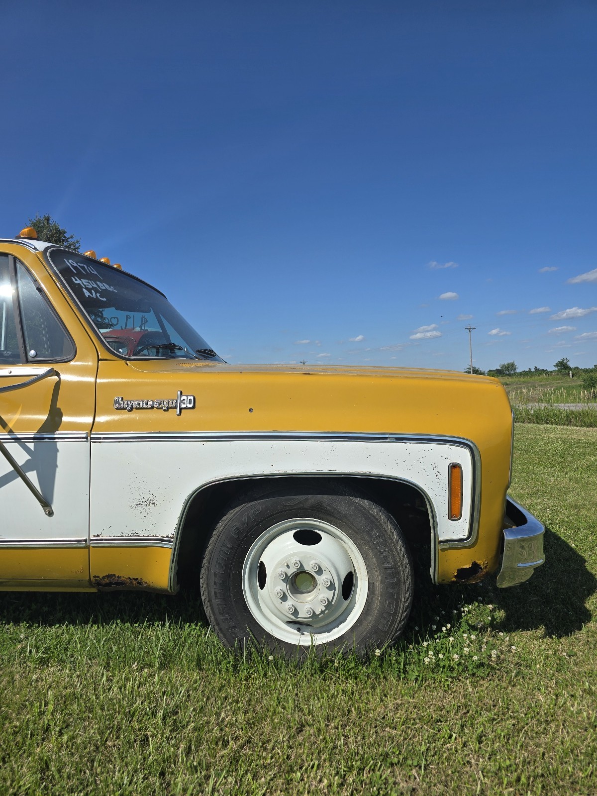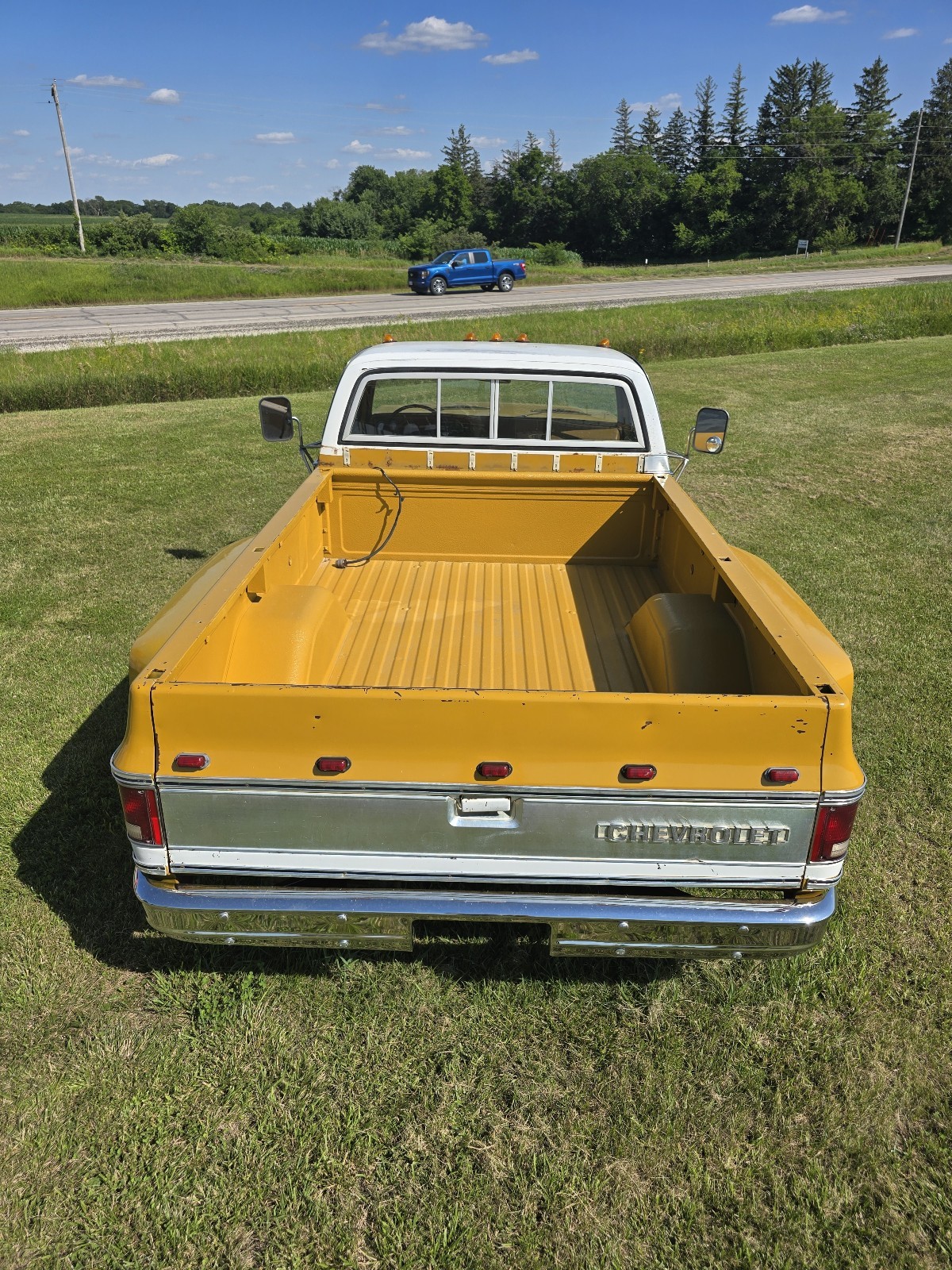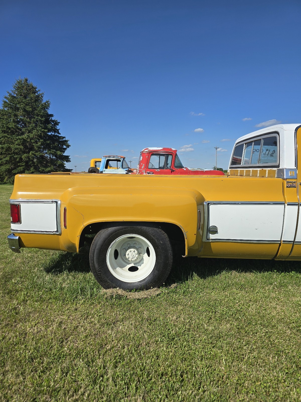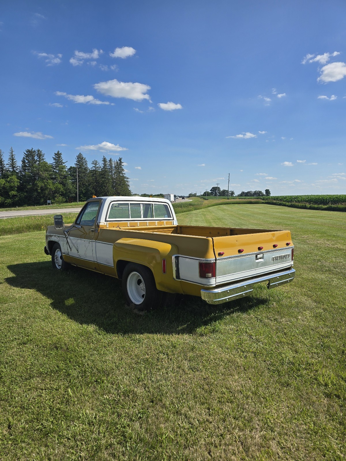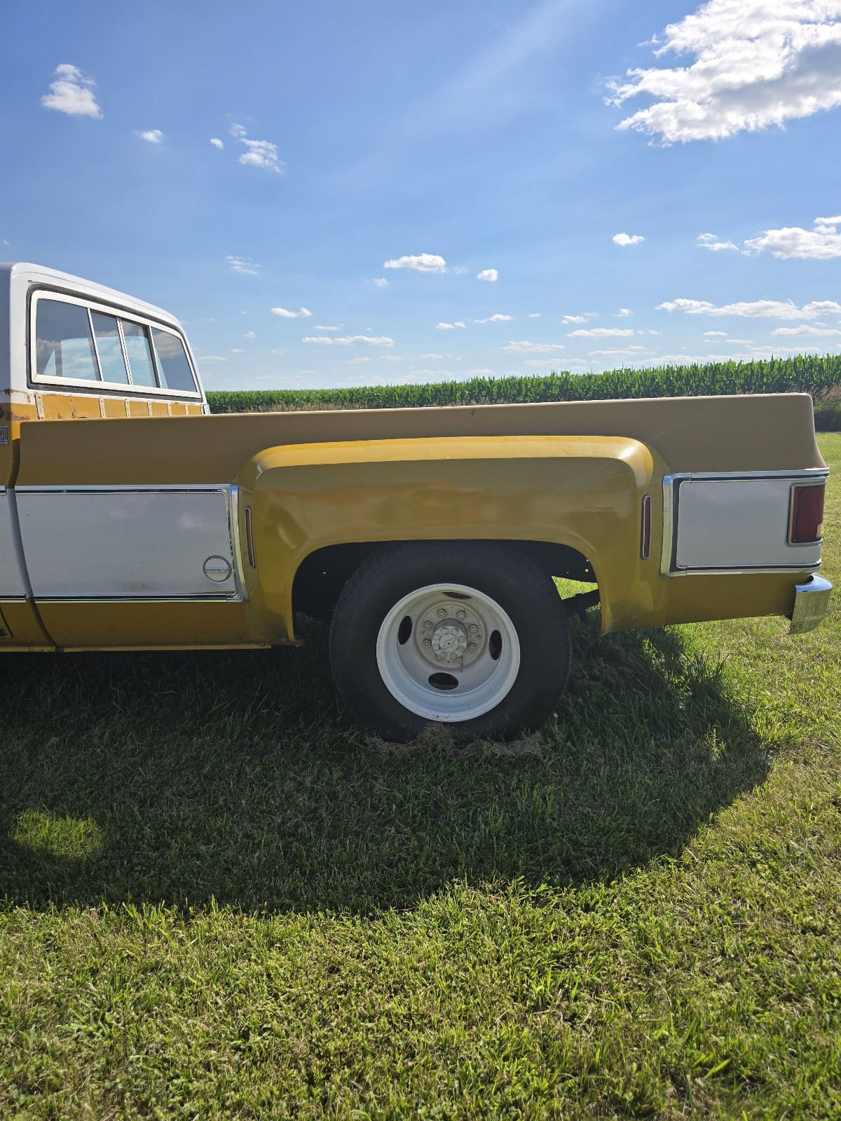 The 1974 Chevrolet C-10 is a vibrant yellow vehicle with a clean title and only 131,881 miles on the odometer. This modified truck, which has been in the owner's possession for 2 years, runs smoothly and is perfect for weekend drives. With its retro appeal and reliable performance, this Chevy C-10 is sure to provide hours of enjoyment for its new owner. Vehicle Details 1974 C30 Dually 454 big block with factory AC Turbo 400 transmission Runs and drives Lowered 6 inches in the front and 8 inches in the back with a bolt on notch kit All new ball joints, inner and outer tie rod ends, tie rod sleeves, new spindles and new wheel bearings, new rear bumper, new nitro drop shocks Very clean southern truck Clean Title |