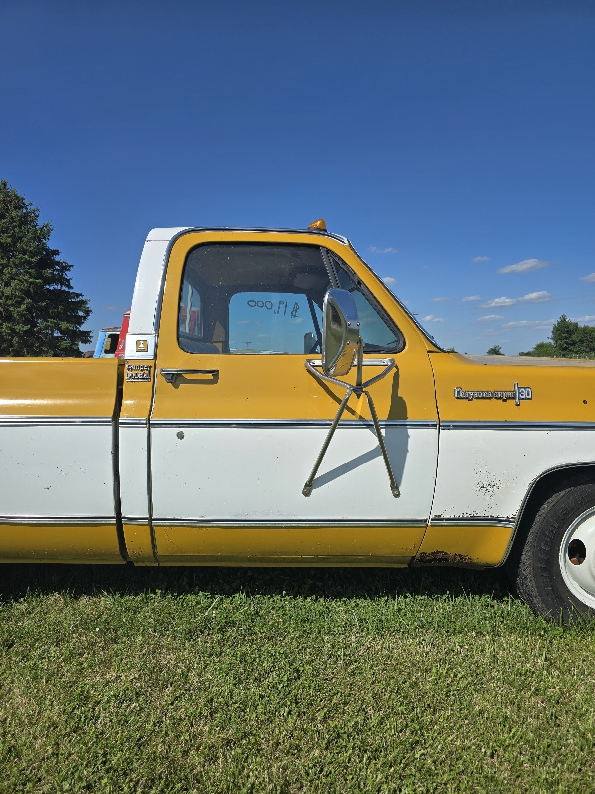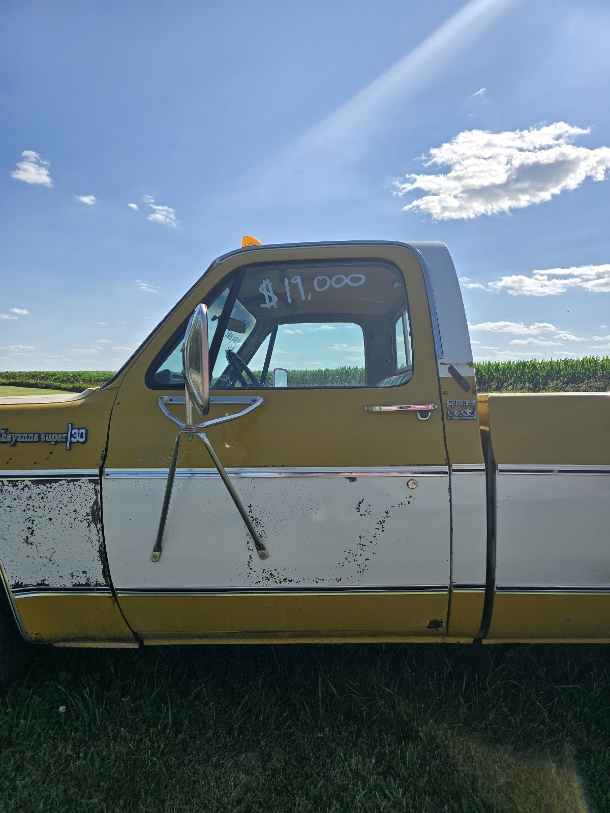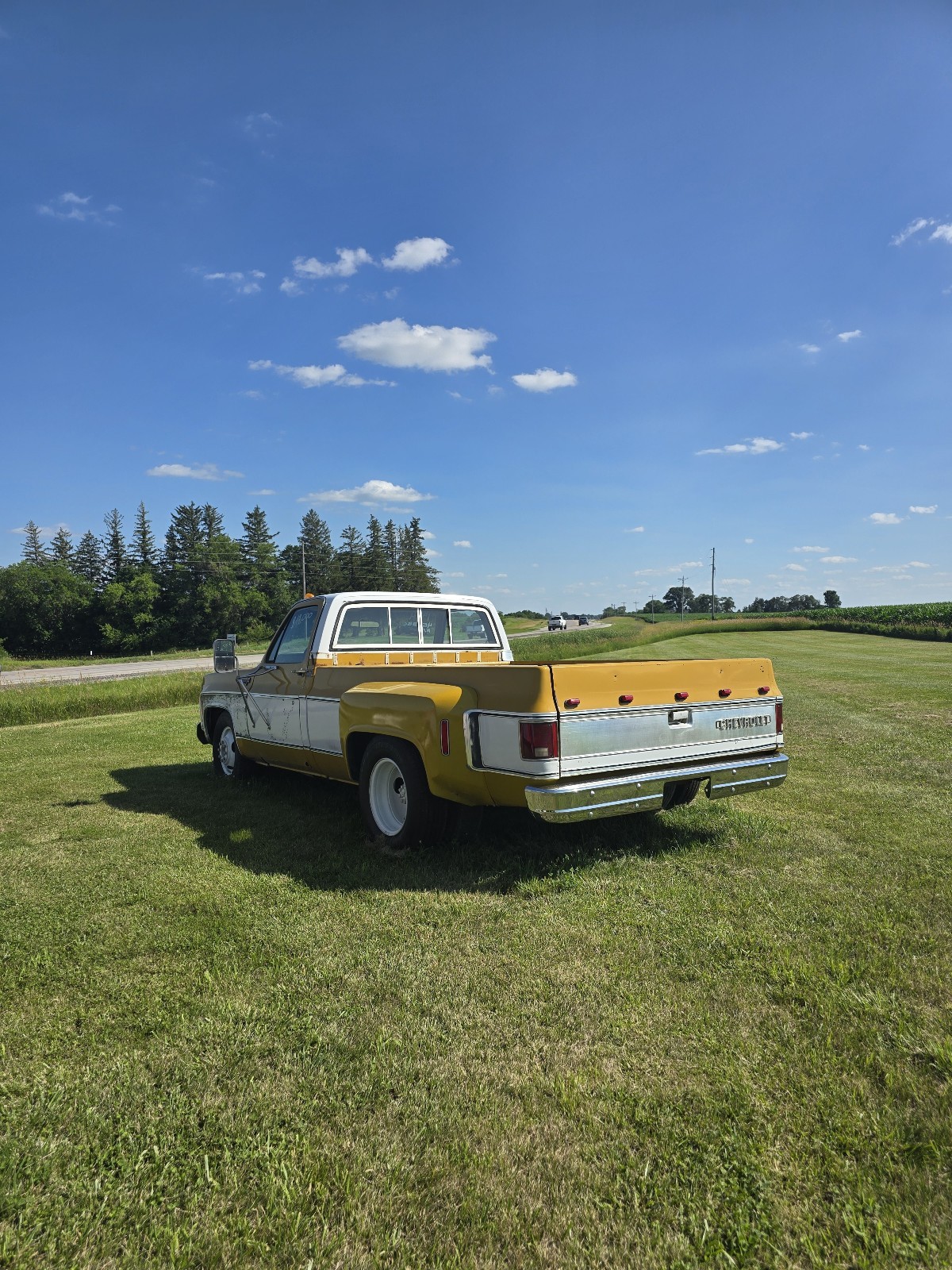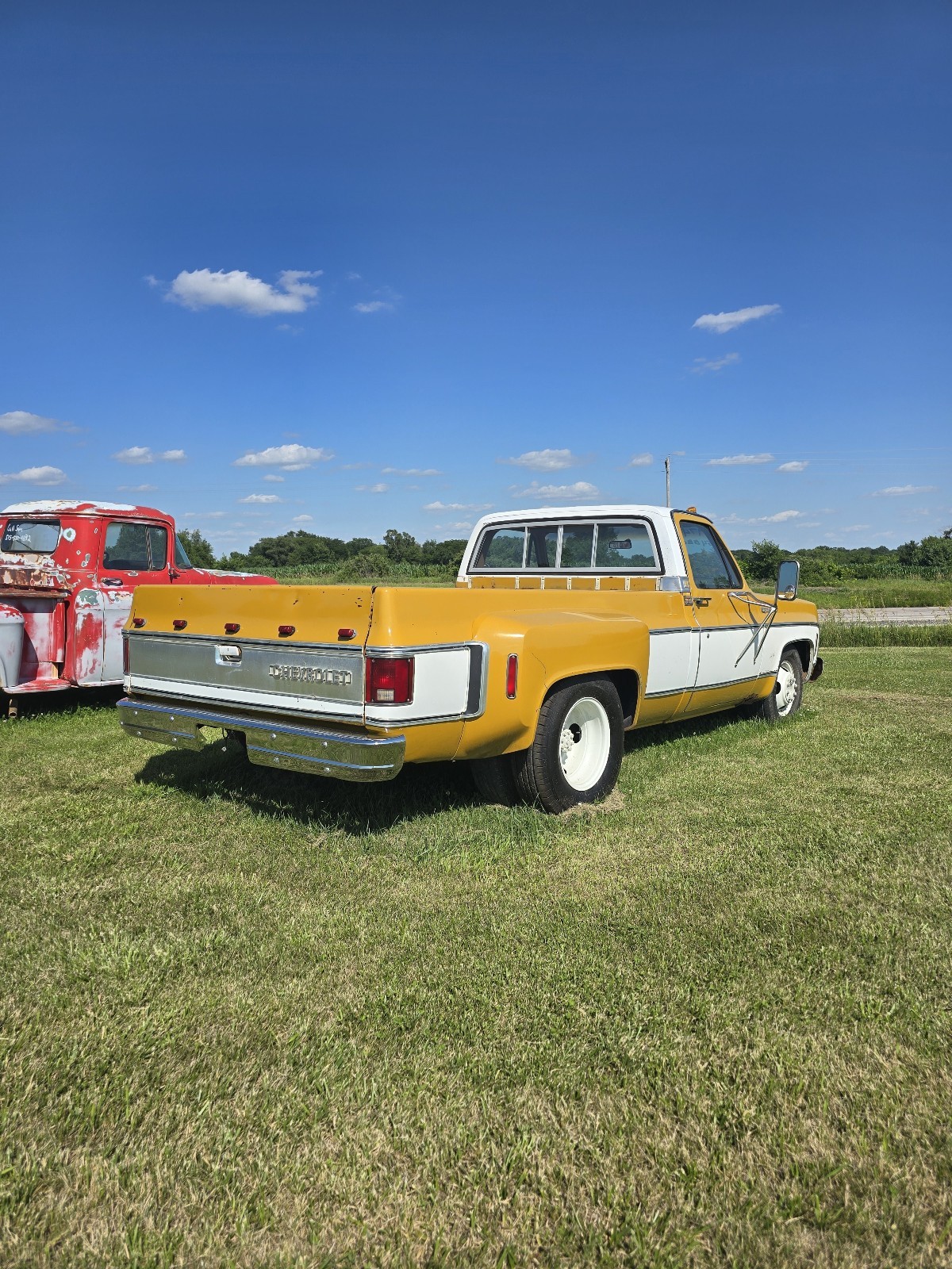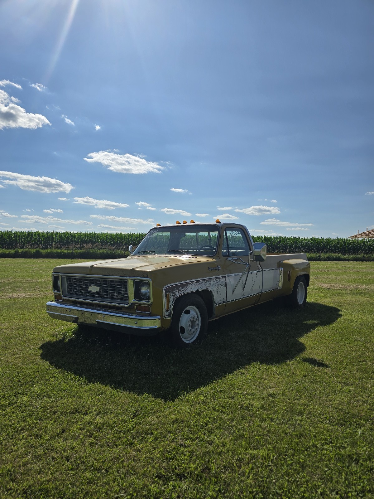 The 1974 Chevrolet C-10 is a vibrant yellow vehicle with a clean title and only 131,881 miles on the odometer. This modified truck, which has been in the owner's possession for 2 years, runs smoothly and is perfect for weekend drives. With its retro appeal and reliable performance, this Chevy C-10 is sure to provide hours of enjoyment for its new owner. Vehicle Details 1974 C30 Dually 454 big block with factory AC Turbo 400 transmission Runs and drives Lowered 6 inches in the front and 8 inches in the back with a bolt on notch kit All new ball joints, inner and outer tie rod ends, tie rod sleeves, new spindles and new wheel bearings, new rear bumper, new nitro drop shocks Very clean southern truck Clean Title |