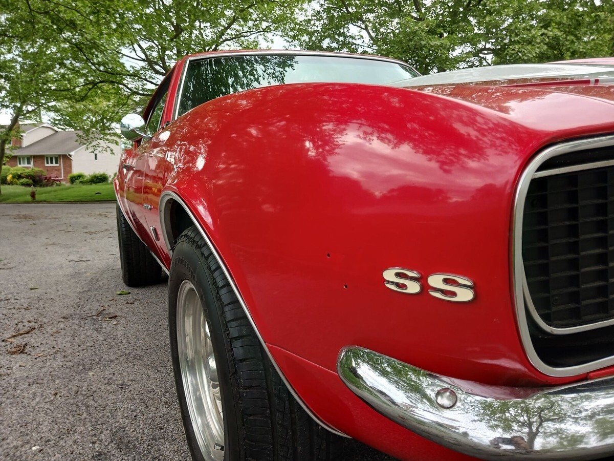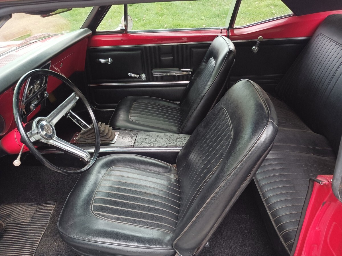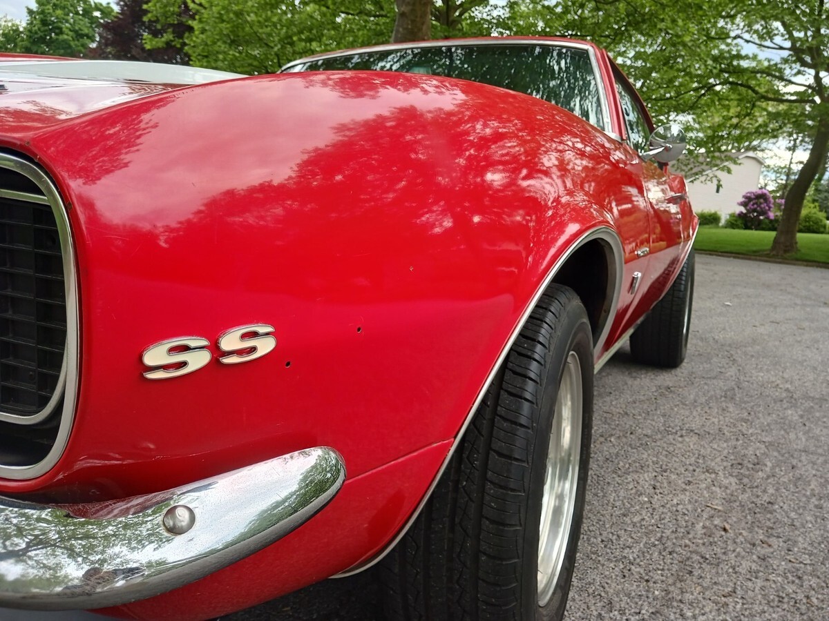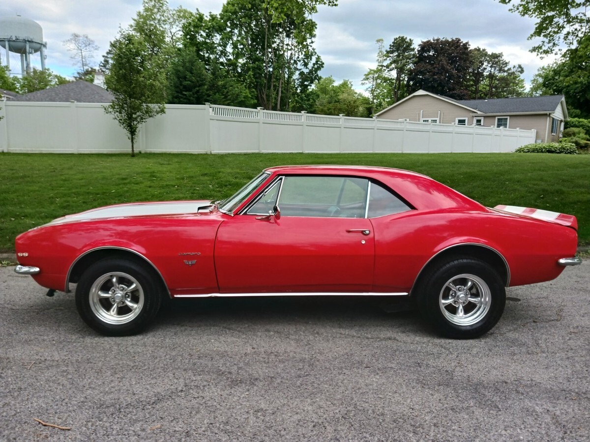NICE 1967 CAMARO RS/SS TRIBUTE (REAL "4P" SS 350, RALLY SPORT TRIBUTE) 350 V8 AUTOMATIC IN BOLERO RED THAT IS A GOOD DRIVER, OLDER RESTORED AND READY TO DRIVE ANYWHERE! Please LEAVE A PHONE NUMBER when messaging/bidding so I can call you directly and don't have to chase you after auction ends. AUCTION MAY BE STOPPED AT ANY TIME DUE TO SERIOUS OFFER. Full Youtube walkaround, startup and driving video here: https://www.youtube.com/watch?v=T8XlBhobd-M OPTIONS: Power SteeringPower 4 WHEEL DISC Brakes350 V8 EngineTH350 Automatic TransmissionStandard Bucket Seat Interior w/ConsoleRally Sport PackageSS 350 PackageFront & Rear Spoilers15" American Racing Torque Thurst Wheels w/BF Goodrich Tires (NOT INCLUDED, available for extra $800)Z28 StripesDual Flowmaster ExhaustSteel Cowl Induction Hood Car has been collector owned and garaged year round. Previously body-on restored during the early 2000s according to previous owners and has been kept up in great shape since. Appears to be a real "4P" SS 350 according to the cowl tag, but throughout the years has had some parts replaced and mismatched. Has been retagged by the state so original vin removed and replaced at one time in the past. Clean and clear title. Body and paint are FAIRLY NICE. Nice and straight with older single stage paint. Minor blemishes like chips, scratches, touch-ups as you'd expect from being over 20 years old but looks good and gets thumbs up anywhere including local car shows and cruise nights. No real rust to speak of other than one spot about the size of a dime or so by rear driver's side wheel lip. Some bondo cracking by rear passenger quarter as you can see in the video. Car looks to have had the rear quarter panels replaced with new skins. A few small holes from previously installed wrong emblems need to be filled in on fenders. Interior looks GREAT. Nice seats, newer door panels and armrests, good headliner and older carpet still in good shape. No real eye sores anywhere. Dash cluster appears to have been replaced with different vintage gauges than stock. Under the hood the 350 V8 roars at the turn of the key and performs great. No noises, great compression and a great performer. Upgraded aluminum intake, carburetor, HEI distributor, headers and dual Flowmaster exhaust along with a lumpy camshaft you can hear in the video at startup. Tranny shifts great, and solid rear end. STARTS RIGHT UP, IDLES GREAT AND YOU CAN GET IN AND DRIVE IT TODAY! Underside is pretty original from the looks of it. Frame rails seem in good shape, some welding marks on front ones. Floors appear to be pretty solid as you can see from the pics, NO undercoating or hiding anything. trunk is also pretty solid, not perfect with a few pinholes if you look real close, but solid overall.NOT PERFECT: hidden headlights have no motors so open and close manually, backup lights not connected, horn not working and missing retainer for cap. There may be a couple of other minor things I don't remember right now. PLEASE UNDERSTAND CAR IS NOWHERE NEAR PERFECT and will require going over, tlc, mild restoration depending on what you want to do with it. Overall a NICE DRIVER QUALITY 67 Camaro REAL SS 350 made into a RALLY SPORT you can get in and drive. NOT perfect but FAIRLY NICE driver.