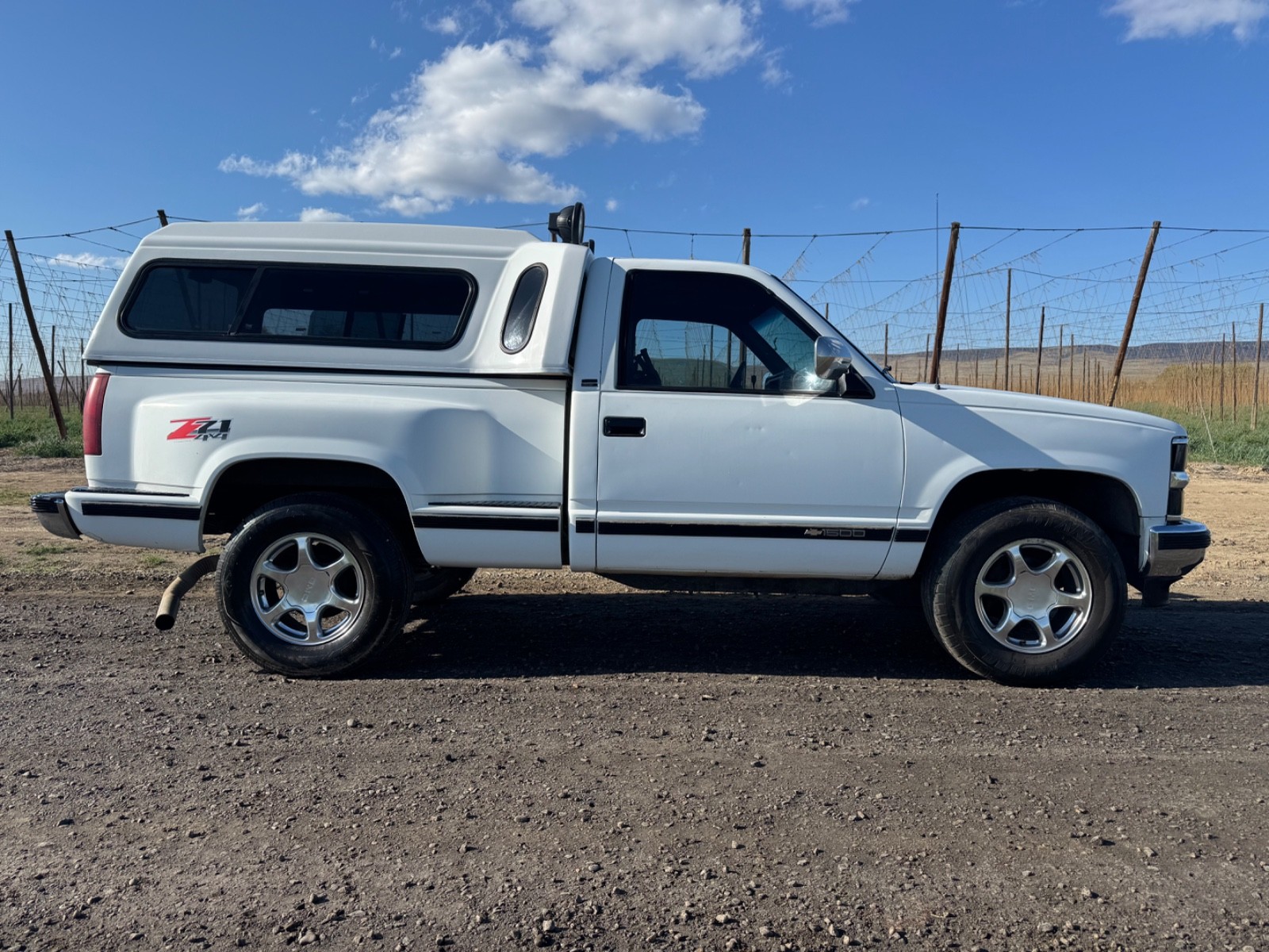 This is the modern classic solid and completeRunning and driving last of the square body platform in its most driver friendly configuration this truck can be the best truck you ever own !5.7 reliabilityEasy mechanicalsWide array of parts available for modification and customization Chevrolet Silverado 1500 step side 4x4Burgundy lay z boy seats5.7 liter 350V8 motor runs powerfully and is cleanNew windshield clean glassStep side body all original no signs of body work ever !Tow packageVery unique canopy that comes with the truckClean wheelsRadio worksclimate controls need workPlastic bed liner in bed of truckBoth power windows work Vehicle is being sold as is no warranty please ask all questions before bidding