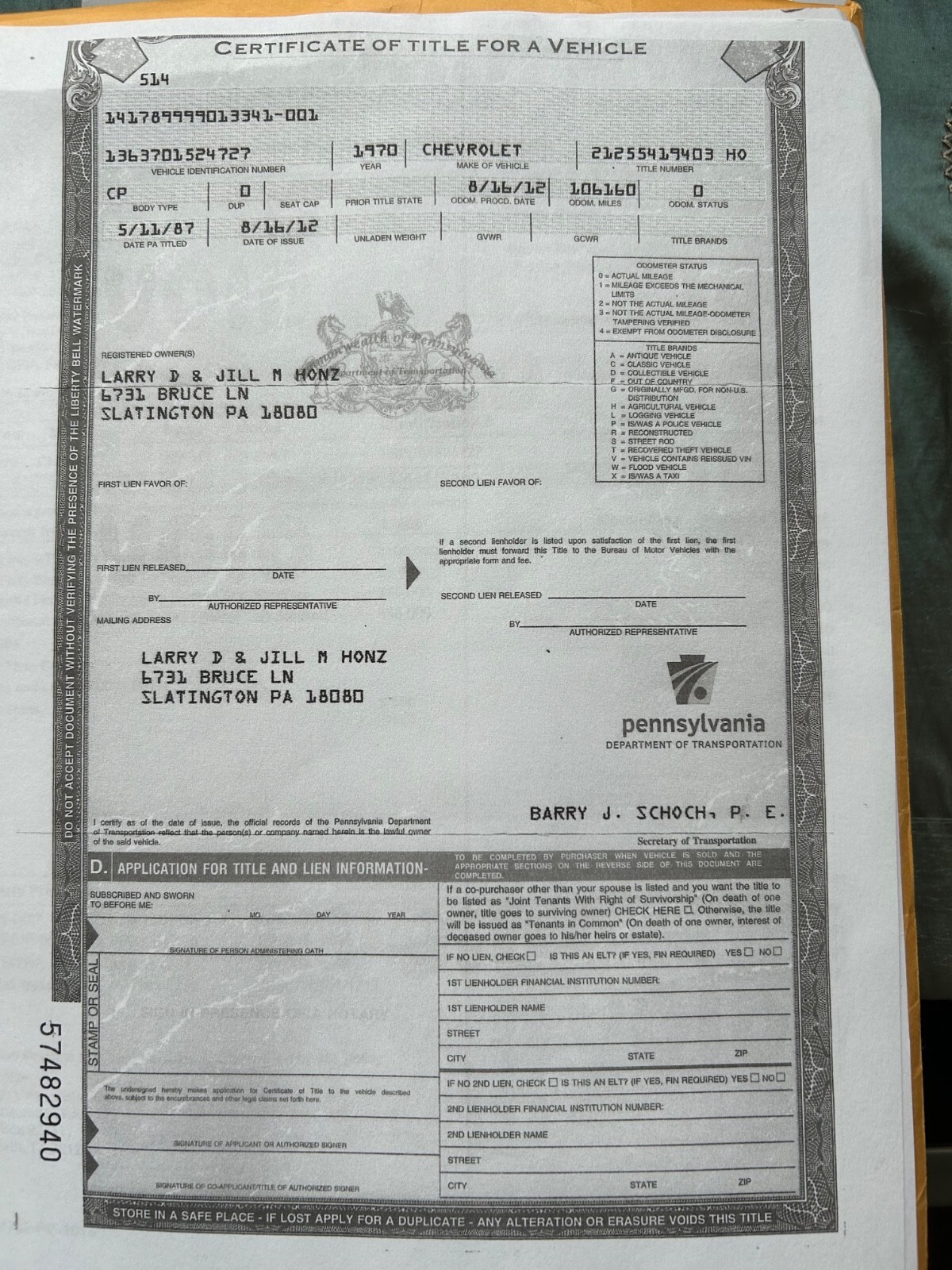 1970 Chevelle SS 396 Matching Numbers Car, Canada Built I Have Documentation from GM of Canada. The previous owner painted it red and also sprayed the interior with a black vinyl paint. The car will need restoration. Besides, the motor has been professionally rebuilt and has about 200 miles on it. I can provide the Dyno video of the motor, but I could not attach it to the ad because it was too long. The sale of the car also comes with all the aftermarket body panels that include the hood, fenders, doors, trunk lid, quarter panels, bumpers, and bumper insert that has the SS emblem. If you have any questions you can Email me at Larry.hontz@gmail.com