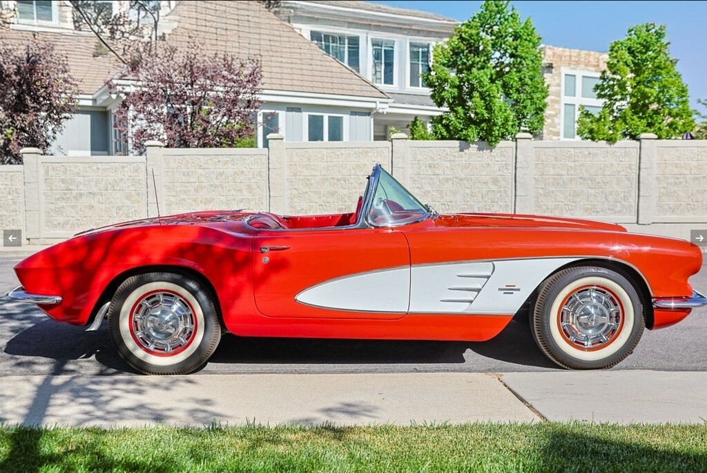 1961 Chevrolet Corvette Convertible For Sale in Orem, UT 84097 This Corvette is powered by a 350ci V8 engine paired with a 4-speed manual transmission. The odometer reads 60,439 miles and is shown with a Roman Red exterior with Ermine White coves and a matching red interior. This vehicle has been fully restored and has been garage-kept and well-maintained since. Features Full Restoration Dual Tops (Soft & Hard) Vinyl Bucket Seats Upgraded Stereo System w/ Bluetooth Chrome Accents Throughout Electronic Power Steering Dual Exhaust System 1961 Chevrolet Corvette Convertible For Sale in Orem, UT 84097 This Corvette is powered by a 350ci V8 engine paired with a 4-speed manual transmission. The odometer reads 60,439 miles and is shown with a Roman Red exterior with Ermine White coves and a matching red interior. This vehicle has been fully restored and has been garage-kept and well-maintained since. Features Full Restoration Dual Tops (Soft & Hard) Vinyl Bucket Seats Upgraded Stereo System w/ Bluetooth Chrome Accents Throughout Electronic Power Steering Dual Exhaust System 15” Red Steel Wheels w/ Chrome Covers Firestone Whitewall Tires Owner’s Notes “For sale is a beautifully restored 1961 Chevrolet Corvette Convertible, finished in eye-catching Roman Red with Ermine White coves and a matching red interior. This C1 classic blends iconic styling with enhanced drivability, thanks to a strong Chevrolet 350ci V8 engine, electronic power steering, and a smooth 4-speed manual transmission. It comes with both a color-matched Roman Red removable hardtop and a new white soft top, offering versatility and style for any season. The restoration includes thoughtful upgrades like a discreetly installed Bluetooth module behind the original Wonderbar AM radio, allowing modern audio convenience while maintaining a stock appearance. Inside, you'll find red vinyl bucket seats, a full gauge cluster with a 160-mph speedometer and 7,000-rpm tachometer, and original chrome trim throughout. It rides on 15-inch red steel wheels with chrome covers and classic Firestone whitewalls. The odometer reads 60,439 miles (title marked mileage exempt), and it's currently registered with a clear title in Utah. Recent updates include the replacement of the original engine with a reliable and powerful 350ci V8, along with a custom audio upgrade. The speedometer needle and Bluetooth module are currently scheduled for service—this will be completed prior to sale, or the buyer will receive a $1,500 credit if not done in time. Whether you're looking to cruise on the weekend or turn heads at shows, this Corvette delivers a perfect mix of vintage appeal and modern usability. Privately owned and garage-kept, it’s a true standout that’s ready for the road or the concours lawn.” For Assistance with Financing, Transportation, Or Inspections Call or Email Customer Support 402-502-8385 *Caveat Emptor* Please Remember to Inspect Vehicle Prior To Purchase! |