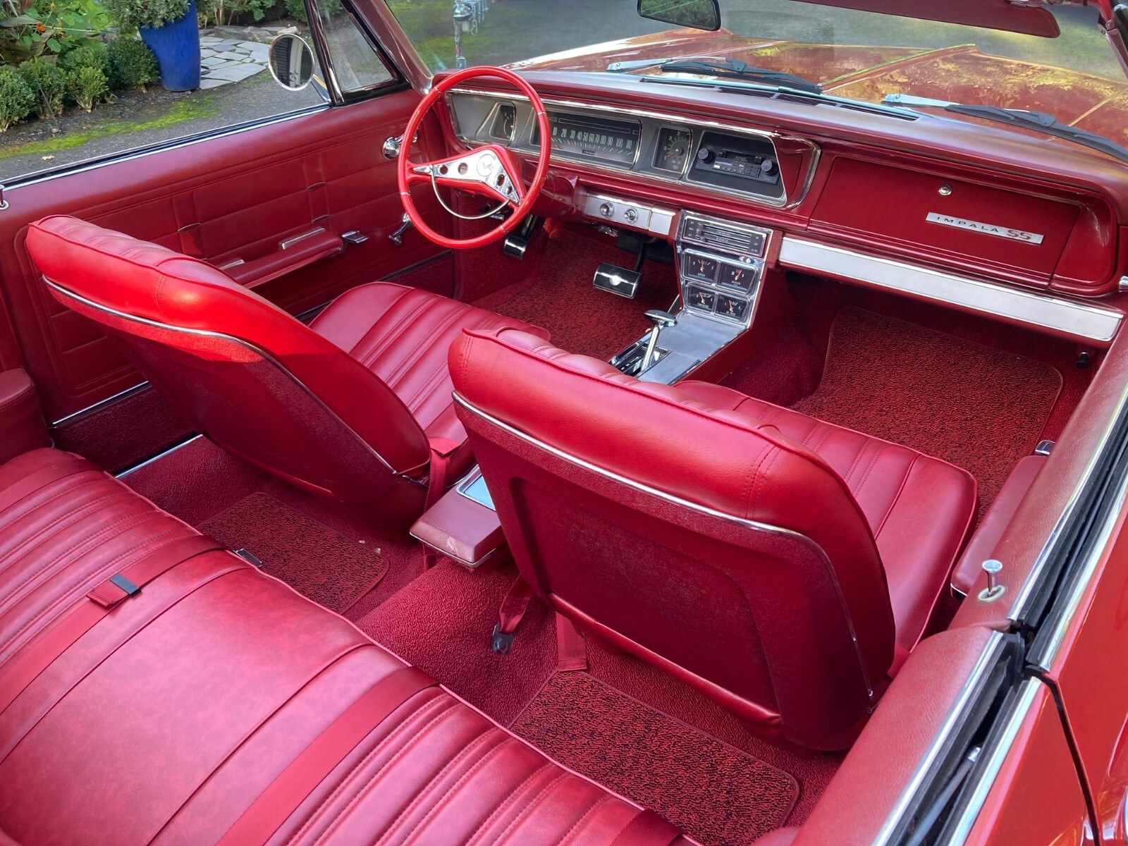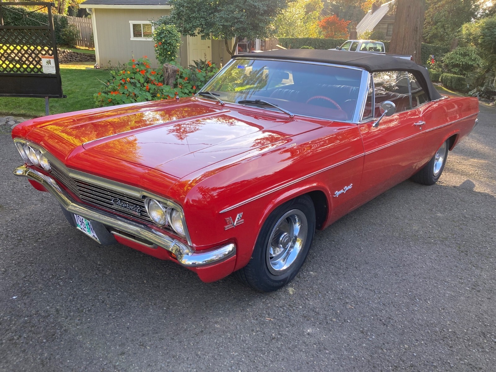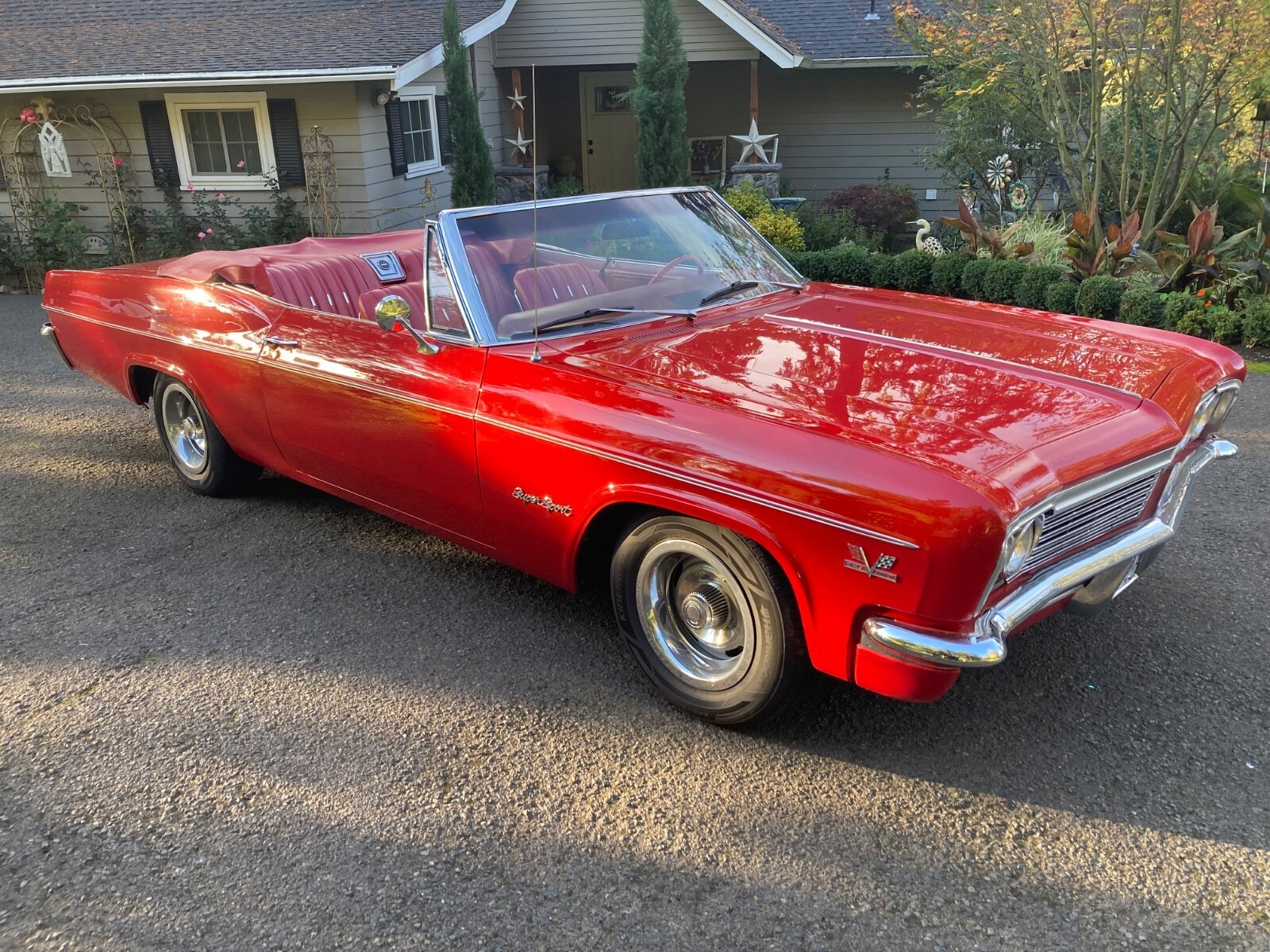 1966 CHEVROLET IMPALA SS427 CONVERTIBLE (An original factory SS V8 Car) built in Los Angeles) 427 Chevrolet V-8 Engine (1968 427/435hp) Holley 4 Barrel Carburetor High Flow Air Filter TH 400 Automatic Transmission Transmission Cooler Factory SS Console Shifter Factory SS Gauge Package 12 Bolt Posi with Summers Bros. Axles (Ontario, CA.) Deep Sump Oil Pan Polished Aluminum Valve Covers Polished Brass Radiator Top & Bottom Automatic Electric Cooling Fans Radiator Cap Thermostat Headers Dual Exhaust Polished Aluminum Overflow Tanks Billet Fuel Filter & Braided Fuel Lines Tank to Carb Chrome Alternator & Bracket Red Silicone Heater & Upper Radiator Hoses with Billet Connectors Drive Line Hoop Interstate Battery Battery Tender Included Bunce Car Cover Adjustable Coil Over Suspension Front & Rear Large Sway Bars Front & Rear 4 Wheel Disc Brakes (proportioning valve under driver's seat) Tilt/Telescopic Steering Wheel (1 year only option) 1959/60 Style Steering Wheel Passenger Side View Mirror with Chevy Logo (matches driver side) New Sun Visors New Sound Proofing & Carpet New Custom “Impala” Floor Mats (front & rear) New Black Stayfast Convertible Top with Glass Window (power top) New Red Convertible Top Boot 15” Chevrolet Rally Wheels, Trim Rings & Caps with new (2024) Hankook Kinergy 245/60/15 Tires Trunk is finished with metal trim painted to match the car and quick release fasteners. New factory polished fender trim has been installed. Rocker moldings are in hand and ready for install. Please let me know if I can answer any questions for you. It cannot be duplicated for the price.