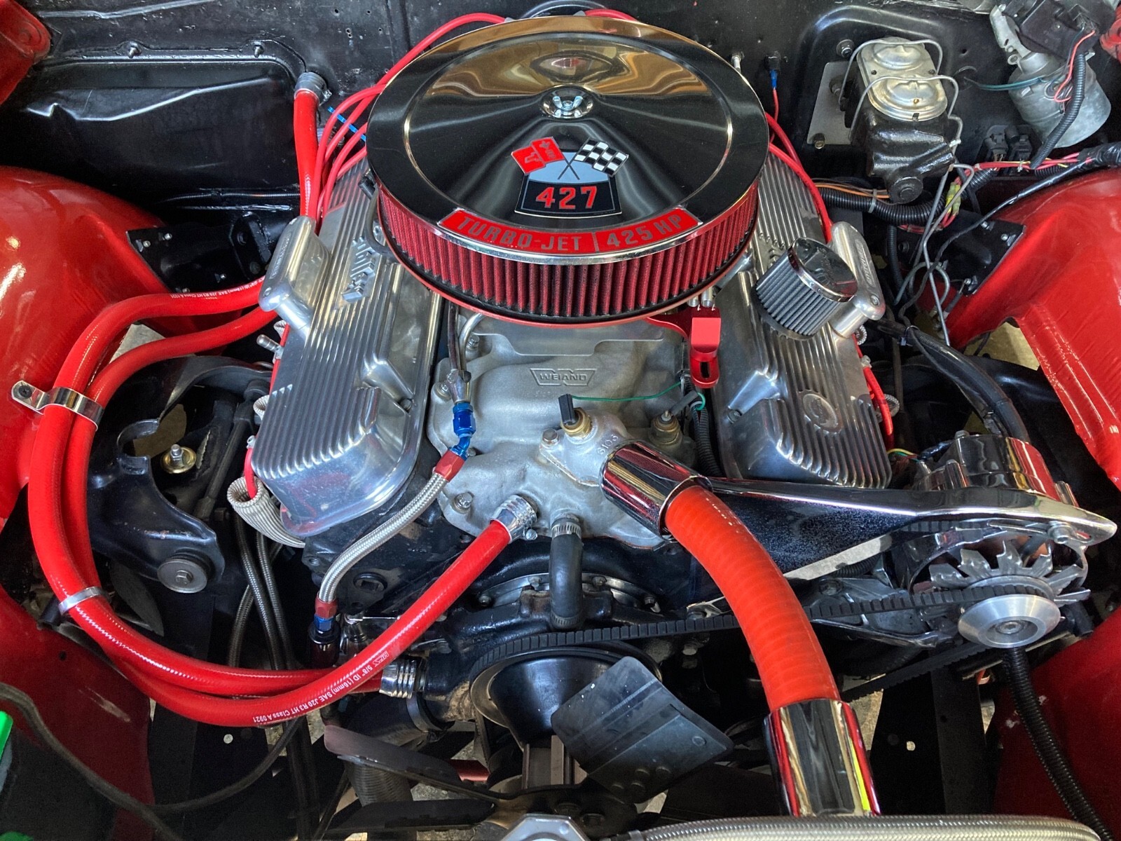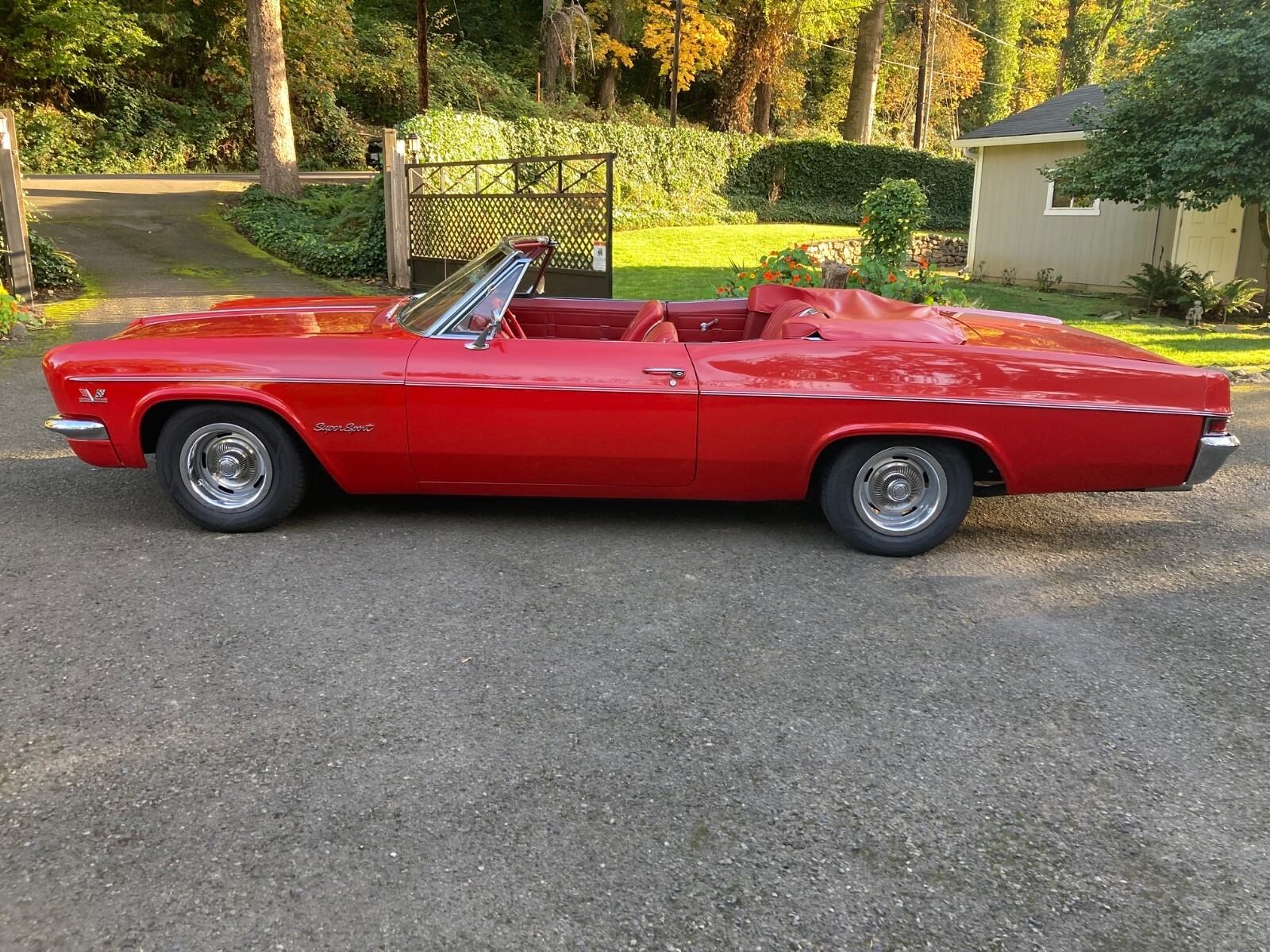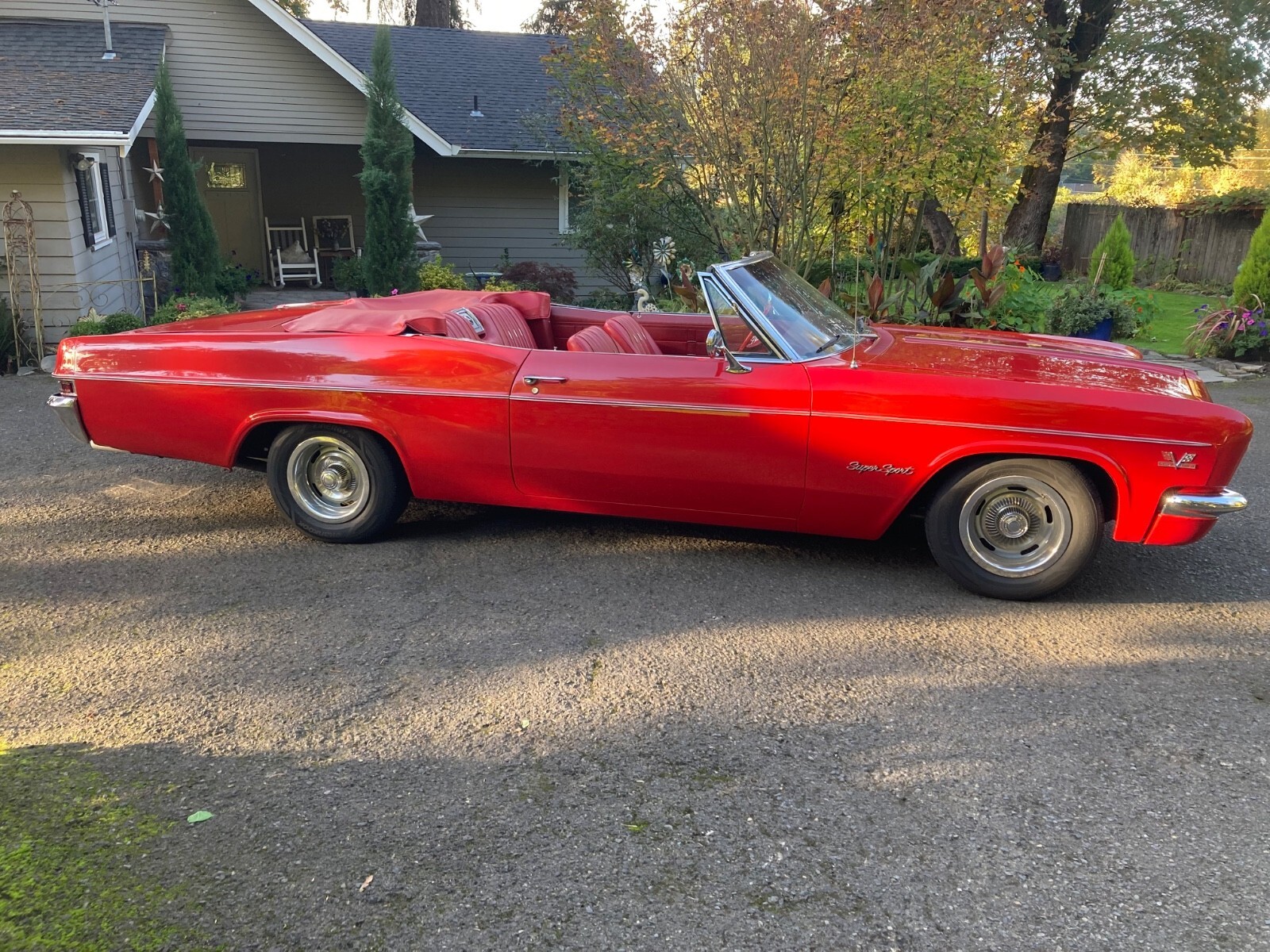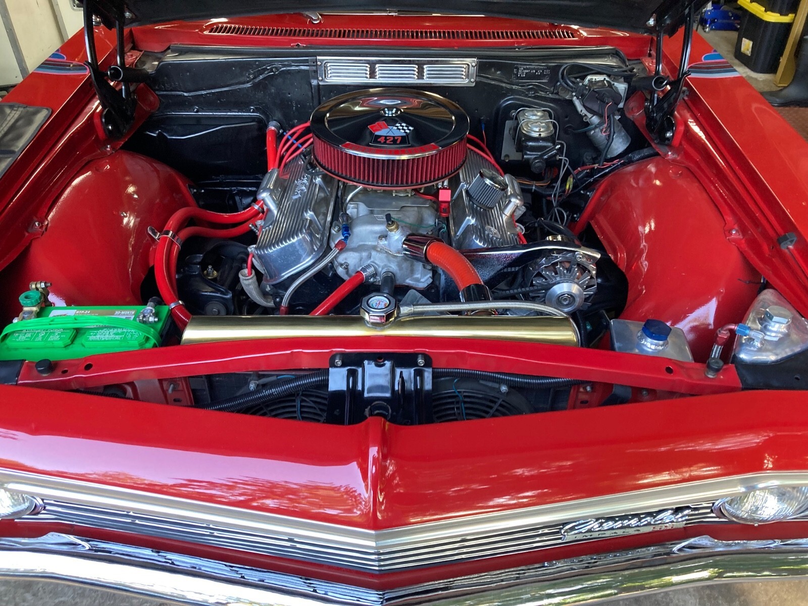 1966 CHEVROLET IMPALA SS427 CONVERTIBLE (An original factory SS V8 Car) built in Los Angeles) 427 Chevrolet V-8 Engine (1968 427/435hp) Holley 4 Barrel Carburetor High Flow Air Filter TH 400 Automatic Transmission Transmission Cooler Factory SS Console Shifter Factory SS Gauge Package 12 Bolt Posi with Summers Bros. Axles (Ontario, CA.) Deep Sump Oil Pan Polished Aluminum Valve Covers Polished Brass Radiator Top & Bottom Automatic Electric Cooling Fans Radiator Cap Thermostat Headers Dual Exhaust Polished Aluminum Overflow Tanks Billet Fuel Filter & Braided Fuel Lines Tank to Carb Chrome Alternator & Bracket Red Silicone Heater & Upper Radiator Hoses with Billet Connectors Drive Line Hoop Interstate Battery Battery Tender Included Bunce Car Cover Adjustable Coil Over Suspension Front & Rear Large Sway Bars Front & Rear 4 Wheel Disc Brakes (proportioning valve under driver's seat) Tilt/Telescopic Steering Wheel (1 year only option) 1959/60 Style Steering Wheel Passenger Side View Mirror with Chevy Logo (matches driver side) New Sun Visors New Sound Proofing & Carpet New Custom “Impala” Floor Mats (front & rear) New Black Stayfast Convertible Top with Glass Window (power top) New Red Convertible Top Boot 15” Chevrolet Rally Wheels, Trim Rings & Caps with new (2024) Hankook Kinergy 245/60/15 Tires Trunk is finished with metal trim painted to match the car and quick release fasteners. New factory polished fender trim has been installed. Rocker moldings are in hand and ready for install. Please let me know if I can answer any questions for you. It cannot be duplicated for the price.