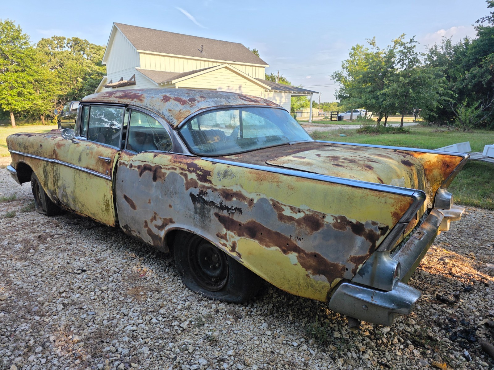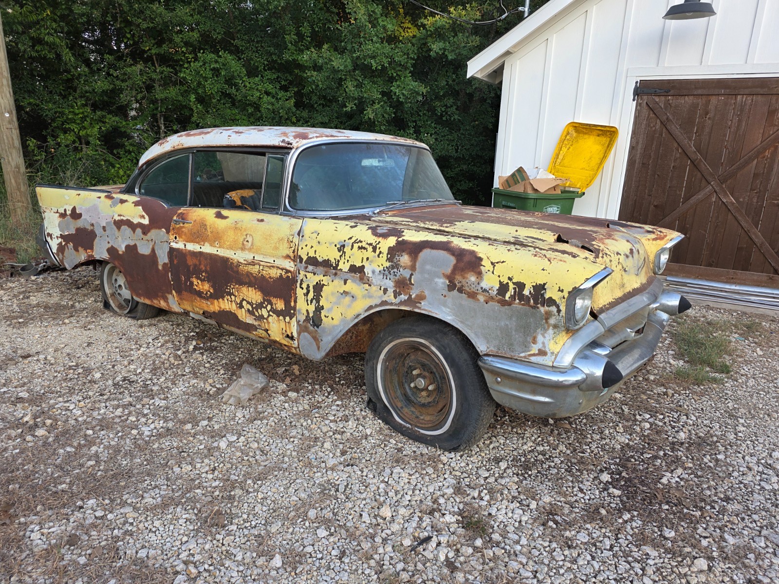 Up for sale is a rusty crusty 57 Belair that was factory built in Kansas City Missouri with a V8. Im not sure why the title is showing up on ebay as "red v8 Automatic with a sbc" Its nowhere in my title or description on the editing page.... The car has major rust in the floor pans up front. I would say rust in the rear is just average. Rust under the hood is not nearly as bad as everywhere else. Pretty solid actually. Data plate and trim plate show this to be a factory V8 car built in Kansas City Missouri . Theres old bondo work and various repairs made to the body on both sides. The car has real decent chrome, decent seats, dash, gauges and is a good blank slate for your hot rod, restomod restoration needs.The car does roll but it does not steer. NO TITLE, NO ENGINE. Sold as is where is and i have a shipper that I can recommend for shipping within and around Texas.The car is also listed or sale locally and will be sold first come first served. Ill be as fast as possible to reply to any questions or send additional pictures of anything you might need.