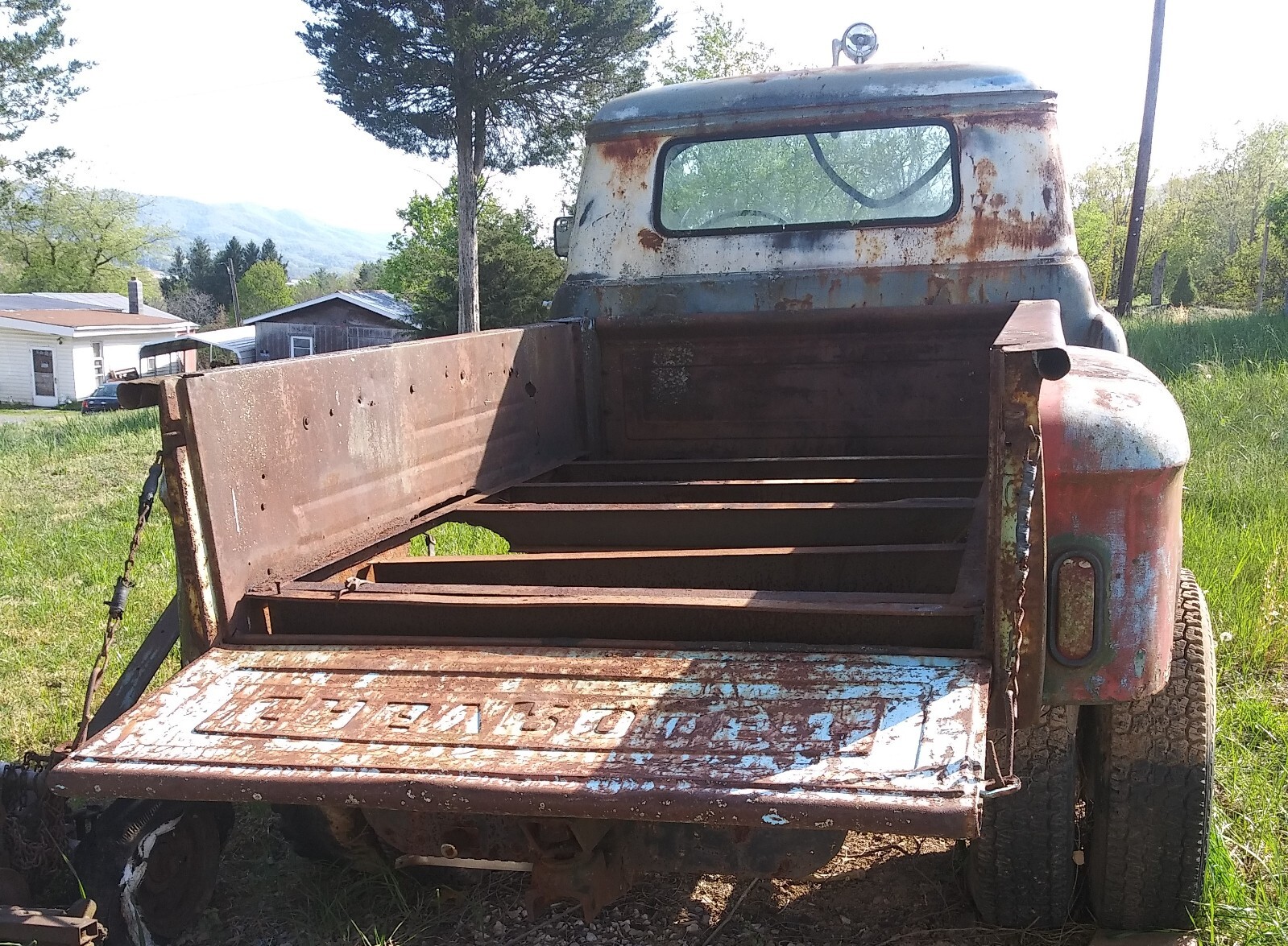 This is a 3 owner truck since it was new. It's a 1956 3600 with a 1957 hood. The truck is original except for the engine, bed, and wheels. Right now it has a 1972 Chevy Nova 250 6cyl motor which is stuck. It's a factory 265 V-8 truck and I have lots of extra parts such as straight axle, rear end, dummy rear axle for a tandem set up, 4 extra drums, extra radiator, hog head, some new brake parts, extra rear frame section to make it a 16' flatbed, the parts to put the radiator back in place for a V-8, extra front inner fenders, the headlight rings, emblems are there, extra hub to put on the extra rear end the list goes on. The back wheels are 16" bud wheels 4 which I bought new with an extra bud wheel for the spare and the front wheels are 16" one piece wheel I also bought new. The right lower door hinge is gone as it was bad so I took it off years and years ago and never got another one. The title is clear and in my name. This little truck has hauled more cars and scrap than you would even believe. I moved a 14' X 70' mobile home years ago and also a 12' X 65' mobile home. It has the hitch setup for my lowboy and will have to be changed for someone else's. The truck had 19" 3 piece wheels when I bought it and they were done away with completely, sent to scrap. The picture with the building is just one of the things that I moved with this little truck and it was moved twice by hand and alone. The bed is an original 6' step side 1956 bed but the truck takes a 7' step side bed so I extended the bed and put the extra standards on but used the truck constantly and never got around to welding and finishing it. The floor supports are I-beams out of a reefer which I bought new from thermo-king in Virginia years ago. There's a heavy steel mount in front of the bed where I was going to put a PTO winch and just never got the chance. The correct PTO is on the transmission which is the original granny 4-speed. There's a non refundable $500.00 deposit required to verify that you are going to get the truck. View the pictures and ask any questions.