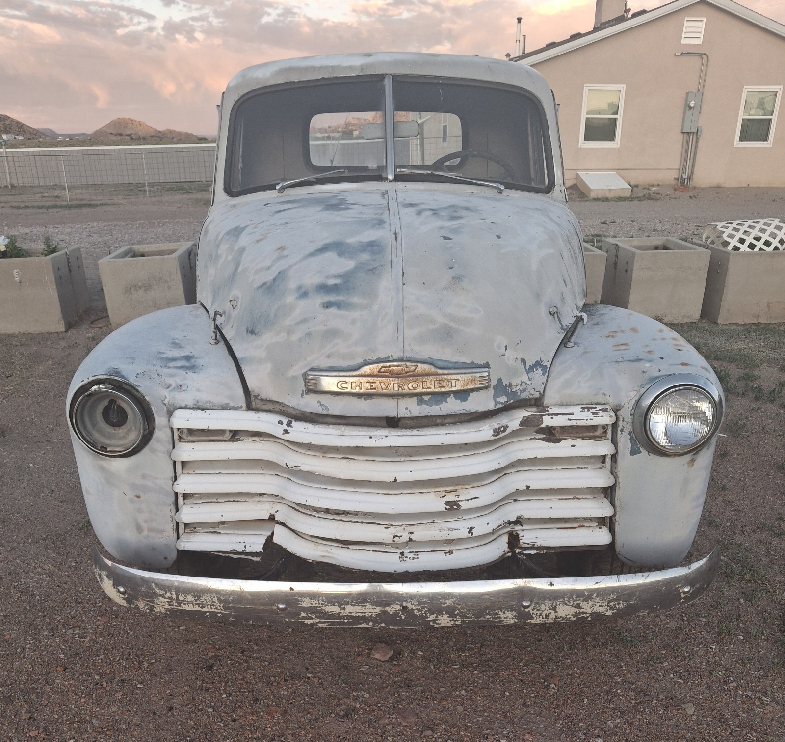 Up for sale is a 1953 Chevrolet pickup with an inline 6-cylinder engine. The motor turns over freely a great candidate for a full restoration, patina cruiser, or custom shop truck. This classic Chevy has solid bones and very little rust for its age. The New Mexico climate has kept the bottom of the doors solid, and the frame and body are in good shape overall with only minor surface rust. The original patina gives it tons of character. You’ll have 30 days to make pickup arrangements, so there’s plenty of time to plan your trip. Gas is more affordable these days — perfect excuse for a road trip! While you’re here, enjoy New Mexico’s famous green chili, visit local Native American vendors at the largest flea market in the Four Corners area, and take home mementos to remember picking up this classic pickup. Clean title in hand. Located in Gallup, New Mexico. Don’t miss this chance to own a true piece of Americana. WILL BEND OVER BACKWARDS TO MAKE THIS DEAL! |
