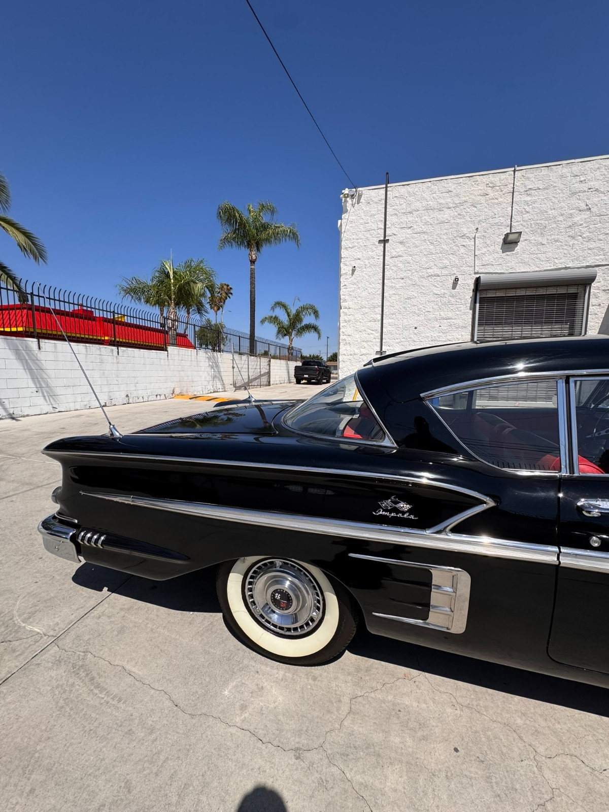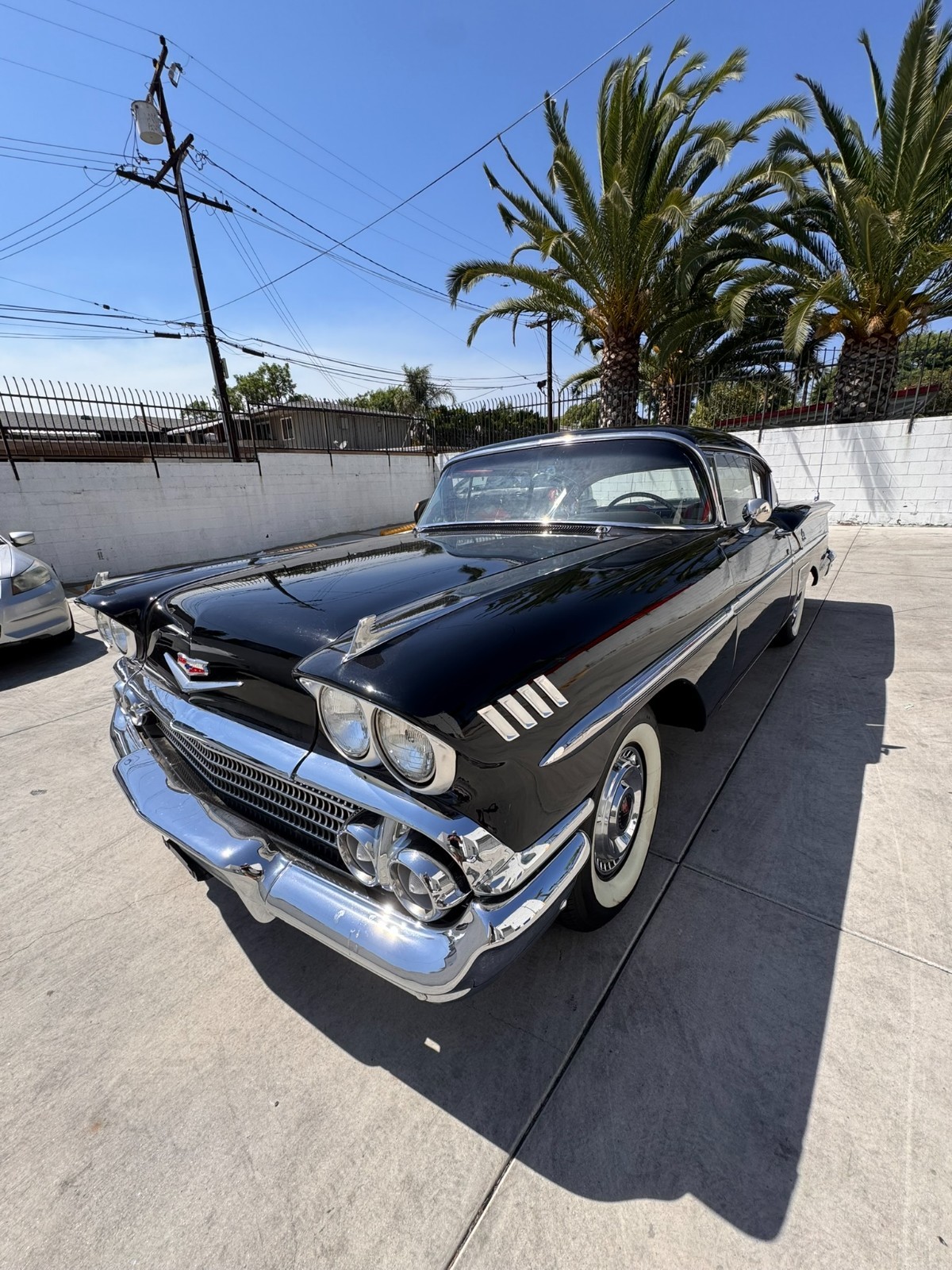 Step into mid‑century style with this beautifully maintained1958 Chevrolet Impala 2‑door sedan, powered by theoriginal V8 348 cu in engineand paired with a3‑speed manual transmission. A clean and detailed example of classic American automotive design, now with an updated interior and solid mechanical condition. Highlights & FeaturesDrivetrain:Original 348 cu in engine (V8), smooth and reliable paired with a column‑shift3‑speed manualgearbox—offers an authentic vintage driving feel. Interior:Fully redone in vibrant red and silver tones, the upholstery, panels, door trims, and carpet are all in excellent condition—strikingly fresh and period‑correct in appearance. Exterior:Stunning glossy black paint with chrome trim still popping. The includedside skirts(not currently installed) offer an opportunity to customize the look and add a sleek finishing touch. Undercarriage & Engine Bay:Clean, well‑maintained engine bay showcasing original components. The A/C system was started butcompressor’s functionality remains unverified. Audio:No radio installed—ideal for a buyer wishing to add a factory‑style OEM unit or a modern system. Condition NotesMechanically sound and roadworthy. The drivetrain feels solid and the manual transmission shifts nicely. A/C installation is incomplete; compressor condition unknown—buyer to test or finish installation as desired. Side skirts are provided (not installed) This Impala offers the perfect blend of classic style and restoration ease. With its V8 engine, manual shifts, and freshly redone interior, it makes a great base for either a driver-quality cruiser or a full restoration. The inclusion of side skirts and partial A/C assembly provides a foundation you can build on according to your vision. - ????Local Pickup Only – Pomona, CA