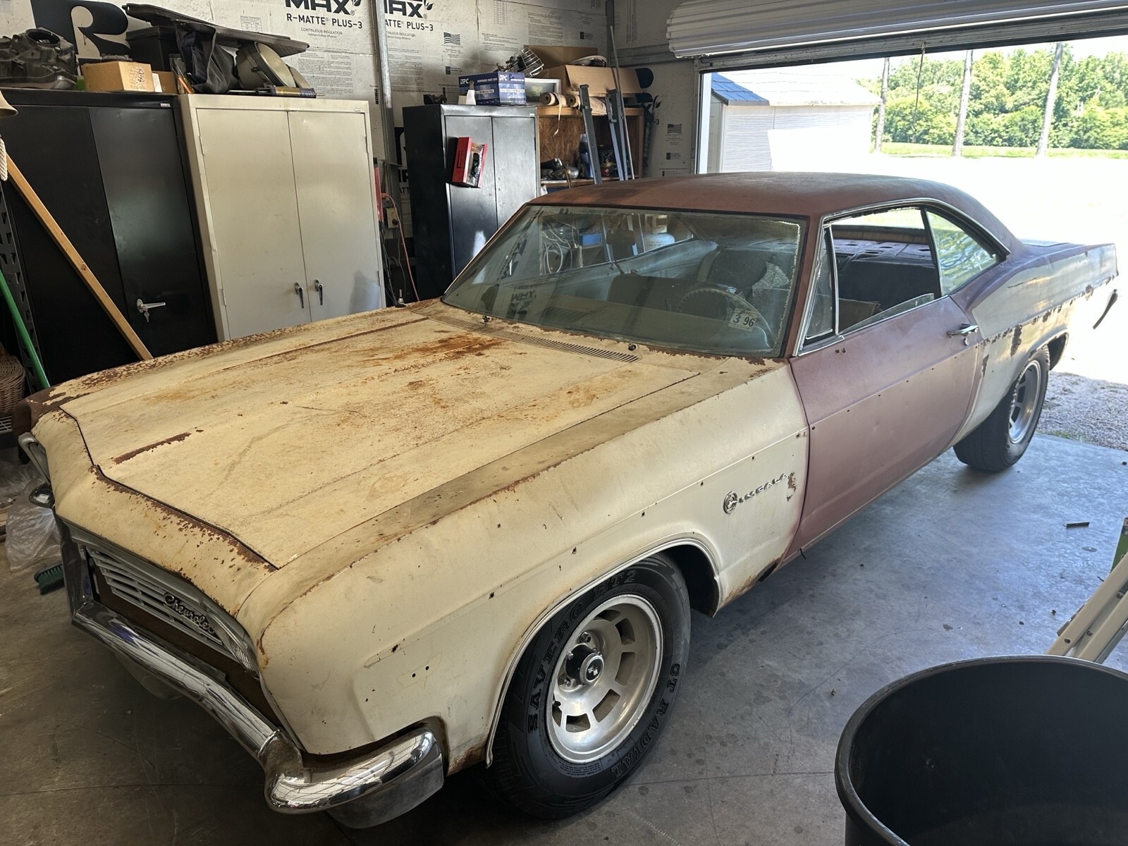 Project car needs work to finish Vehicle Details 66 Impala with SS interior package most of the chrome is present. It does need floor pans and bodywork as a 283 two barrel new fuel pump rebuilt carb. |