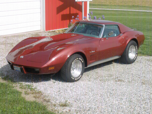 | Engine 350 Not number matching ( Rebuilt mild cam) Less than 3000 miles on rebuild Color Dark Red (Maroon) Interior Silver Deluxe Air Conditioning Power Steering Power Brakes Power Windows Power door locks Tilt- Steering Column AM-FM cassette Radio Shoulder Belts T- Top roof Car is in Very Very Good condition and drives and sounds Great ( A big head turner). The paint is Very good and the interior was upgraded to deluxe and is in excellent condition. except the dash which was not replace but is in good shape. The tires are good. On a scale of 1 to 10 it’s a 9. I can email photo's if you are interested. Car is located in New Paris. Ohio $10. 00 more pictures on request |