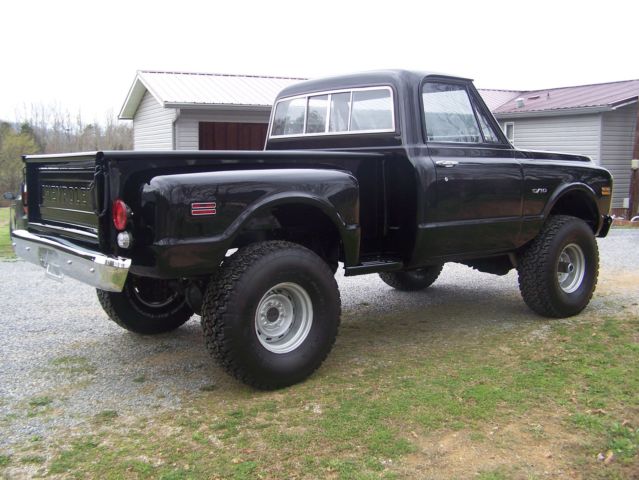| I have for sale a 1969 Chevrolet 4x4. Everything on this truck is new. It is a restoration that was started a few years ago and recently finished. The paint is nice but has been painted for a while. Still looks really nice. This truck is very straight and very solid. All trim pieces. lights. rubber is new as well as tires and suspension. It has 4 inches of lift with 35x12. 50/15 BF Goodrich all terrain tires. The engine is a 350 4 bolt main with steel crank and a towing cam. The heads are 69 model 186 castings. It has an edelbrock performer intake and carb with electric choke as well. The transmission is a 350 turbo with NP 205 transfer case. This truck has new GM tilt steering column. power steering and power disc brakes. Also has all new air conditioning. GM 12 bolt rear and dana 44 front with 3:73 gears. New red oak wood bed floor with new stainless strips. If you have any questions. you can give me a call. (423)-677-5042. My name is A. W. If I don't answer. leave me a message and I'll call you back. I accept cash only in person. Sorry. I do not use pay pal. Buyer is responsible for all shipping or pickup of vehicle. |