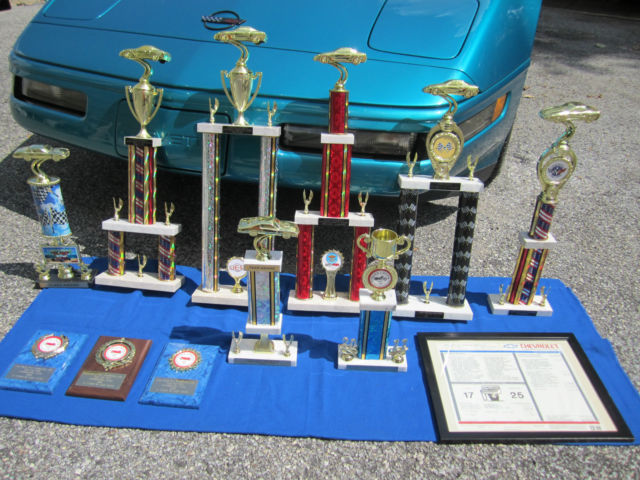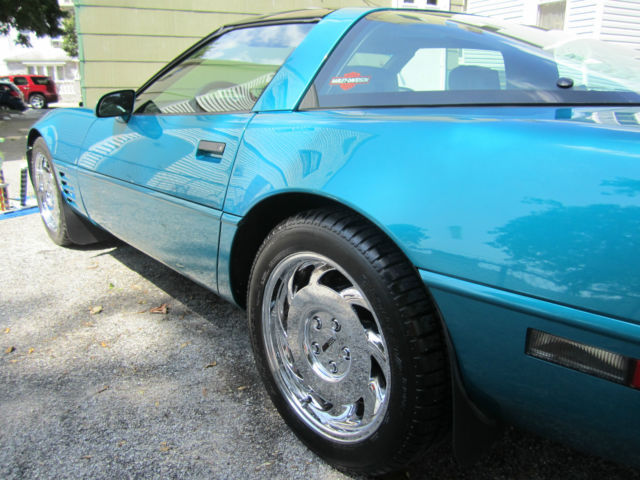 | For your consideration is my absolutely gorgeous. show quality. fun to drive. bone factory stock. meticulously maintained. 1993 Chevrolet Corvette. that will put a huge smile on your face every time you drive it. This car is one of only 1305 Corvettes finished in high gloss BRIGHT AQUA METALLIC paint in 1993. The paint is original and . as you can see in the photos. in incredible condition. as the car has been garaged and covered since it was purchased at Malcolm Conner Chevrolet in Paramus. NJ in 1993. This car is in fantastic cosmetic and mechanical condition. The sport electric leather seats have been covered since new. and show as new. with absolutely no rips or tears. or wear to the side bolsters. The rest of the interior and all dash. carpeting. and door panels. are also in near new condition. I am the second owner of this beautiful Corvette. and purchased it from a personal friend. and experienced auto mechanic. about 8 years ago. The odometer now reads under 55. 00 miles. and the car is powered by Chevrolet's 5. 7L. 350ci. LT1. 300HP. power plant. one of the most durable and time tested engines to ever be produced by General Motors. The motor has seen only Mobil 1 Synthetic oil since new. and all oil changes and routine maintenance have always been religiously performed. Mechanically. the car is 100%. and runs strong and powerful. and the six speed manual transmission shifts perfectly. Finding a C4 corvette. with a SIX SPEED MANUAL transmission. in this type of condition. is getting near impossible. There are absolutely no excuses for this vehicles mechanical condition. Cosmetically. the car speaks for itself. and has won numerous local car show trophies. as well as trophies from prestigious. Corvette only. car shows sponsored and judged by the National Corvette Restorers Society (NCRS). The car always scores in the high 90's point range. being judged on it's originality in the factory stock category. Of course. all trophies also go with the car to the proud new owner. As you can see in the photo. the tinted acrylic top is in like new condition with absolutely no "spider web" lines. a very common problem with these tops. Also both flip-up headlights work quickly and in perfect unison. another common problem with the C4's. The high mirror finish chrome wheels are gorgeous. and really complement the bright aqua metallic paint. However. if you prefer the original brushed aluminum stock wheels. I still have them and will include them in the sale of the car. I have also always kept rubber mats over the factory carpeted mats. so the originals are still in great condition. I also have the original 2 volume GM Service Manuals. FYI - The sticker price on this car was just under $39. 00. and that was over 22 years ago!!! I would urge anyone to come and inspect this vehicle in person. YOU WILL NOT BE DISAPPOINTED!!! PLEASE FEEL FREE TO CALL TOM @ 917-9two3-938one WITH ANY QUESTIONS. OR TO SET UP AN APPOINTMENT TO INSPECT THIS BEAUTIFUL VEHICLE IN PERSON. |