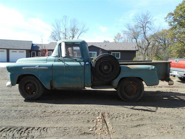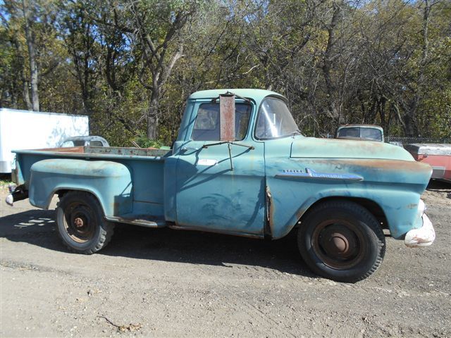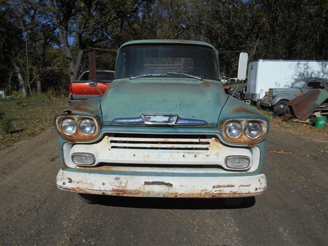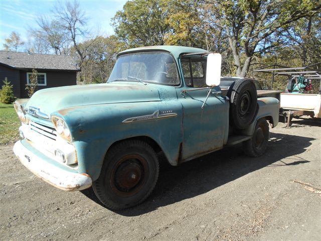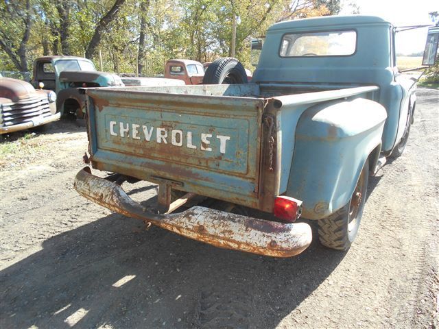 | THIS IS A 1958 CHEVY PICKUP JUST IN FROM AN ESTATE;HASN'T BEEN ON THE ROAD FOR A FEW YEARS;WE HAVE IT RUNNING GOOD OUT OF IT'S OWN GAS TANK;IT ALSO DRIVES AND STOPS;IT DOES HAVE RUST. BUT VERY FIXABLE. FOR SOMEONE WITH WELDING SKILLS;THIS PICKUP NEEDS RESTORATION. SELLING AS IS . NO WARENTY. TAKE A LOOK AT THE PIX. JEFF 218-464-2821 |