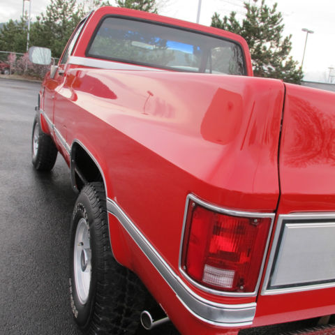 | Beautiful Rare single rear wheel 1986 Chevrolet Silverado Factory 1 Ton 4x4!Body/DrivetrainComplete Professional Body & Paint Restoration on 100% Rust Free TruckDupont Basecoat/Clearcoat Victory RedNew trim moldingsNew wheel opening moldingsFront & Rear Bumper in great shape (small section of minor pitting in chrome on left side of rear bumper)New Scorpion Spray On Bedliner16" Alloy Wheels/Cooper Discoverer S/T Tires (good tread)Cab lightsFresh 402 Big Block w/SUM-K03052 CamshaftRebuilt Quadrajet CarburetorNew AlternatorNew Water PumpNew Power Steering PumpReconditioned High Capacity RadiatorNew 3" Dual Exhaust with glass packs & chrome tips (sounds great)Turbo 400 Trans w/New Torque Converter (shifts great)NP205 Heavy Duty Transfer CaseBrakes in good condition (stops as it should)Extra new rear brake drums and brake assemblies included in auctionInteriorCarpet in great condition with no tearsDash has no cracksCloth seat has no tearsPerfect HeadlinerDoor panels in excellent condition (no cracks or tears)New door window regulators and motors (go up and down great)Factory A/C (needs recharging)All gauges and lights work including flashers and license plate lightsJenson AM/FM CD Player (needs to be wired in)Copy and Paste this link below into your browser for more pics and a VIDEO!http://s1251. photobucket. com/user/Ronster34/library/1986%20Chevrolet%20Silverado%20K30%201%20Ton%204x4?sort=3&page=1This is a beautiful truck that runs and drives great and really turns heads. Very smooth ride and quiet inside. These factory single rear wheel 1 tons are hard to find and this is one of the nicest you'll see. Serious bidders only please and bid with confidence. Thank you for looking! |