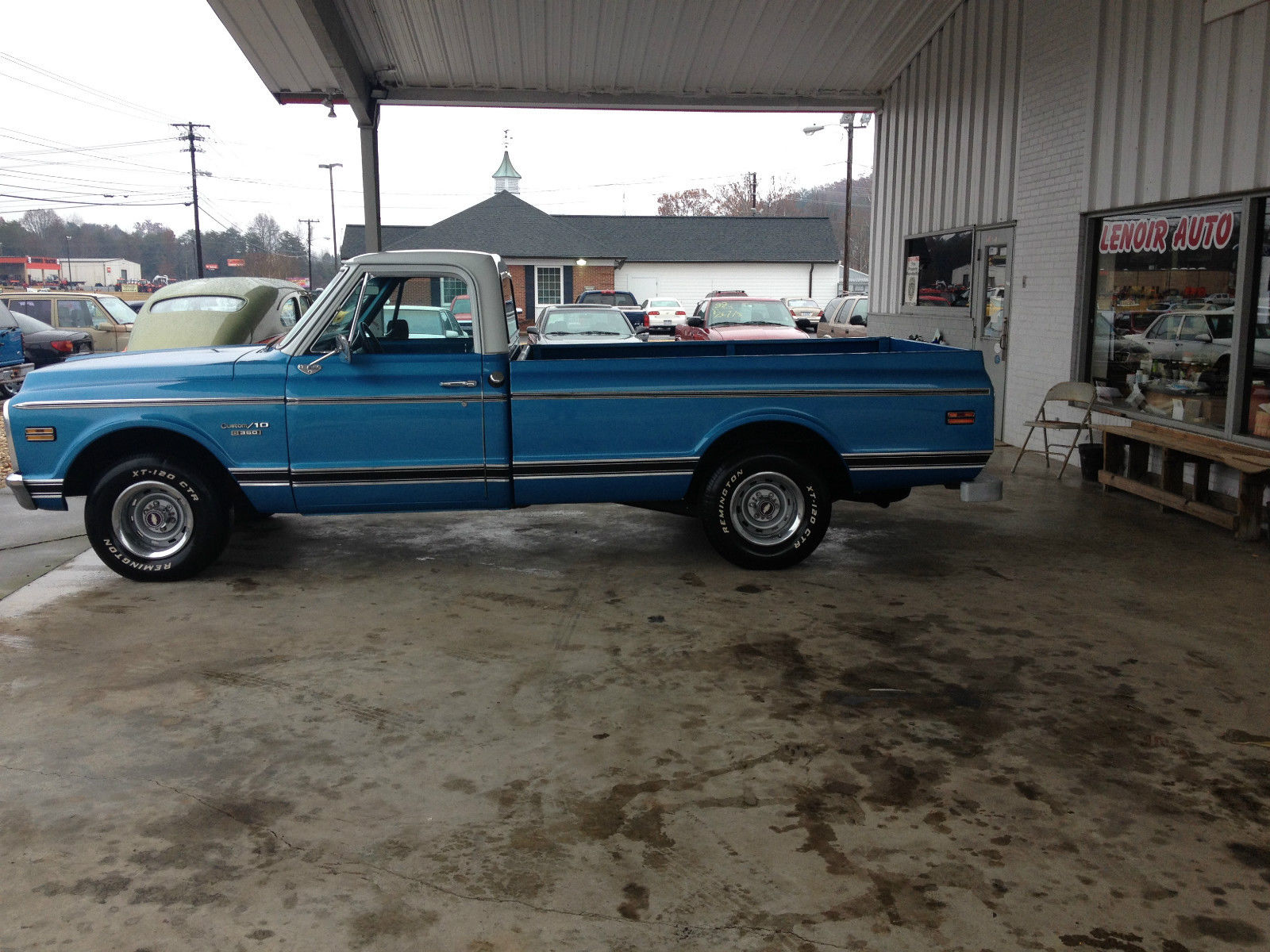 | WOW what a find. 1970 Chevrolet Custom 10. A nice long bed truck. It has a 350 V8 engine rebuilt 10. 00 miles ago and turbo hydromatic transmission rebuilt 4. 00 miles ago. Truck has Air Conditioning. AM FM radio. Power steering. Power brakes. Gauges. Tinted glass. Clean original interior. Rallys. Good Tires and slick two tone paint. this is a nice old truck that hasn't just been patched up. Same owner past 12 years. but he isn't able to drive any more and wants to sell it. mileage on odometer reads 11899 I'm going to say its over because I don't know the trucks entire history. This truck runs and drives smooth and would make it any where; bid with confidence. any questions call 828-754-1009 9:30 AM- 6:00 PM est. ask for Larry |
