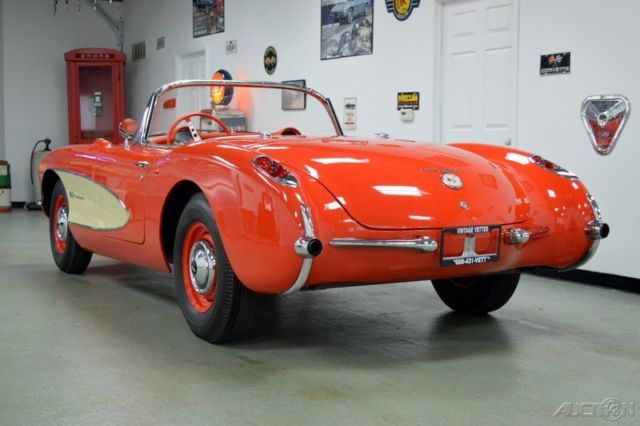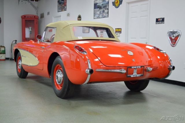 | Sales (816) 221-8388 319 East 10th Avenue Kansas City Missouri 64116 • Vehicle Information VIN: E57S104596 Stock: 2132KC Mileage: Color: Venetian Red Trans: 4 speed Engine: 283/283. 283 HP MPG: Drivetrain: 1957 Chevrolet Corvette Description 1957 Fuel Injection Corvette became America's Sports Car Venetian Red/red interior (shoreline beige coves) --- appears Orange to the common eye 283/283 HP #'s matching 548 block 4 speed Trans. (late production) Radio Delete Park Brake Alarm Beige soft top Black Wall bias Ply tires on Dog Dish caps This was the break thru year for Chevrolet in the Corvette line. Single headlight styling. Cove side design. Fuel Injection. 4 speed manual transmission. Appears to be an older Body OFF restoration. Beautiful example. Once had a Hard top! detailed engine compartment with correct Factory detail-- 7014800 FI unit. Very respectable fits and gaps. Jack/spare/board/mat. SOLID #2 condition. Vintage Vettes LLC WE ARE VINTAGE VETTES LLCWe DO accept Trades. Please No Rat Rods. Hot Rod Trucks. Bikes or Projects! Contact us before the End of the Auction with Pictures and Realistic trade value. From True Survivors to the Finest of Resto-mods. we have been serving the Corvette World for over 25 years in sales. judging and appraisals. Check out more about us at the bottom of listing. Please feel Free to Contact for the More information and/or inquiries (Before the end of the Auction preferably) Call us!!! 816-221-VETT(8388)or toll free1-888-431-VETT(8388) Vintage Vettes. LLC. 319 E. 10th Ave. Kansas City. MO 64116Check us out at vintagevettesllc. com CALL US AND LET'S MAKE A DEAL!!! About Us Here at Vintage Vettes LLC we have 20+ years of buying and selling Corvettes and other unique and classic cars. Our staff is always available to advise you with the RIGHT Corvette for your driving pleasure. be it for Show. Judging. or a weekend driver. "WE HAVE IT!". We can service what we sell or we can perform restoration on your Corvette. Bring us your tired Classic and watch for outstanding finished results. From a light engine detail to a Body Off Restoration. we can do it all for you. WE HAVE MOVED to a new location with a 17. 00 sq. ft. indoor showroom with accompanied 8. 00 ft service center and parts department. We have an inventory of 30 to 40 Corvettes plus other cars. Enjoy learning all the evolutions this "American Sports Car" has endured. All Corvettes are on display "indoors" in the safety and security of our full time staff and sophisticated alarm system. Financing for your new Corvette is available at our competitive rates. •Credit Application •Directions to Dealer •Contact Us Options and Standard Features Basic Information VIN Number: E57S104596 Stock Number: 2132KC Model Year: 1957 Make: Chevrolet Model: Corvette Body Type: Convertible Exterior Color: Venetian Red Interior Color: Red Engine Engine Description: 283/283. 283 HP DriveTrain Transmission: 4 Speed • Apply Now Secure Credit Application Applying for a vehicle loan online is one of the quickest and easiest application methods. Our secure application is easy to complete. all you need are a few personal and employment details. Contact Vintage Vettes LLC 319 East 10th Avenue Kansas City Missouri 64116 View Map Ask for:Sales Main:(816) 221-8388 Toll Free:(888) 431-VETT(8388) Contact: •Contact Us Terms Placing a Bid: Your bid constitutes a legally binding contract to purchase this vehicle. Please do not bid if you're not seriously interested or financially able to purchase this vehicle. Please read eBay's User AgreementVintage Vettes LLC reserves the right to. Obtain and verify the registered information of all users who bid on this auction. Cancel any and all bids at our discretion. or end the auction early if necessary. Bidders Age: You must be 18 years of age or older to Bid. Special eBay Bid Retraction Rules: Please read eBay's "Retracting a Bid" If you place a bid before the last 12-hour period of the auction: You may retract that bid before that last 12-hour period but only for exceptional circumstances. You will not be allowed to retract that bid during the last 12-hour period of the auction. If you place a bid during the last 12-hour period of the auction: You will be allowed to retract the bid for exceptional circumstances but only if you do so within one hour after placing the bid. Funds & Financing: For help in arranging for a Pre-Approved loan or for any questions please e-mail or phone at(816) 221-8388 prior to bidding. Buyers Inspection: Vintage Vettes LLC has done our best to disclose all information known about this vehicle for auction. Vintage Vettes LLC welcomes a buyers inspection. If you plan to have a buyers inspection. please make sure you inspect the vehicle prior to the auction ending. Inspection fees if any are Buyers responsibility. Representations and Warranties made by seller: This vehicle is being sold "as is". Manufacturer's warranties may still apply. Extended warranty may be available. e-mail or phone at (816) 221-8388 for details. No representations or warranties are made by seller. nor are any representations or warranties relied upon by bidders in making bids. Taxes and Registration fees: Out of state buyers are responsible for all state. county. city taxes and fees. as well as title service fees in the state that the vehicle will be registered. All taxes and fees must be paid in full in order for vehicle to be titled and registered. Title Information: Vehicles titles may be held by banks or lenders as collateral for loans. In many cases there is a delay in receiving the original instruments up to 21 days from the time we pay a vehicle off. While we usually have all titles in our possession at closing. there are occasions where we may be waiting for them to arrive. If payment is made by cashier's or personal checks we will hold all titles for 10 days or until funds have cleared. Shipping & Delivery: All shipping charges are buyer's responsibility. Vintage Vettes L