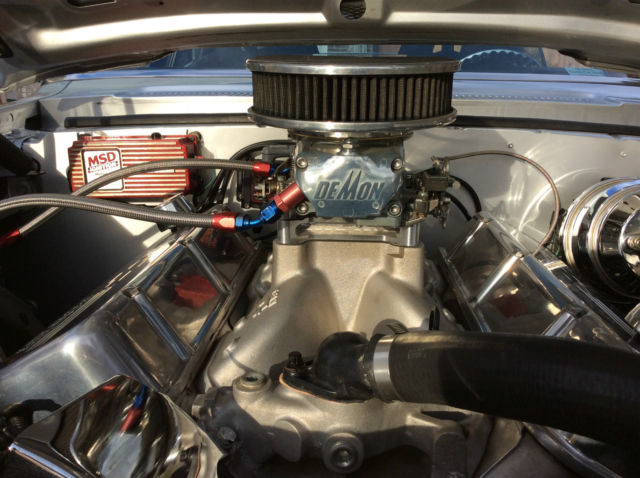| This Car was Built to run on the Strip. but it never has. only driven locally and parked at many Car Shows. 502 ci Crate blockCanfield Aluminum HeadsRoller Cam. not sure of lift & dur. but hits heck of a lick. Weiand Team G Intake. w/ Demon 750Be Cool Radiator. Mechanical fanHigh Amp Alt. Elect Fuel PumpMSD 6AL Box. Blaster Coil. MSD distPower Brakes Front / Rear4 Link Suspension. 9 inch Narrowed Ford. 4:11 gearsPro Scat Seats. Full Roll CageThunder Road Cluster. with Autometer GaugesMuncie 4 speed. Heavy duty clutchMickey Thompson Sportsman 29 x18. 50 x15 on rear. Super Nice Ride. and Head Turner. No Trades or Low Balling |
