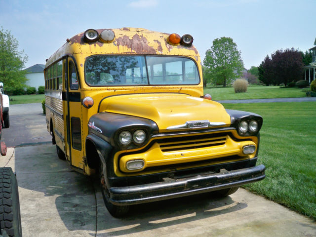 1958 Chevrolet Short Bus. Common Model 40. Runs great and is equipped with a 235 ci V6 engine matted to a 4 speed manual transmission. Bus is solid with a clear title. There is surface rust on the body but no rust through. Frame is solid. This bus is in the best condition of any that I have seen listed. I had planned to restore this as a school bus. The interior has not been tampered with, although the seats have been removed at some point in it's life and are unavailable. I have two era style seats that I have included with the bus that I purchased separately that will be included. I also have a new replacement bumper that will be included in the auction. Brakes need repairing and the gas tank needs flushing. Sold as !!!! I would like a $ 500 deposit via PayPal within 24 hours of the auction ending. The balance will need to be paid in cash upon pickup within 7 days. Can store up to 30 days for free. Selling to reduce the size of my collection. I am also listing two other vehicles in separate auctions. Please check both of those out as well. If you have any questions, please call or text Robert at 302-423-7906. |