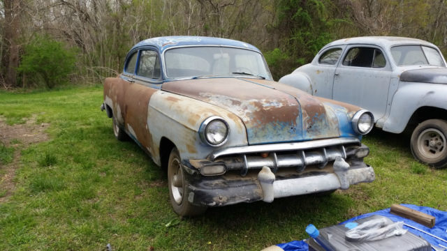 This 1954 Chevy is the perfect starter project for father and son or daughter!!! The body work has been started on it and was taken down to bare metal by previous owner.This Chevy is already setup and ready to be a easy street rod project as it comes with a set of Speedway SBC (283/327/350/383/400) engine mounts and a tubular TH350 transmission crossmember already installed. Has a Walden Fabrication 4" rear lowering kit installed with 2" Drop leaf springs. (rear is secured on perches and U bolts, Pinion angle still needs to be set.A 10 Bolt 8.5" rear spins the rear tires and is suppose to be newly rebuilt and 3.55sI have everything for the car. All origional Stainless, Garnish mouldings, Stock gauges and trim come with vehicle. It also comes with BRAND NEW IN BOX stainless trim, nbsp;NEW RE-CHROMED FRONT GRILLENEW IN BOX RE-CHROMED FRONT AND REAR BUMPERSNEW IN BOX HALOGEN REPLACEMENT HEADLIGHTSNEW IN BOX CHROME HOT ROD STYLE TRI-BAR HEADLIGHTS WITH HALOGEN BULBSNEW IN BOX RECHROMED BLUE DOT CUSTOM 1954 TAIL LIGHTSNEW IN BOX STAINLESS BELT MOULDINGS NEW IN BOX DOLPHIN / SHARK DIGITAL GPS SPEEDOMETER AND GAUGE CLUSTER ASSEMBLYNEW IN BOX GAS TANK, FILLER NECK, AND CAPNEW SENDING UNIT, GAS TANK STRAPSNEW BE-COOL DOUBLE ROW ALUMINUM RACING RADIATOR FOR 1953/1954 CHEVYBE COOL RADIATOR FEATURES BUILT IN TRANSMISSION COOLERNEW CCP POWER DISC BRAKE PEDAL SETUP WITH PROPORTIONING VALVENEW IN BOX RE CHROMED DOOR HANDLES*VEHICLE FEATURES AN IMMACULATE HEADLINER, ALL BOWS INTACT. REAR UPHULSTRY IN EXECELENT SHAPE ALONG WITH REAR BENCH SEAT.SOLID HOODSOLID TRUNK LIDSOLID TRUNK FLOORSOLID REAR FLOORSOLID PASSENGER SIDE FLOORHeel / Floor mounted master cylinder cover area requires a 5x7" patch or replace with new Drivers Side floor board, which can be purchased here on Ebay.CAR NEEDS OUTER ROCKERS AS IMPROPERLY PATCHECHED BUT DECENT RAT ROD DRIVER QUAILTYINNER ROCKER ON PASSENGER SIDE ALL GLASS IS IN DECENT SHAPEALL WINDOW REGULATORS FUNCTIONNO DOOR SAGTHIS IS AN EASY PROJECT FOR A BEGINNER TO A EXPERT CAR ENTHIUAST......Vehicle simply requires a little time and your choice of power train, and a 12 Circuit EZ-WIRE harness and you'll be heading to the car shows in no time!!!!OVER $2, 00 in NEW parts alone!!!Feel Free to Contact me with any questions!!!**NOT GM Rally Wheels on front of car in pictures do not come with vehicle but can be purchased seperately** Chevy will come with 4 Stock 1954 Chevrolet Wheels and trim rings and Hub Caps.