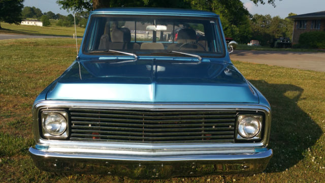 1971 gmc titled c10 this is a gmc truck, has no badging previous owner for over 10 year. was weekend driver to shows ect Every thing on this truck works, Factory tack, all the gauges, all the lights. igh beam indicator, fuel gauge oil pressure water, all work and light up just like a new one did, wipers work, horn works on the steering wheel, most of these older trucks half work :IF THAT" power sterring disk brakes, no shakes or shimmy or rattles, it's like driving a new 1971 except with better handling, it has been lowered and has all new suspension parts, including positive traction 340 gear, muncie 4 speed clutch is smooth, just cant say too much about the condition and modern drive of this truck, new flow master exhaust, list goes on and on, previous owner restored it and loved it for around 10 years, the paint is great for 10 years but it's not perfec. t does have couple small imperfections, the worst one is pointed out, comes with tahoe or factory sea. I would consider removing the 4 speed and replace with automaticat no additional cost if wanted and i also have a set of factory rally wheels that i would swap for the mags if you rather have the factory look, these wheels have been on for around 4000 miles these changes are after purchase and payment complete, nbsp;